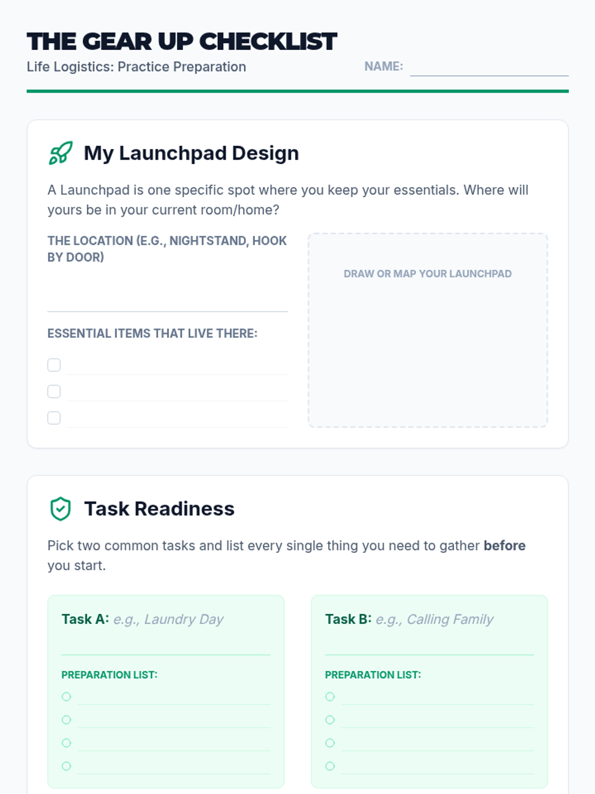 A practical session on the physical and mental gathering of resources needed to successfully execute a plan without last-minute stress.