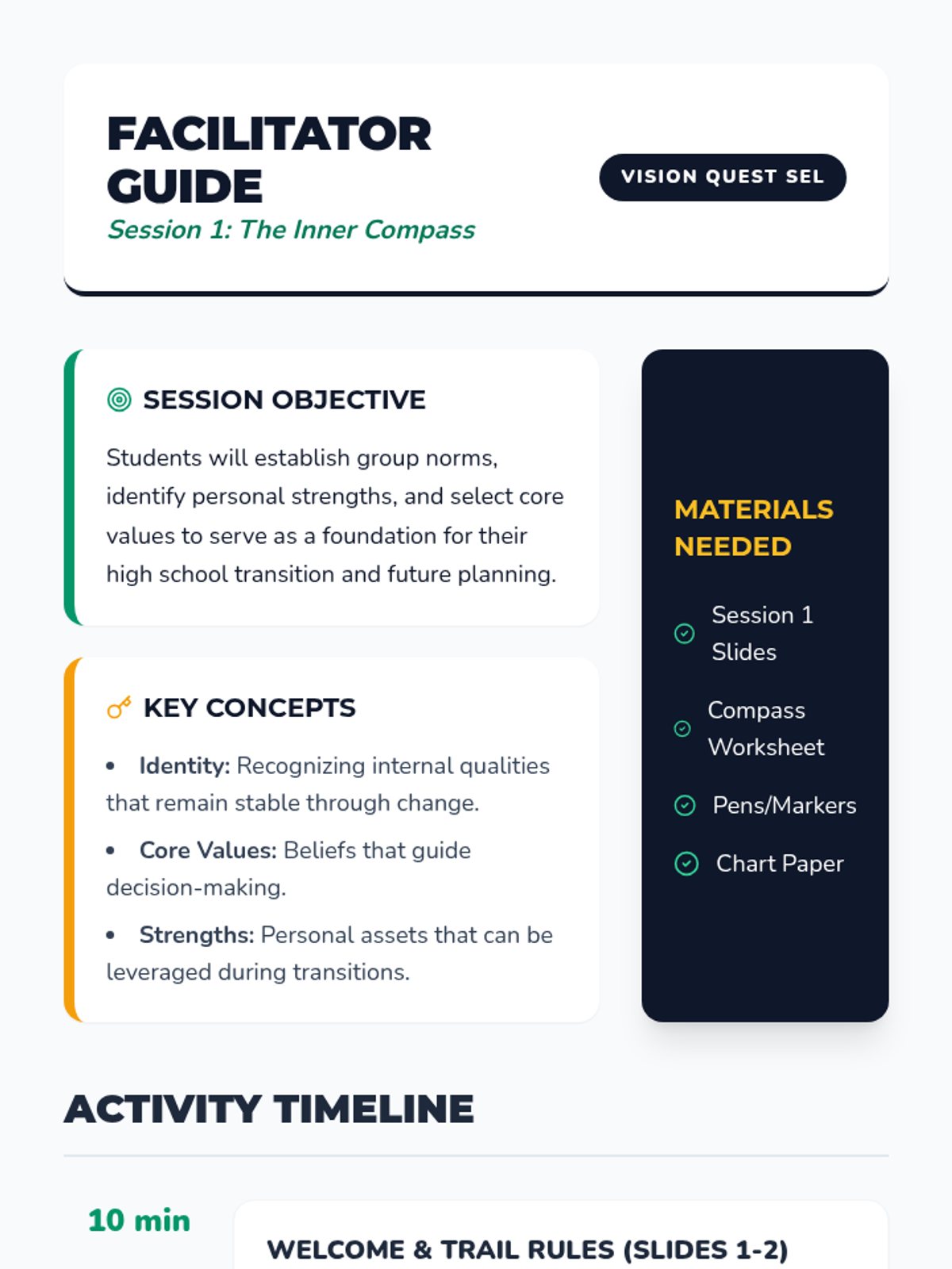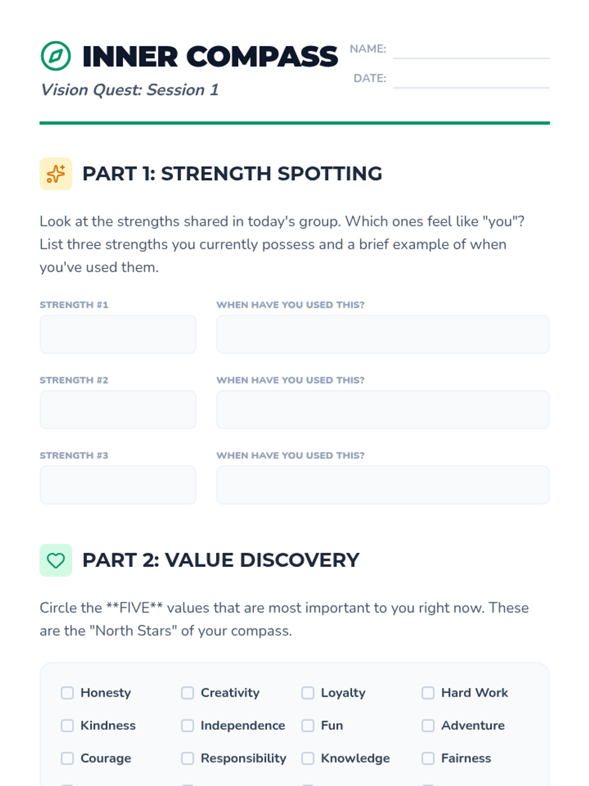 Students explore their personal strengths and core values to build a foundation for future decision-making.