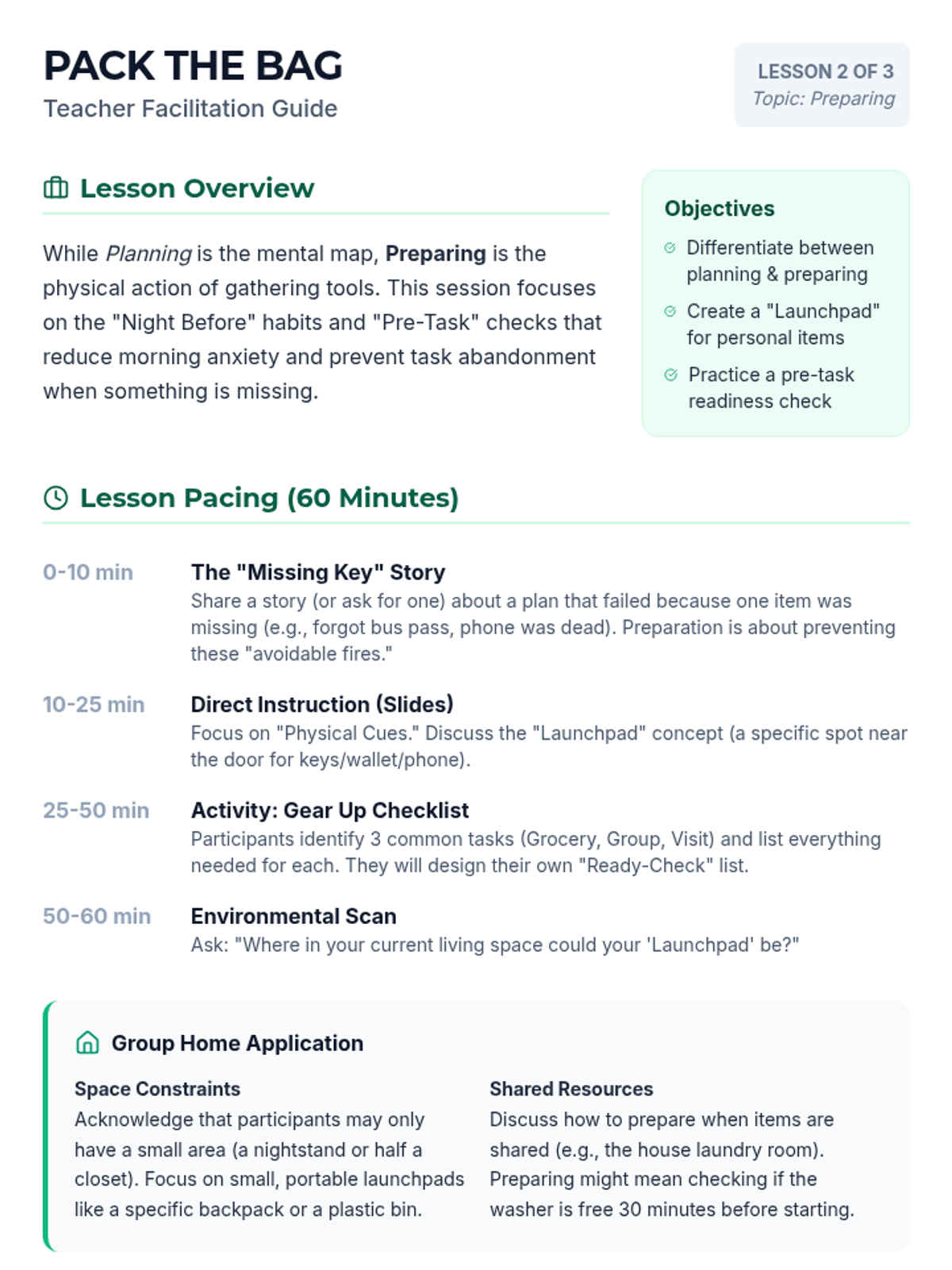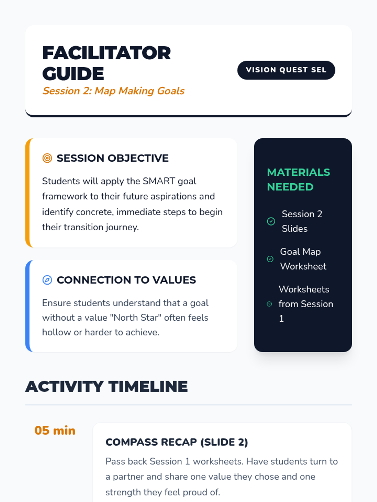 An introductory session focused on the 'Big Picture' - teaching participants how to look ahead, set small goals, and create a visual map for their day.