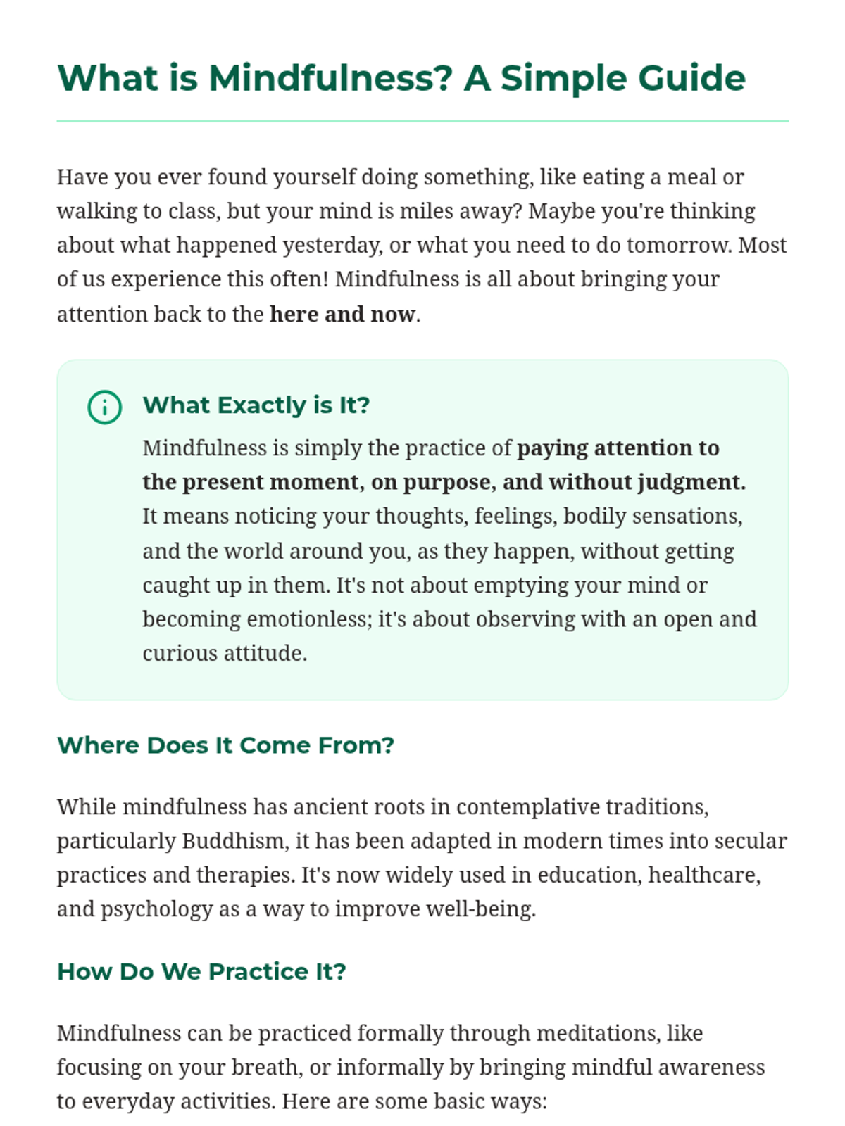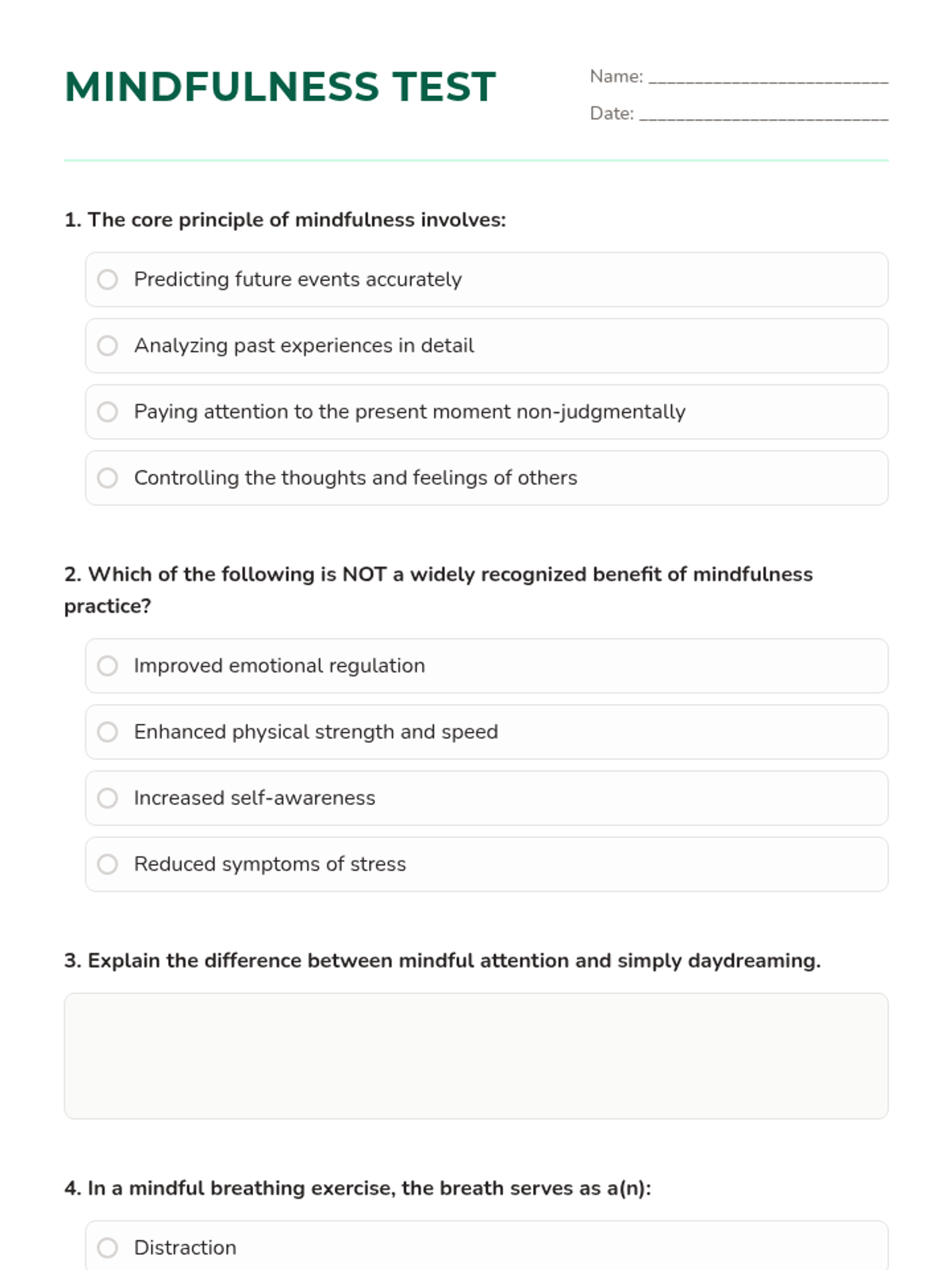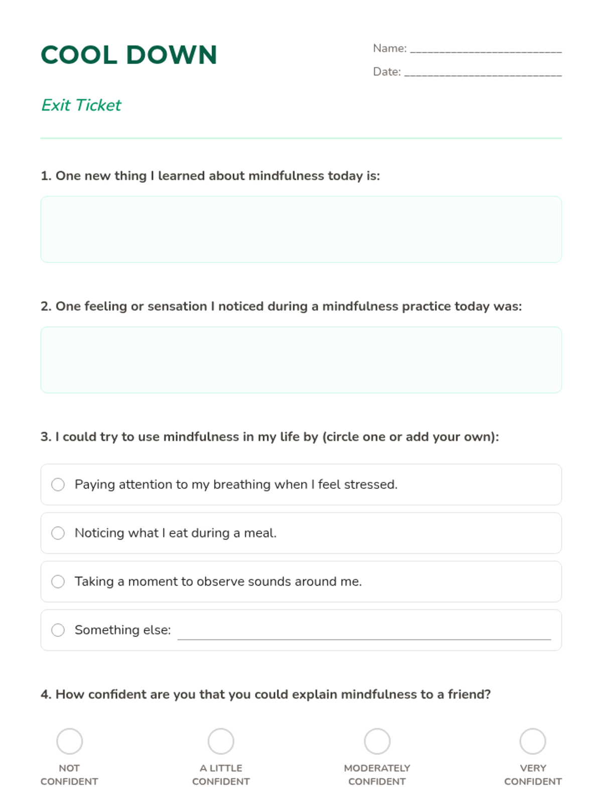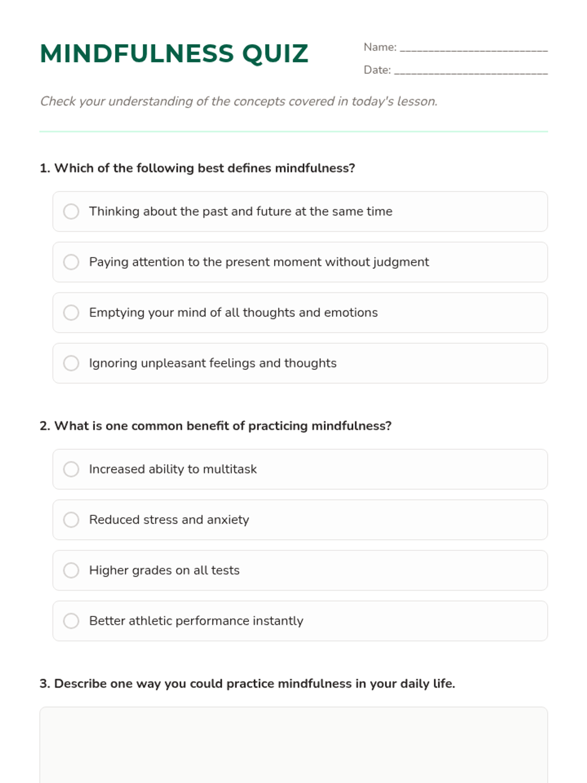 A comprehensive 60-minute lesson introducing secondary students to mindfulness through sensory awareness, guided breathing, and reflective practice to improve emotional regulation and reduce stress.