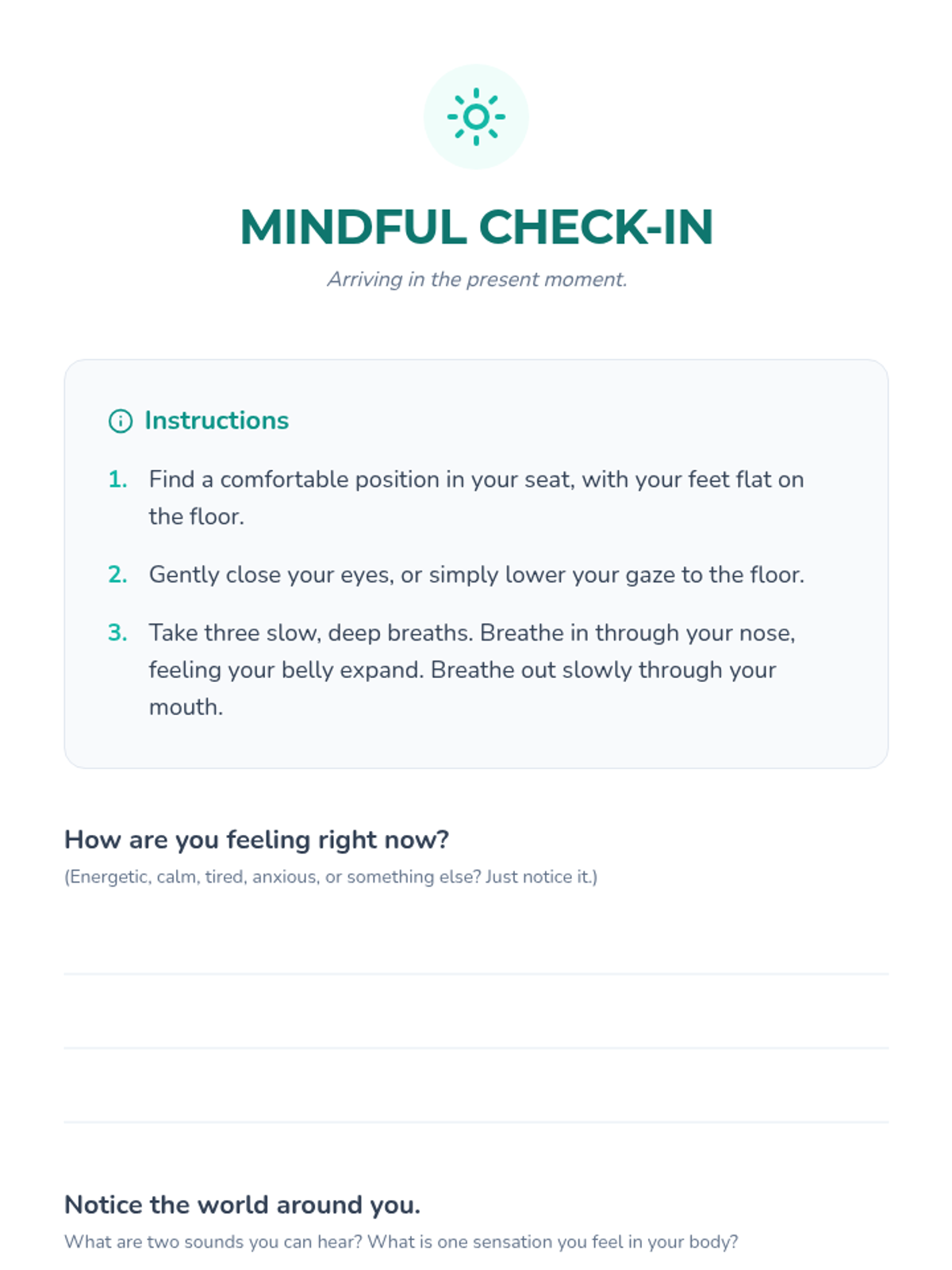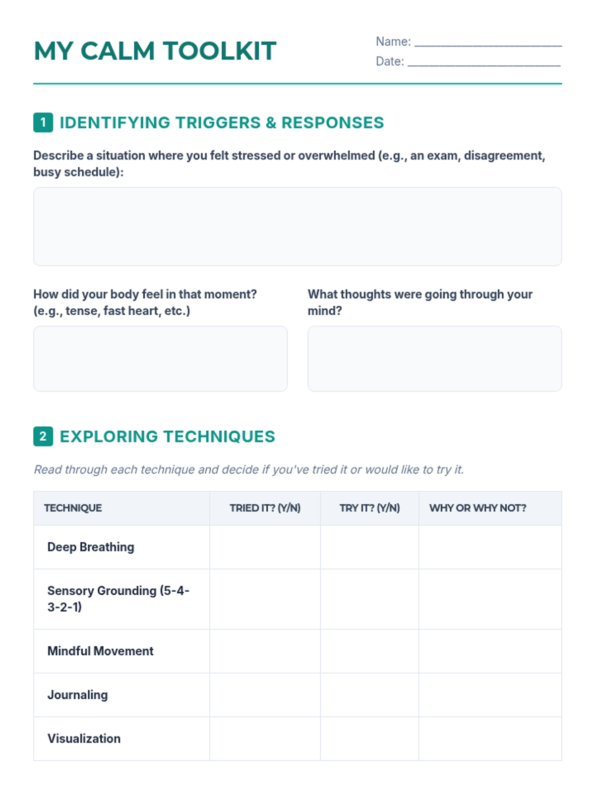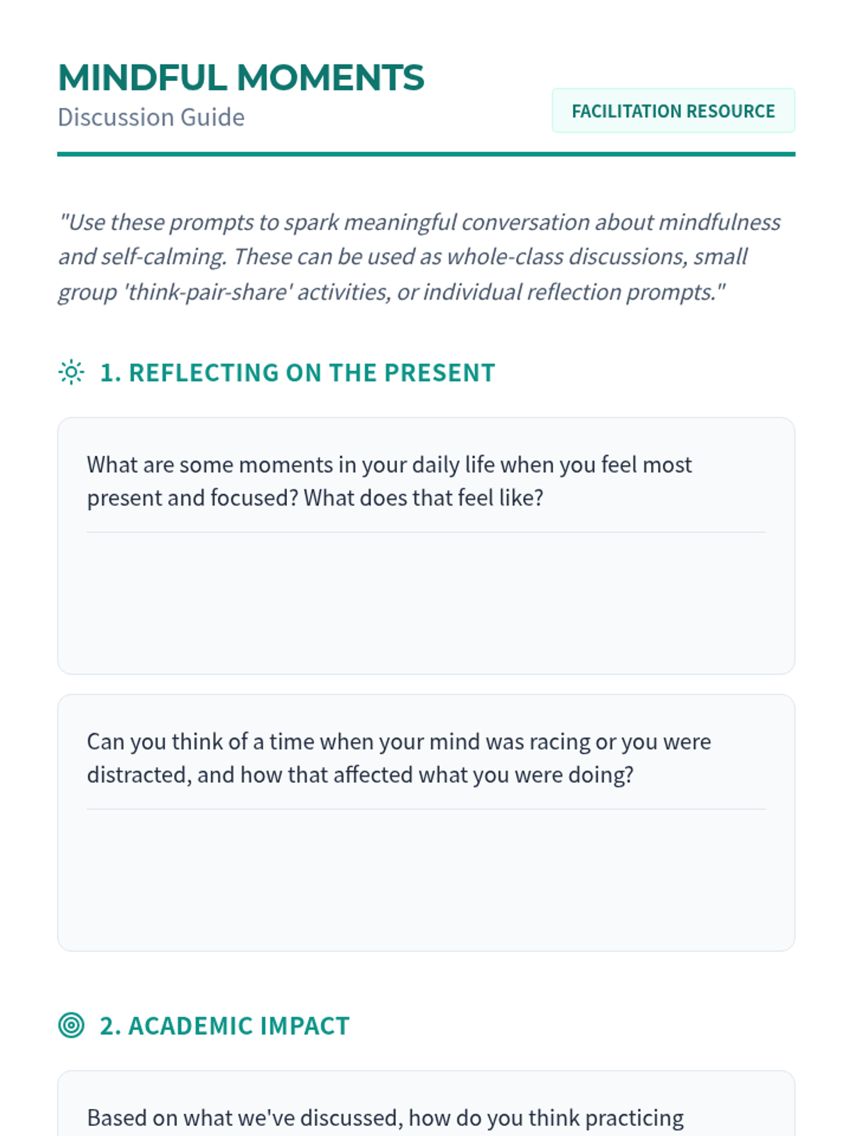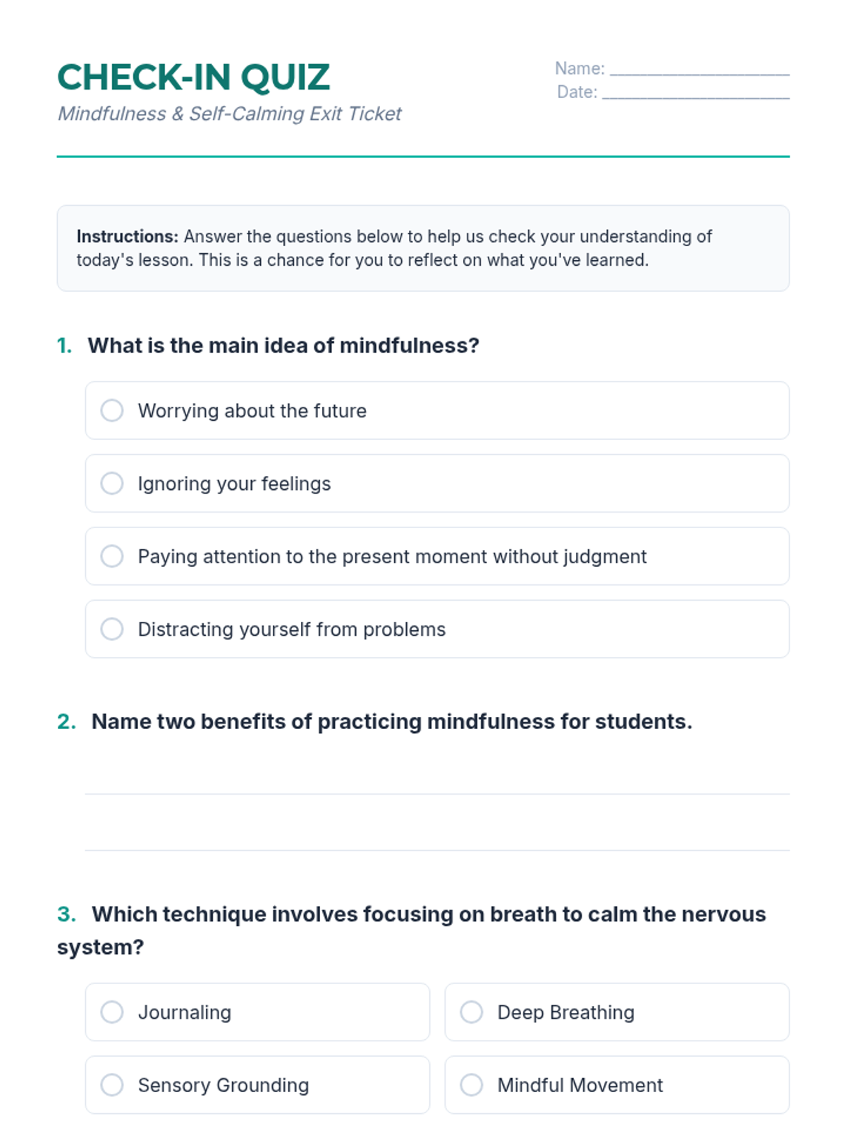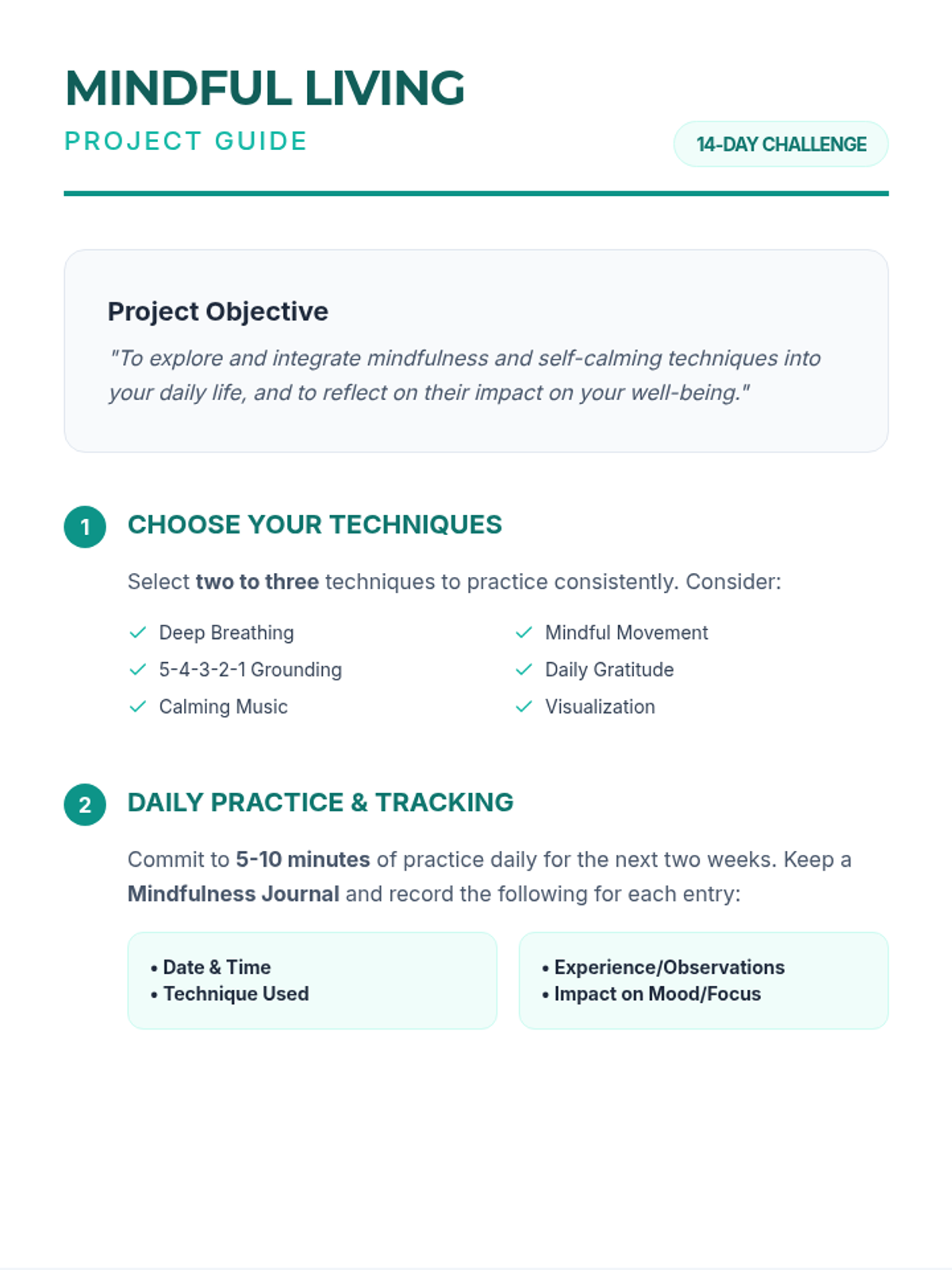 A comprehensive one-hour lesson for IGCSE students focused on mindfulness and self-calming techniques to manage academic and personal stress. Students will explore practical tools like deep breathing and sensory grounding to enhance emotional well-being and focus.