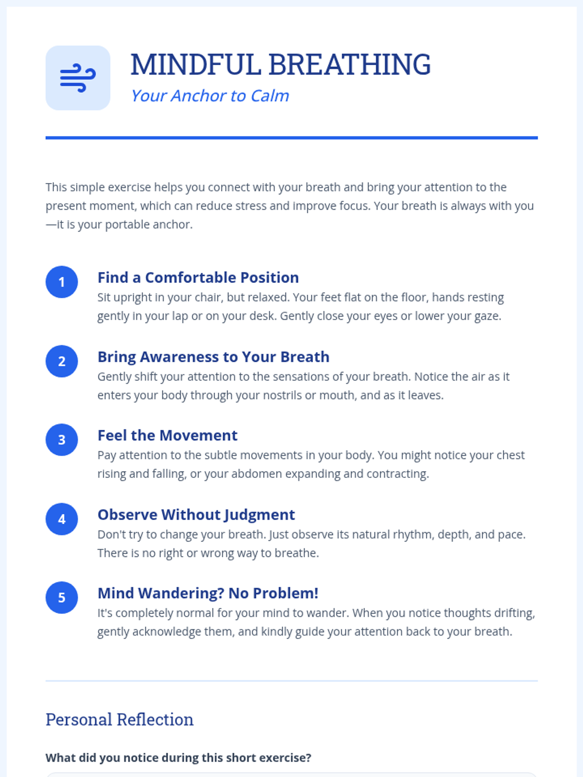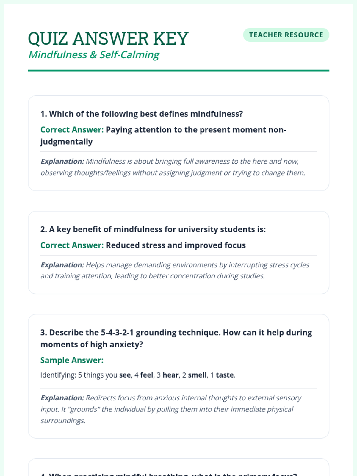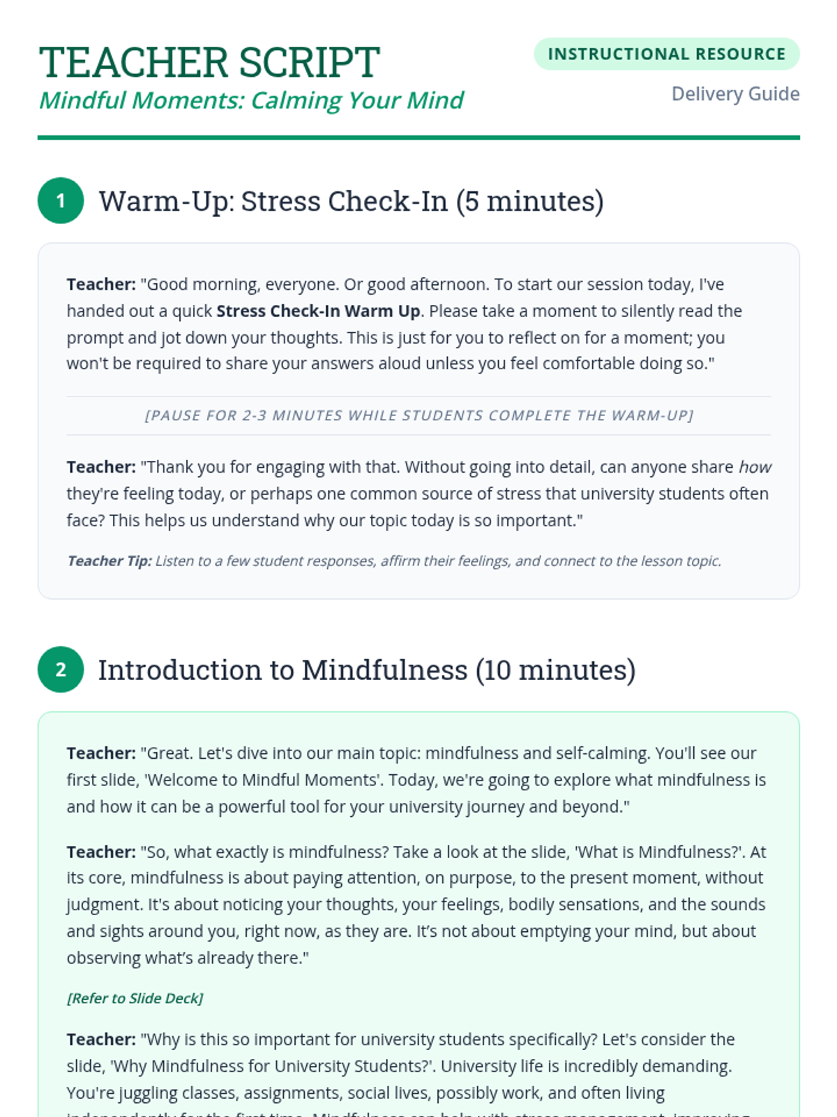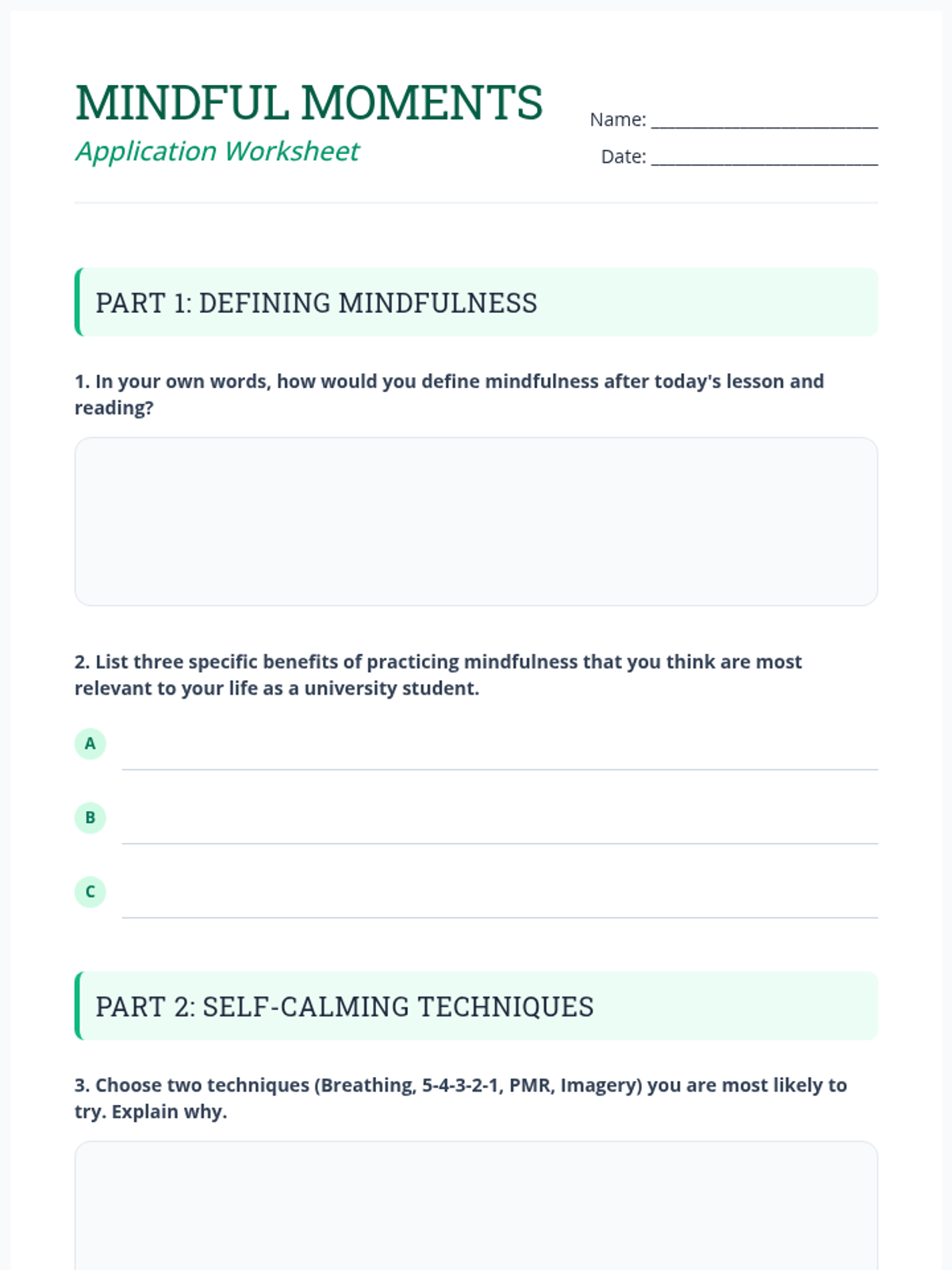 A 60-minute session for university students exploring mindfulness and self-calming techniques to manage academic stress and enhance focus.