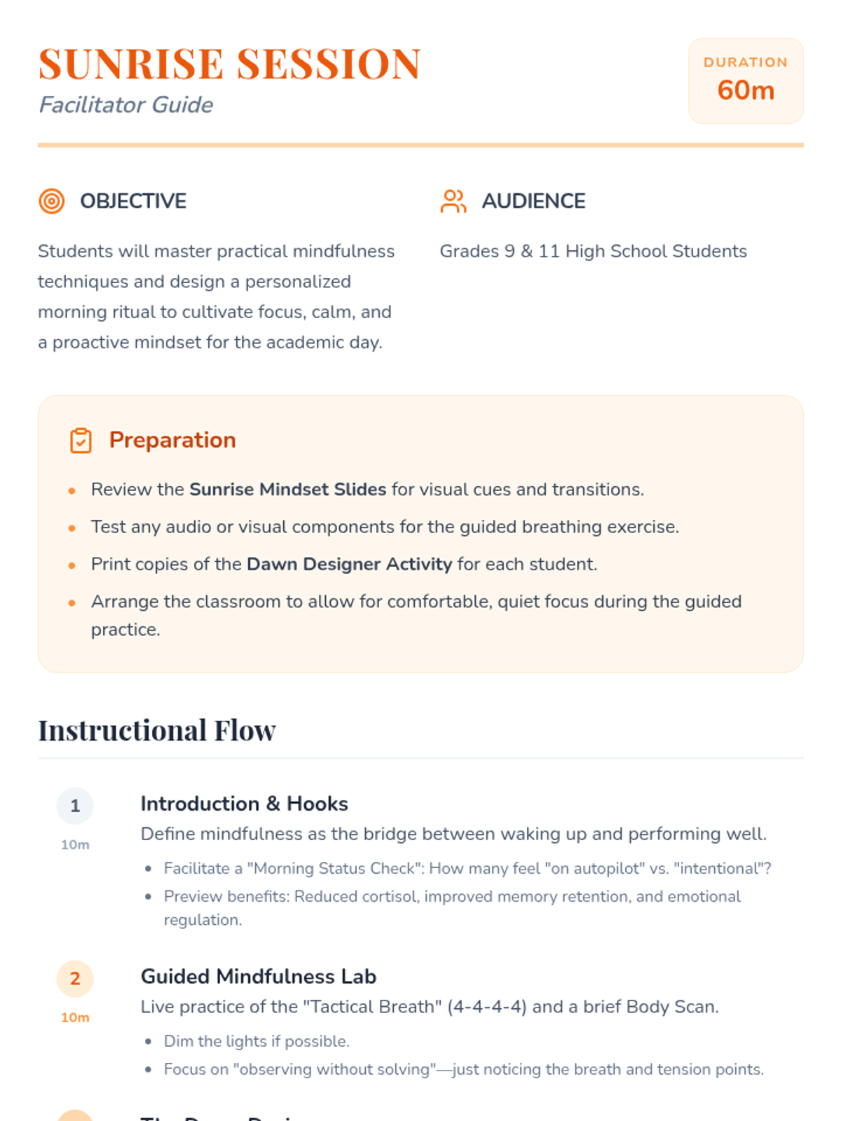 A lesson for high schoolers to develop mindfulness-based morning rituals that promote focus, calm, and a positive start to their day.