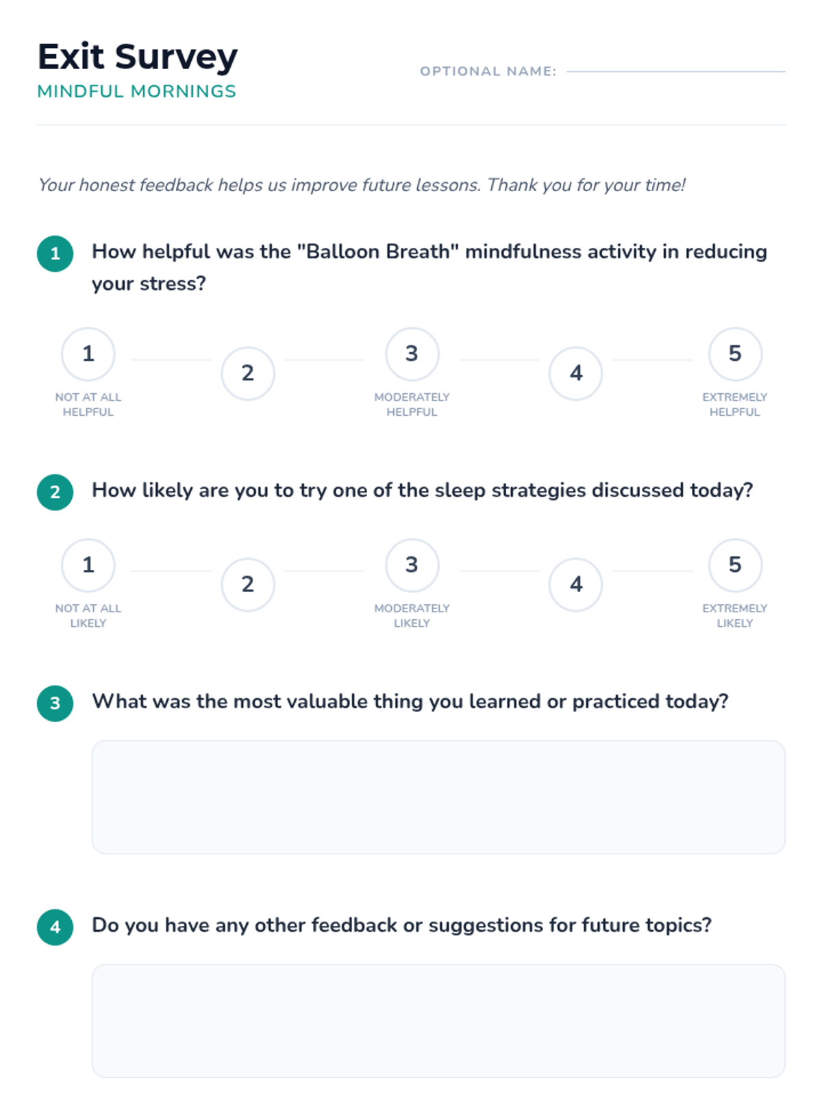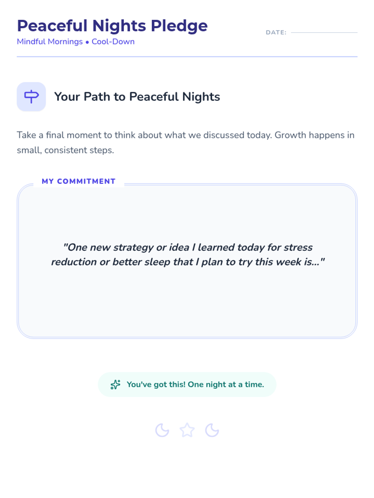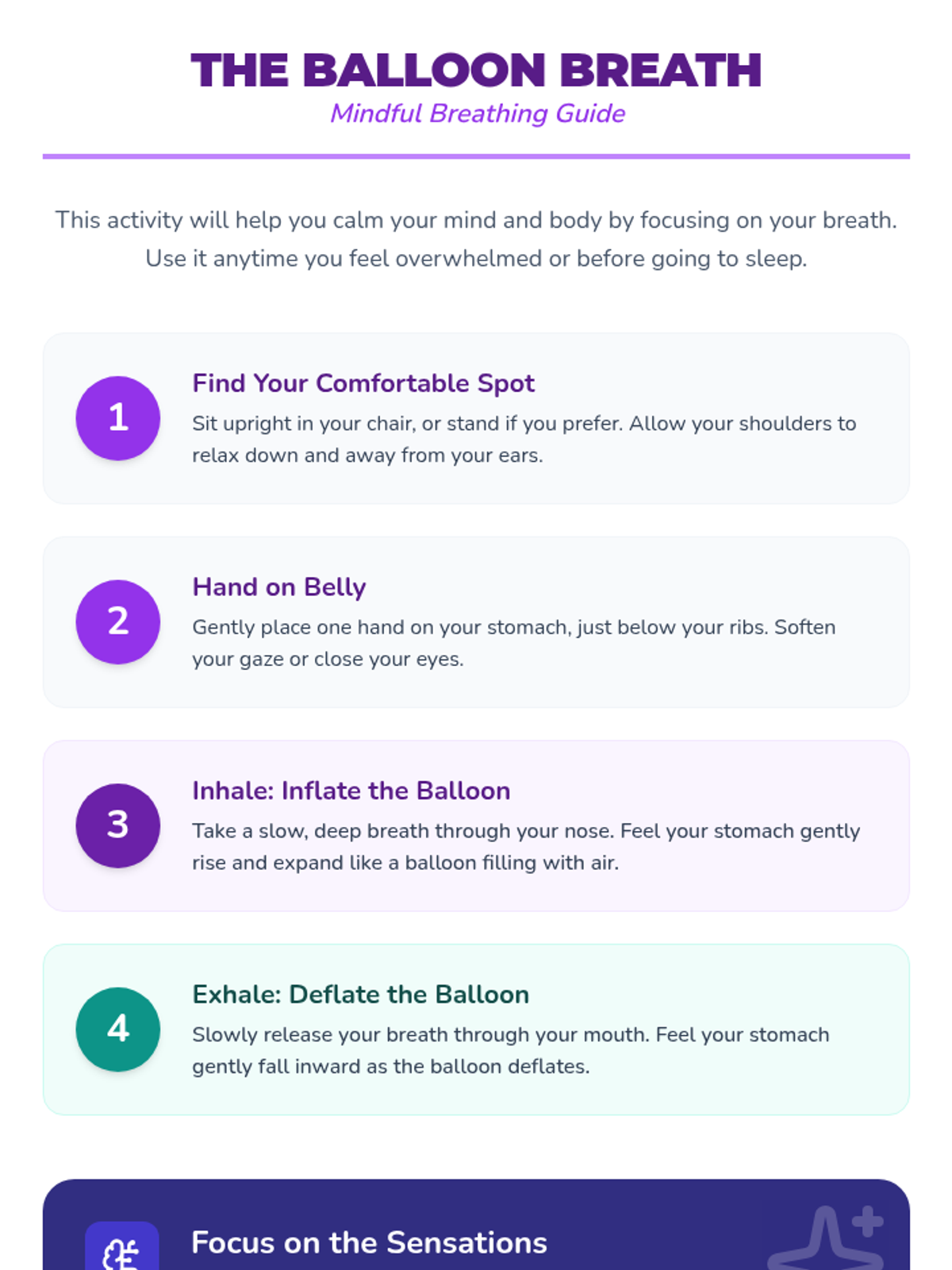 This lesson introduces 12th-grade students to mindfulness techniques for stress management and practical strategies for improving sleep quality. It includes guided breathing exercises, reflective journaling, and actionable sleep hygiene tips.
