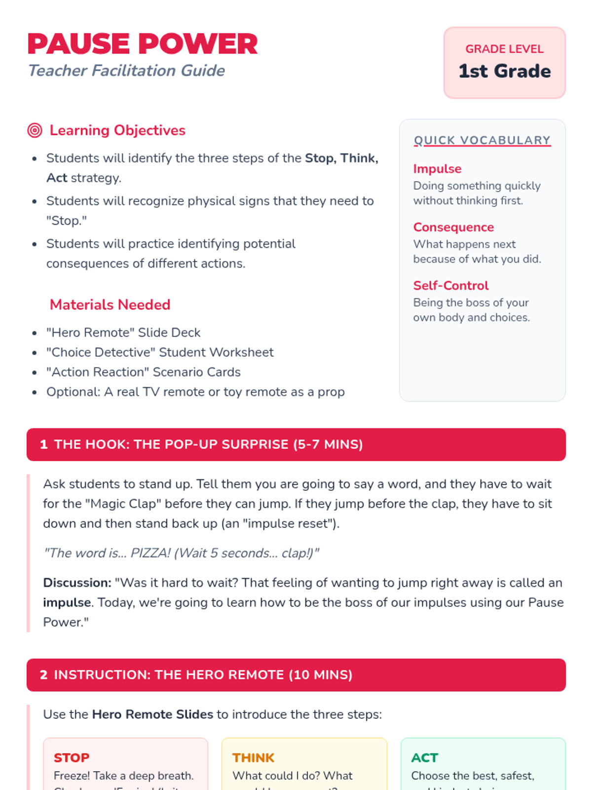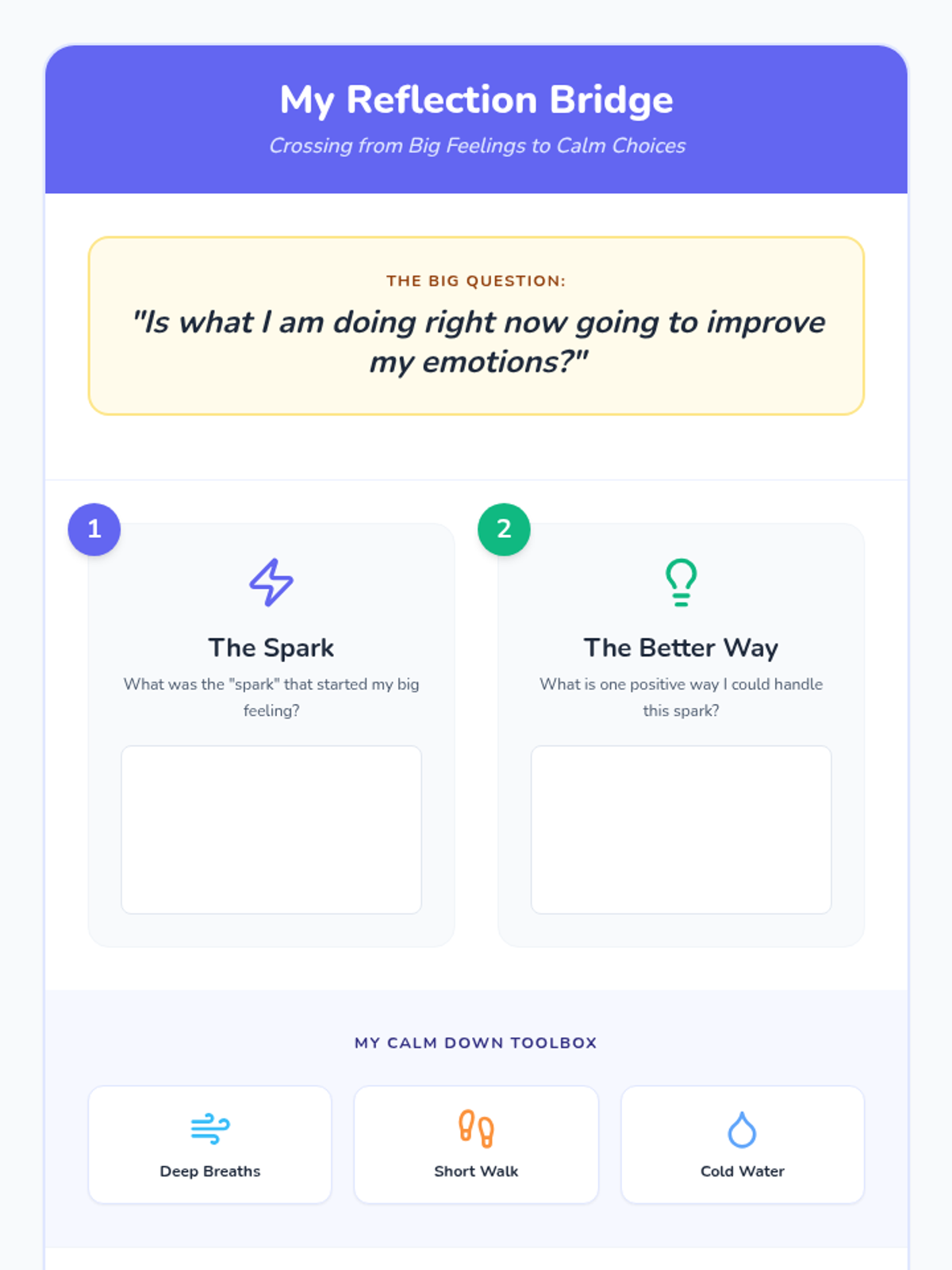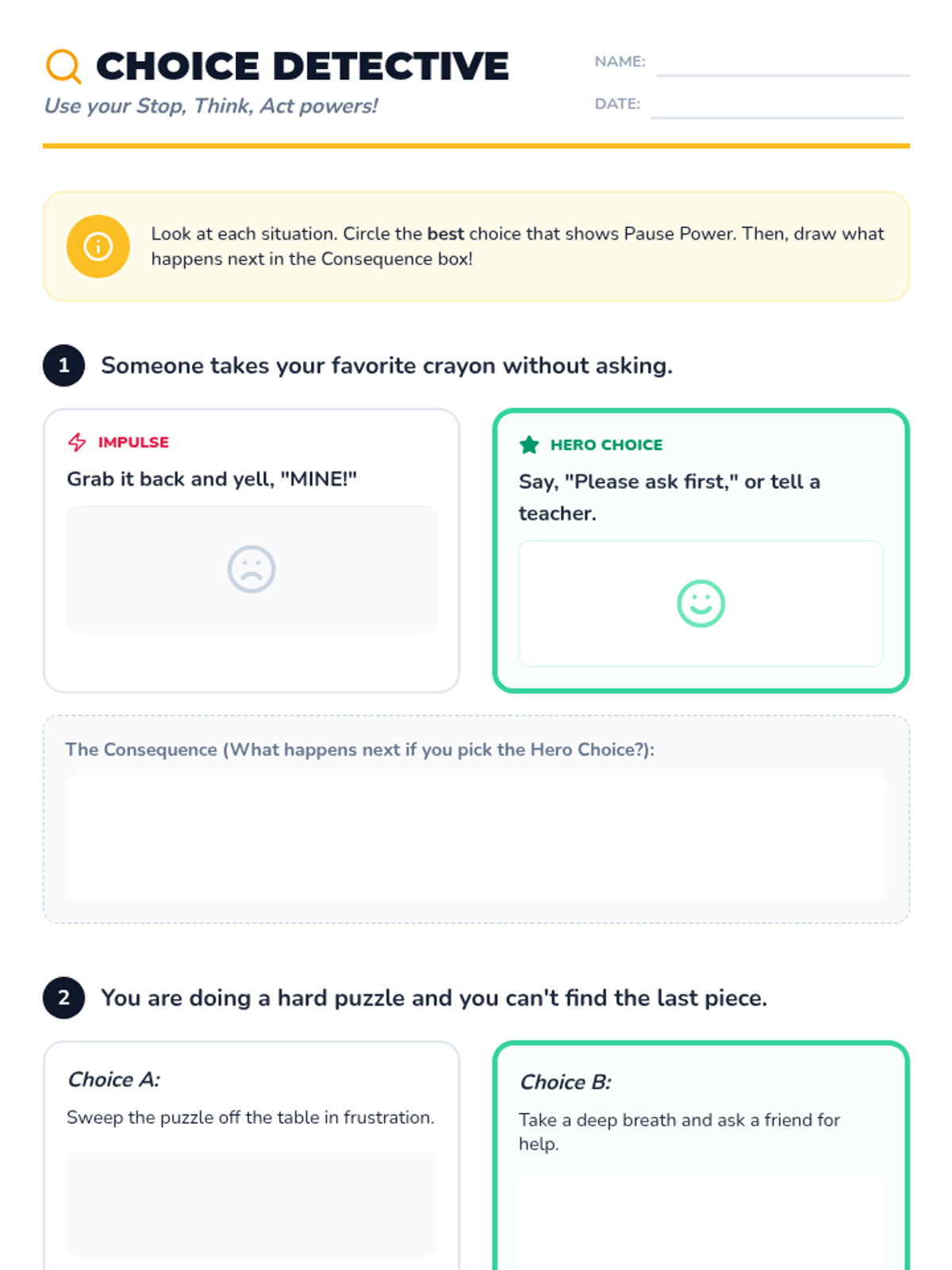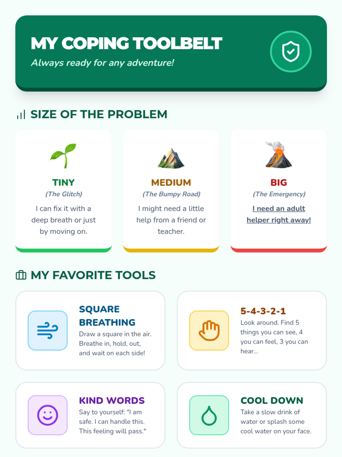 A comprehensive lesson for 2nd graders to identify 'big feelings,' categorize the size of problems from tiny glitches to big emergencies, and select appropriate coping skills. Students will learn to match their emotional reaction to the size of the problem using a navigator-themed approach.
