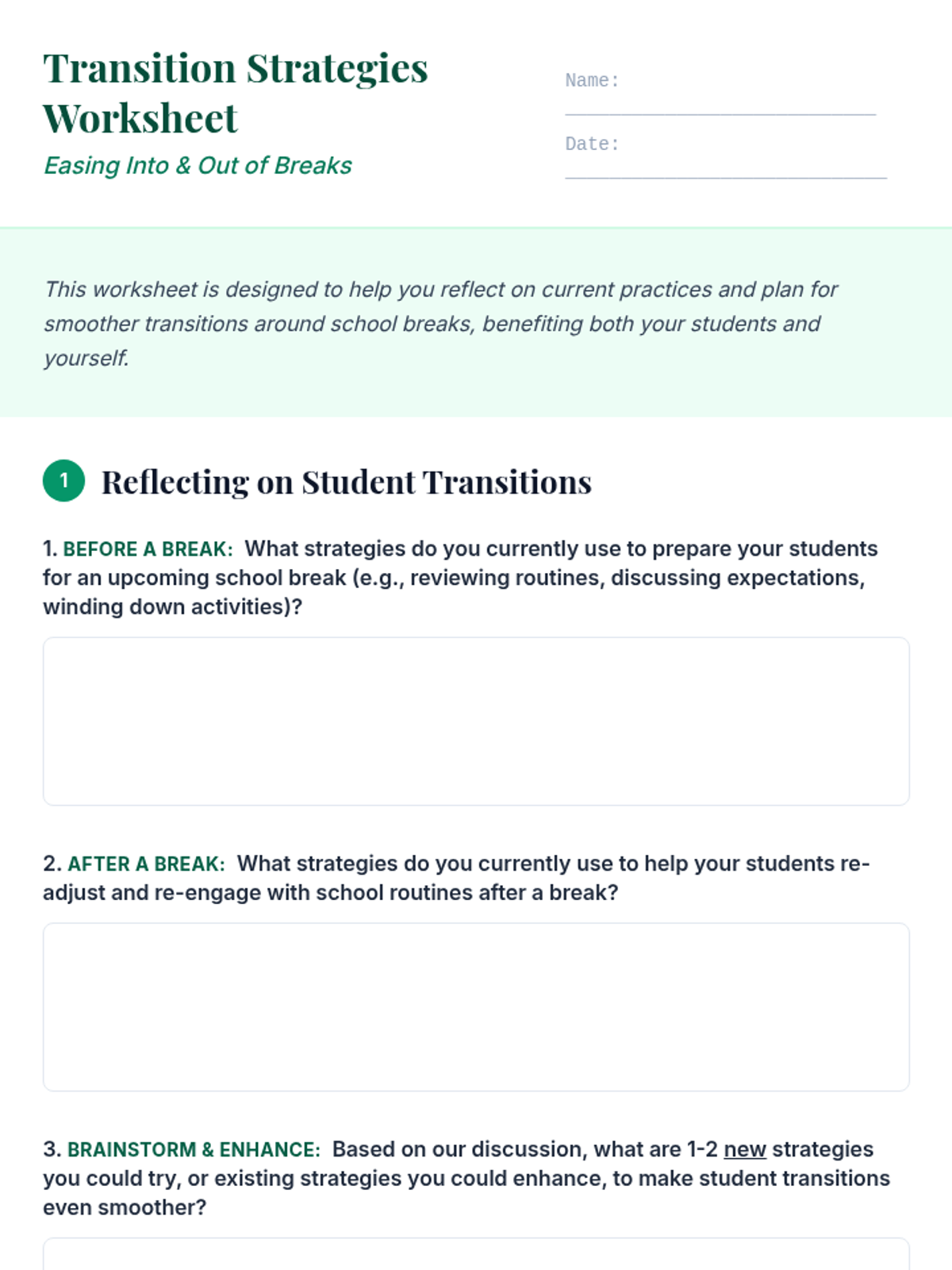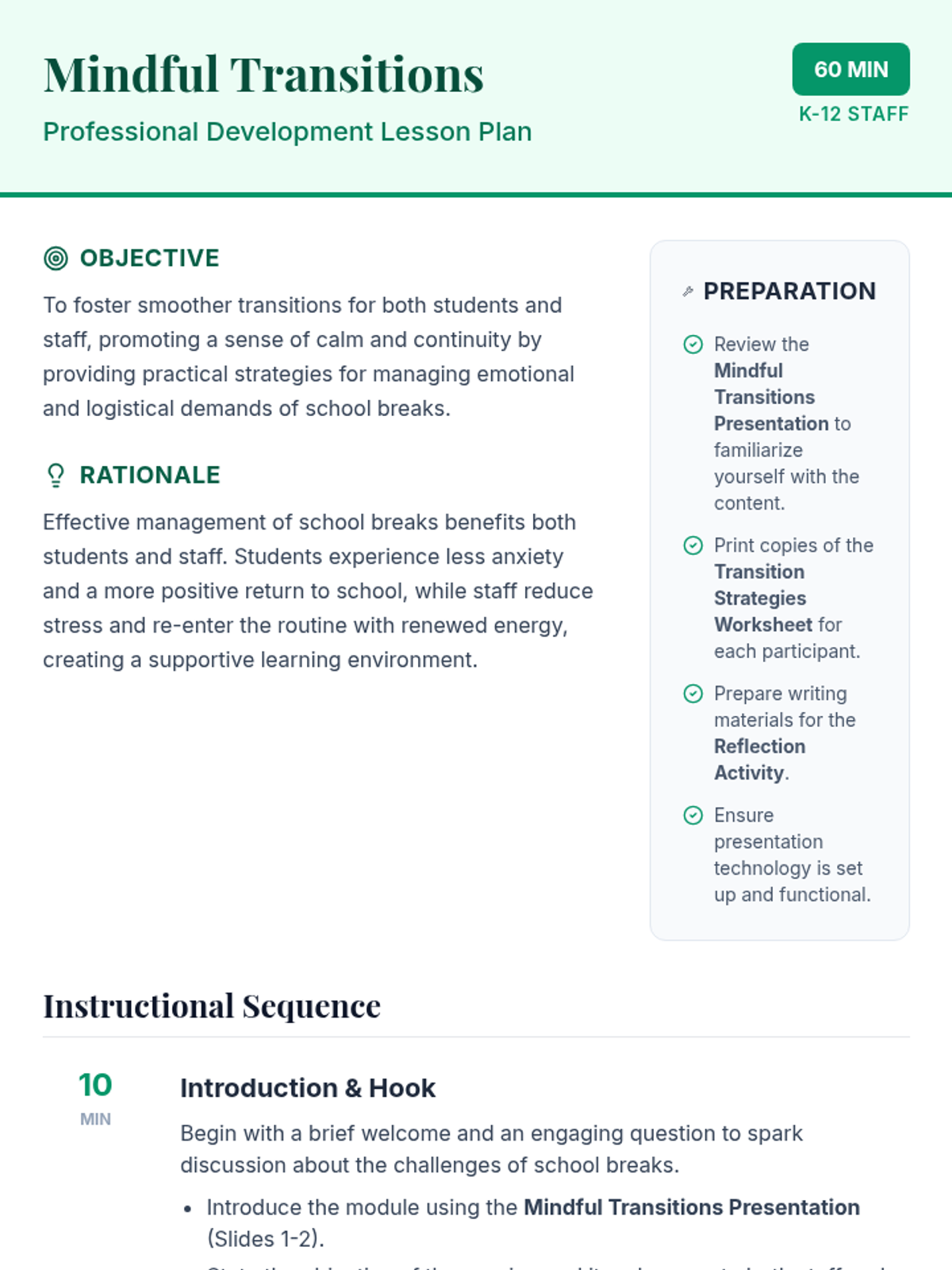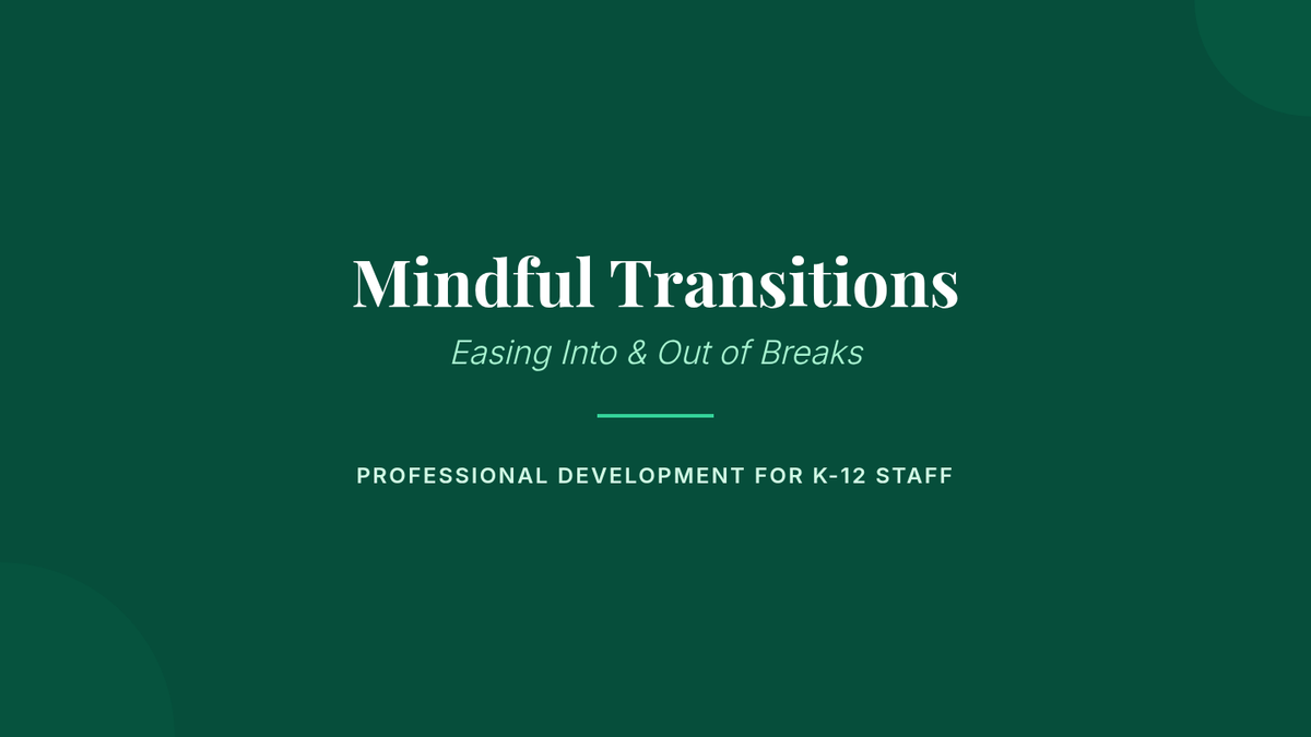 A 60-minute professional development session for K-12 staff focused on practical strategies to manage the emotional and logistical demands of school breaks for both themselves and their students.
