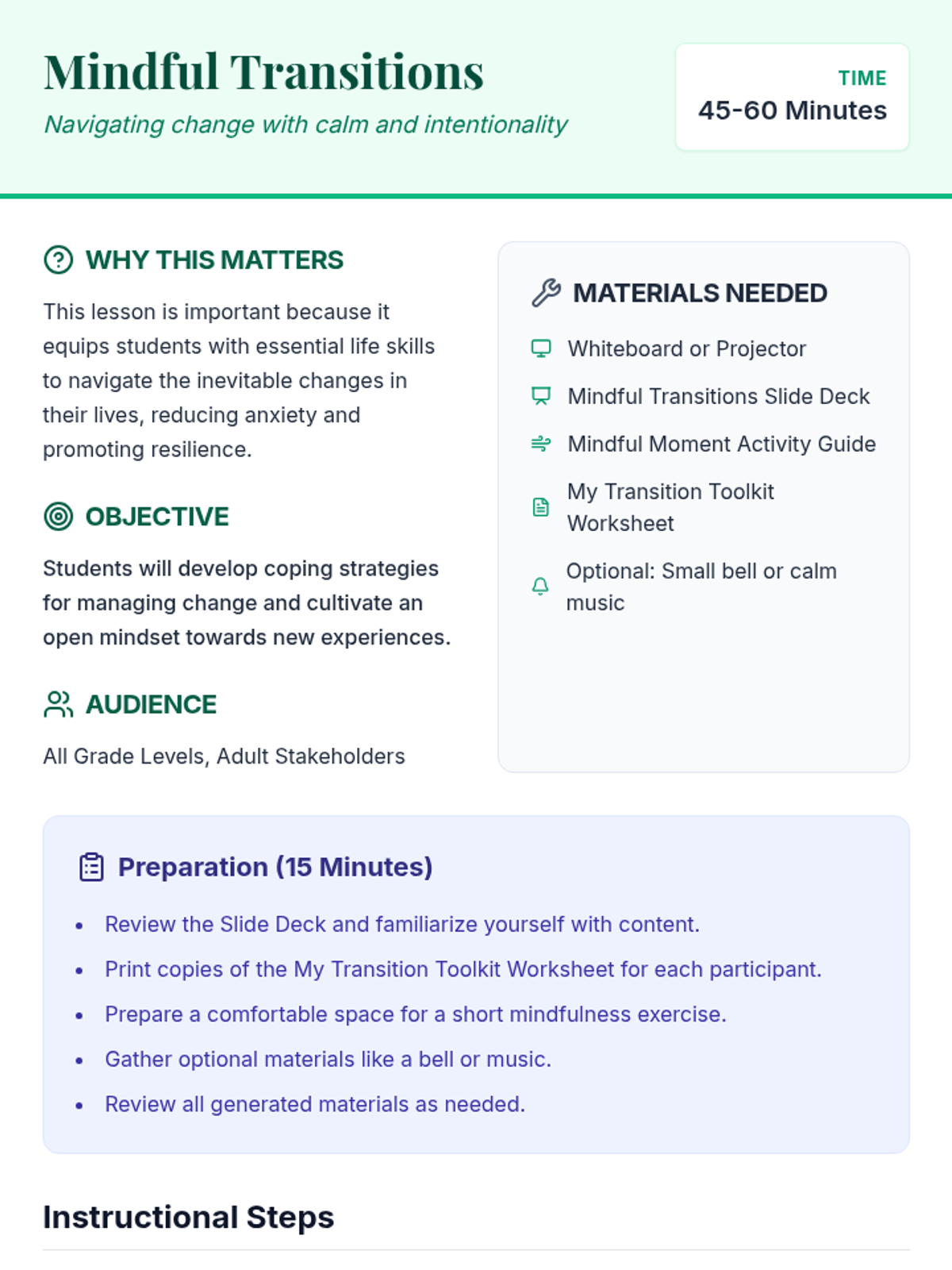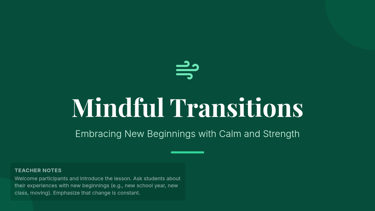 This lesson equips students with mindfulness techniques and goal-setting strategies to navigate life changes with resilience and intentionality.