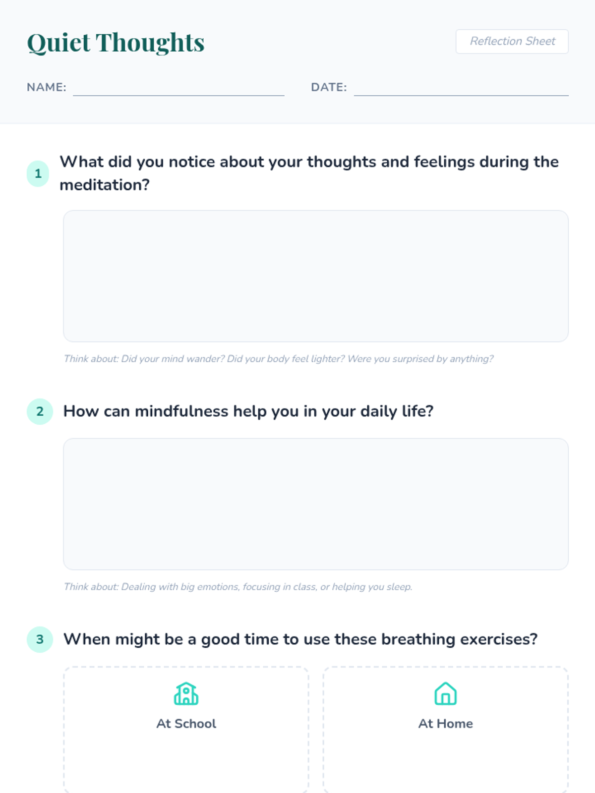 Teaches emotional regulation through the Notice-Name-Breathe method and building a resilience toolkit.