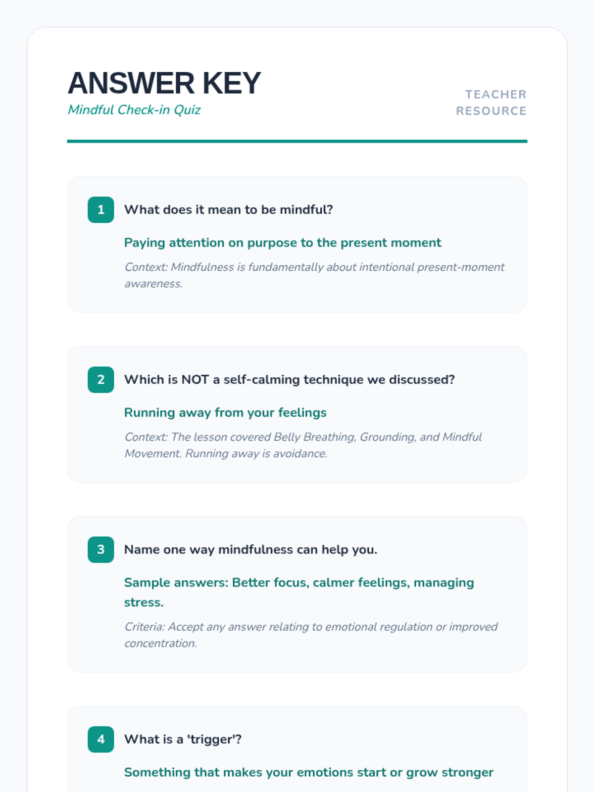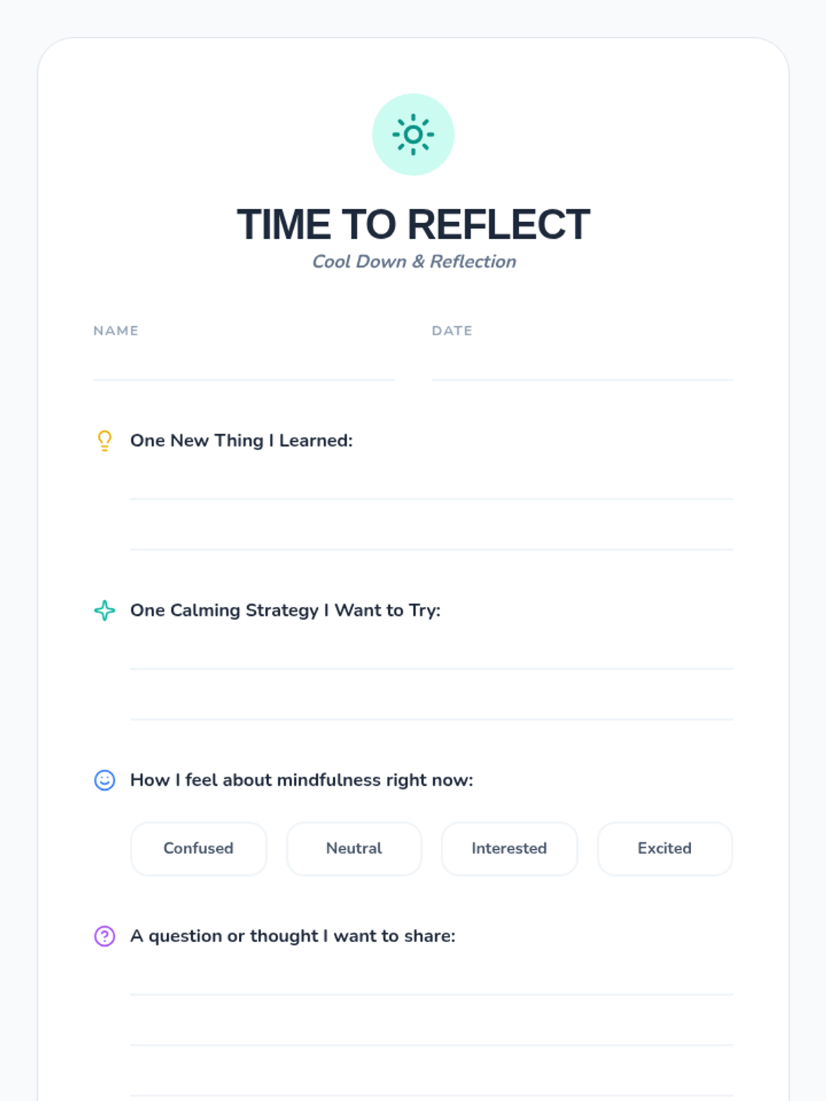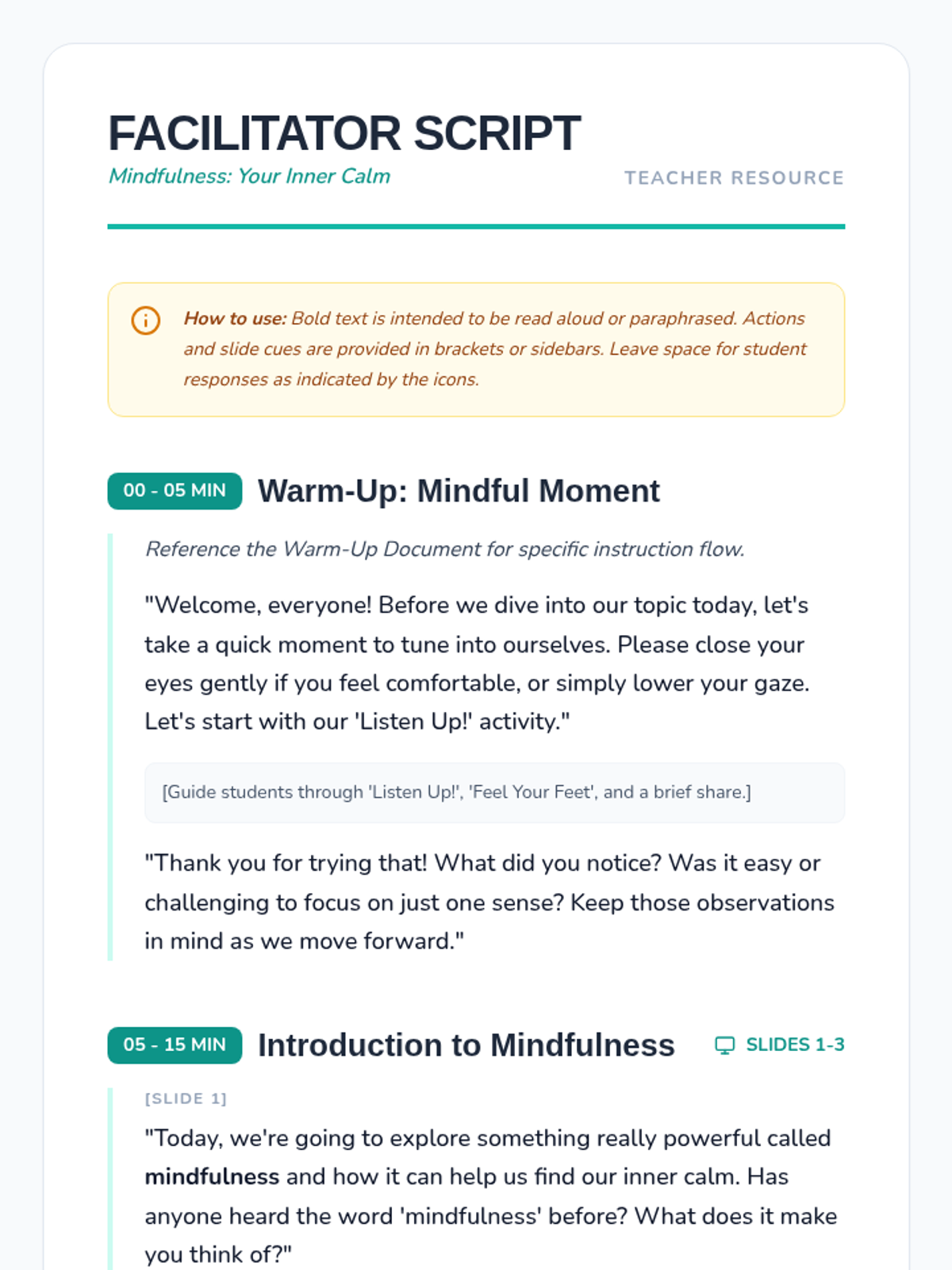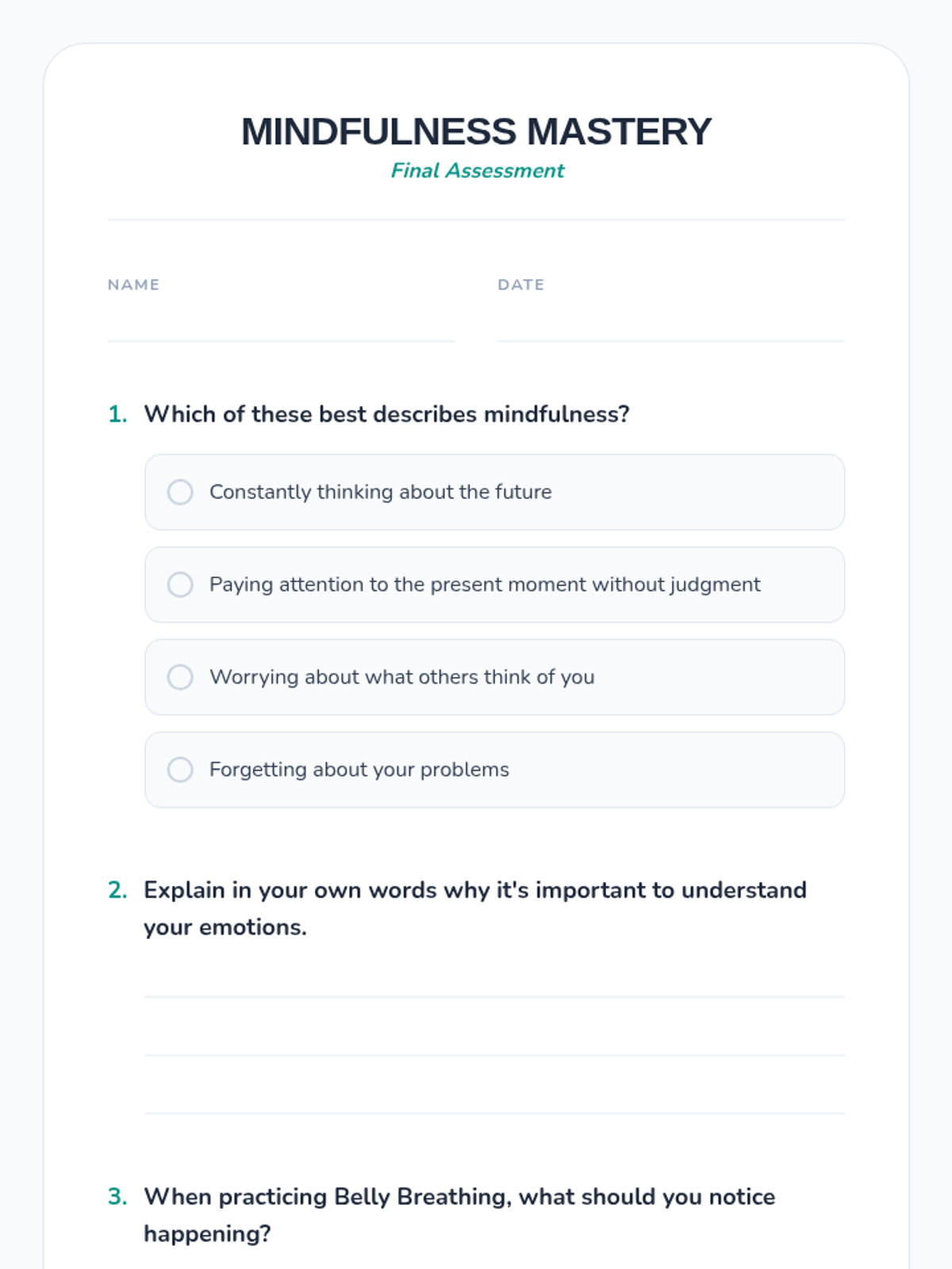 This lesson introduces K-12 students to mindfulness and self-calming techniques, teaching practical strategies to manage emotions and reduce stress for better emotional well-being.
