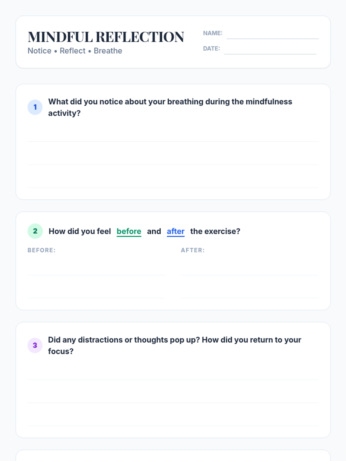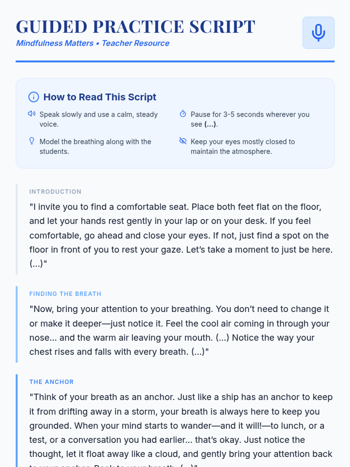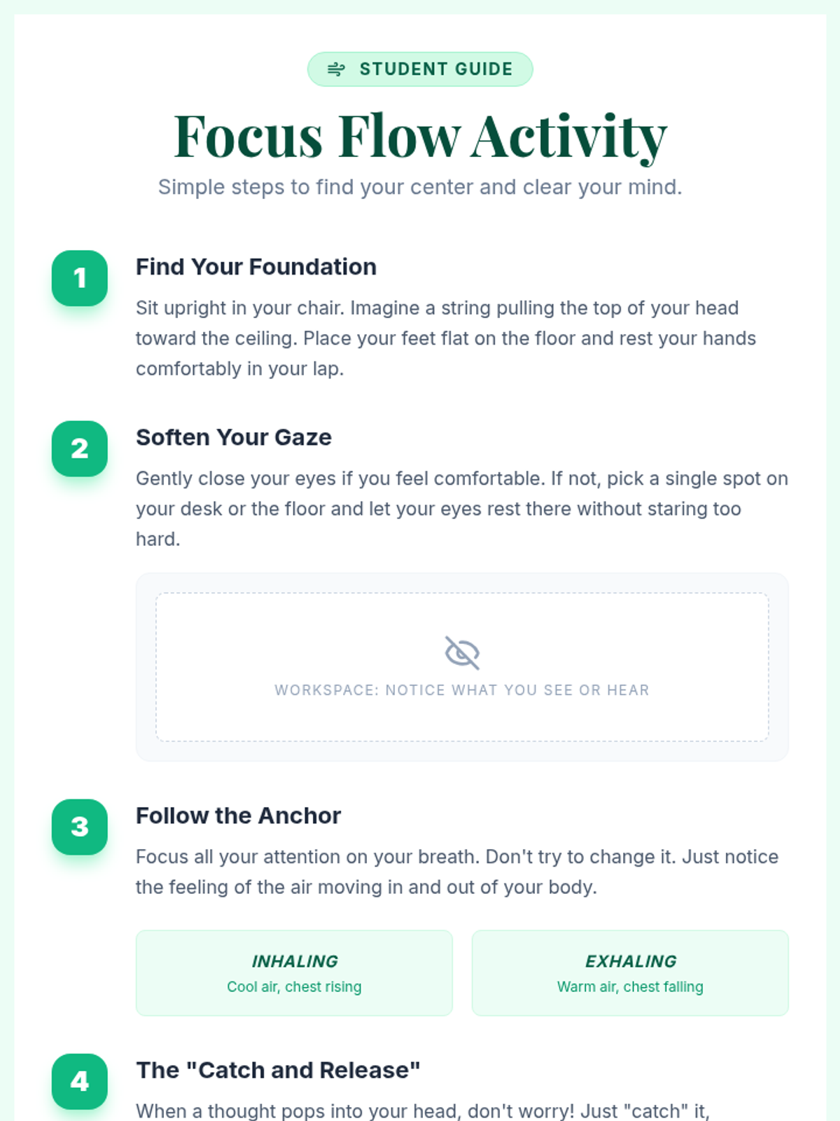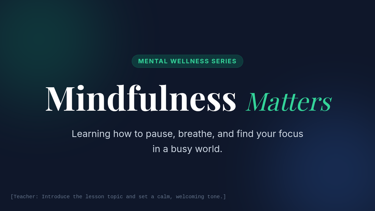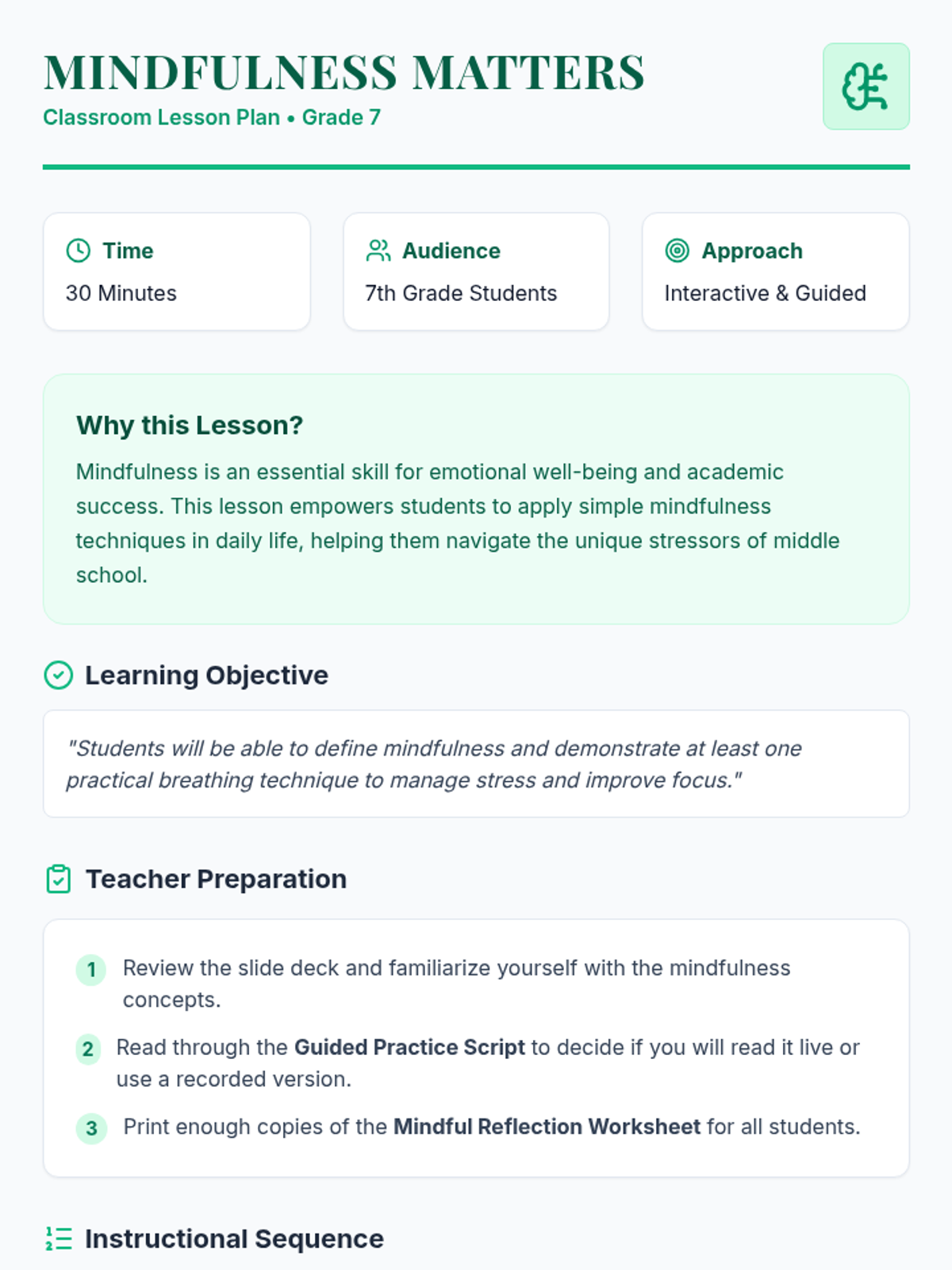 An introductory lesson for 7th graders on mindfulness, focusing on stress management and concentration through guided practice and reflection.