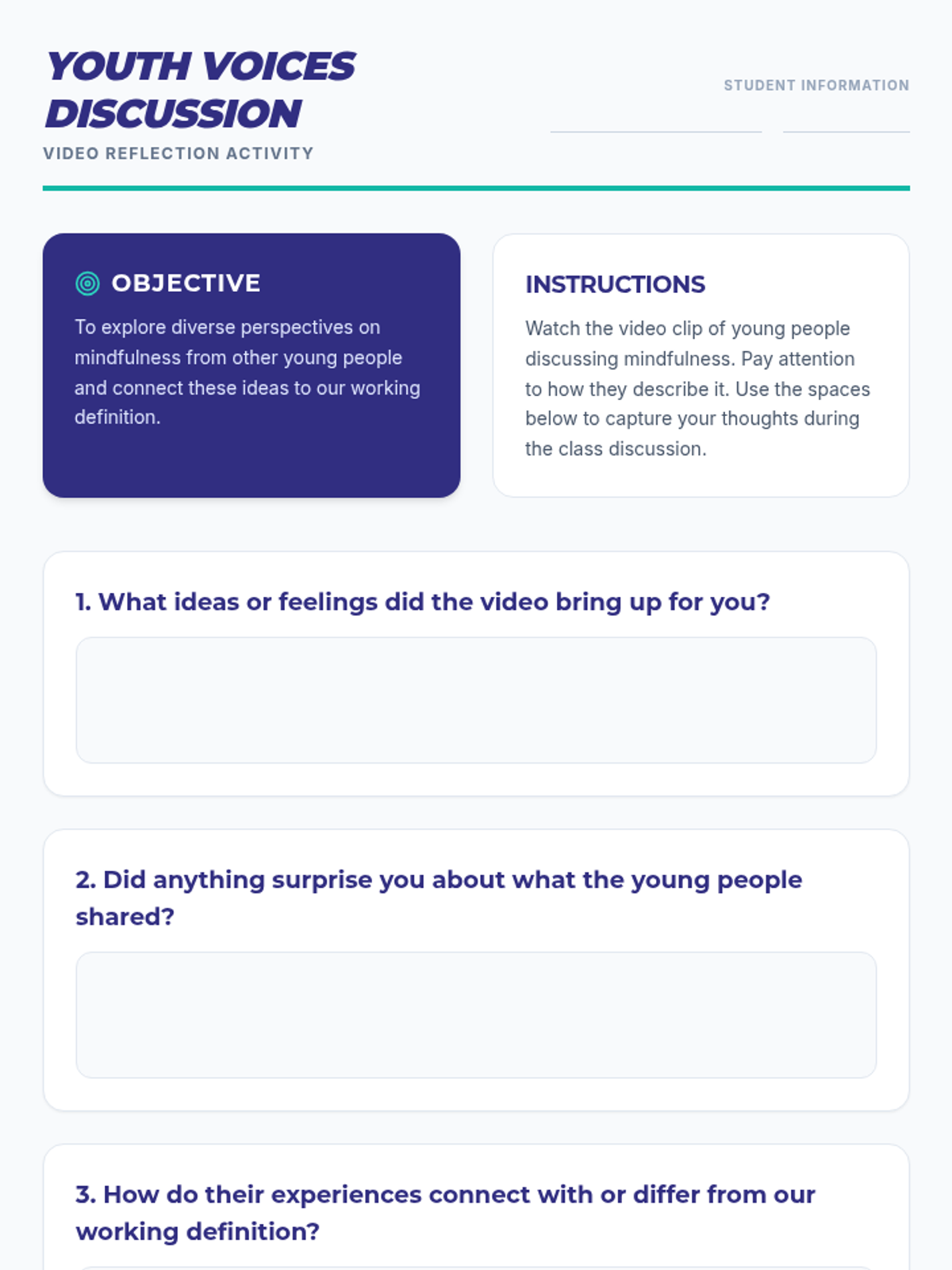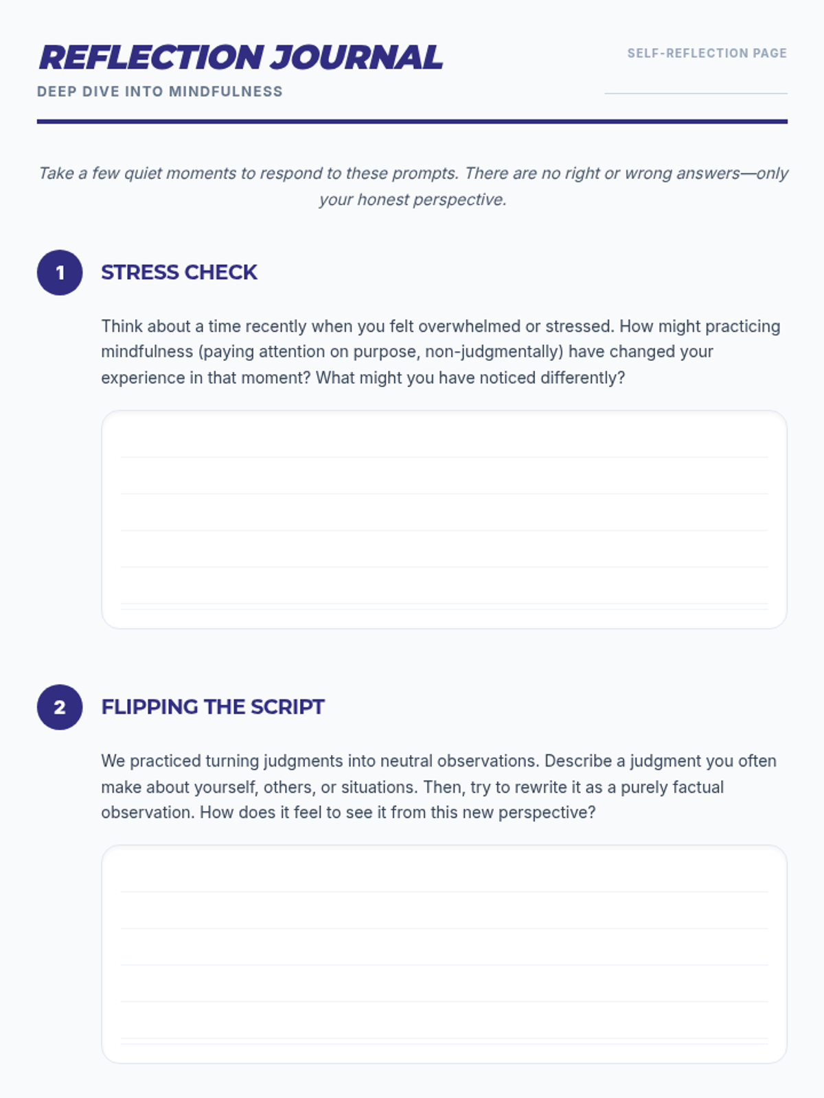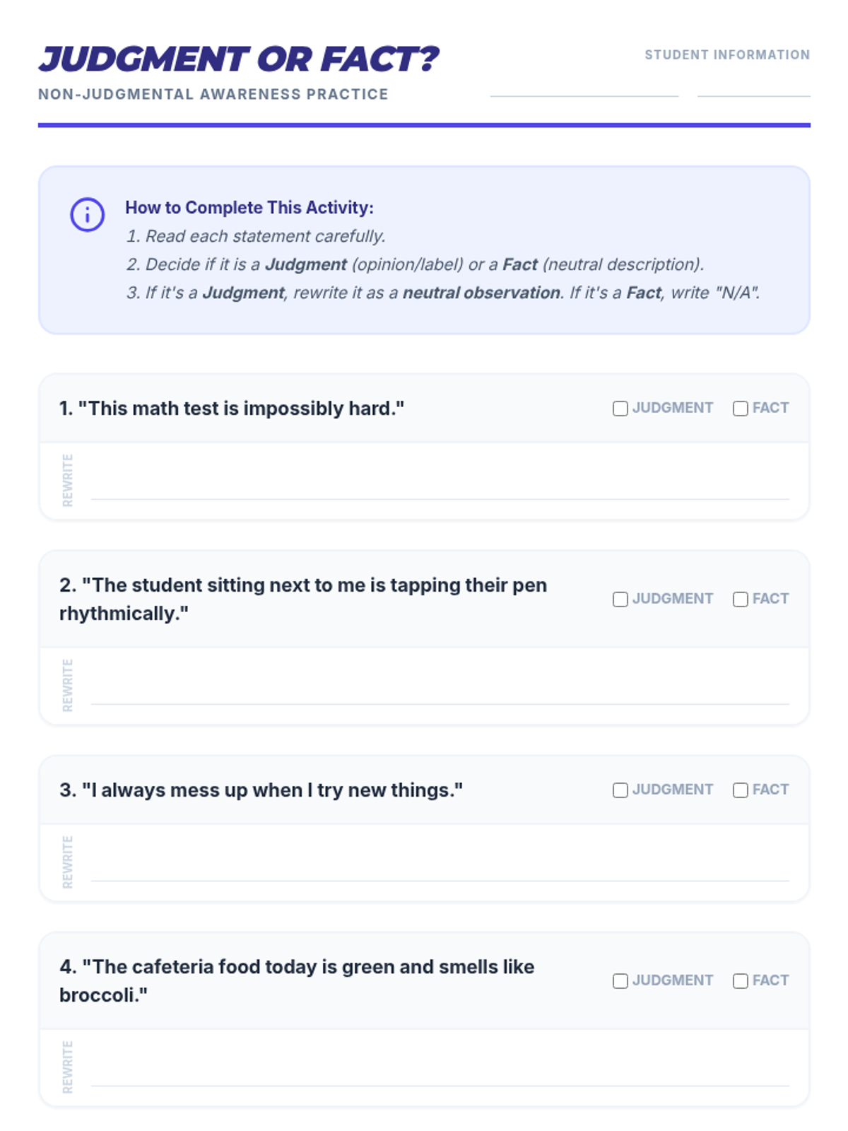 This lesson helps 9th-grade students define mindfulness, differentiate between judgments and observations, and check in with their emotions through interactive discussion and guided practice.