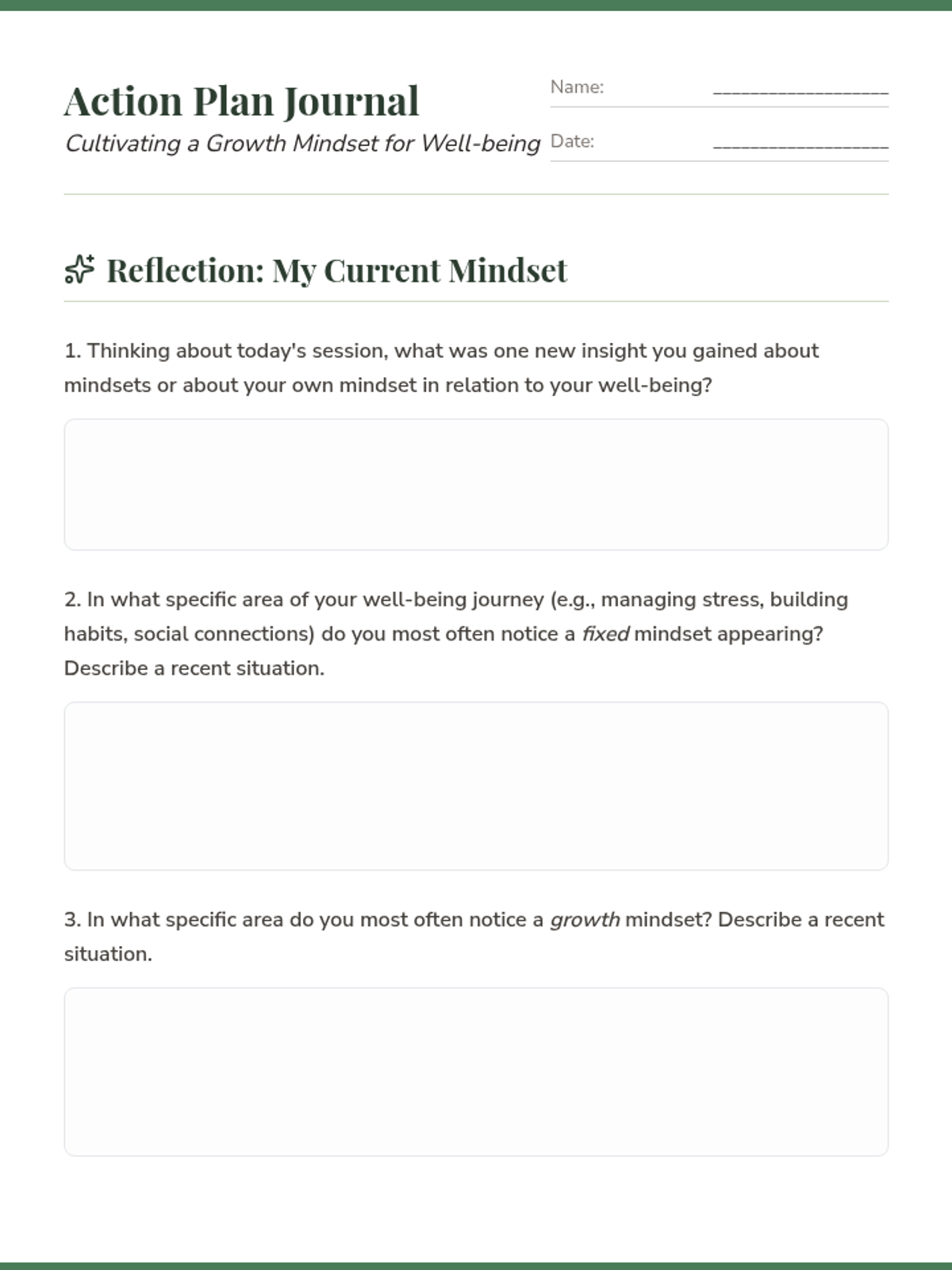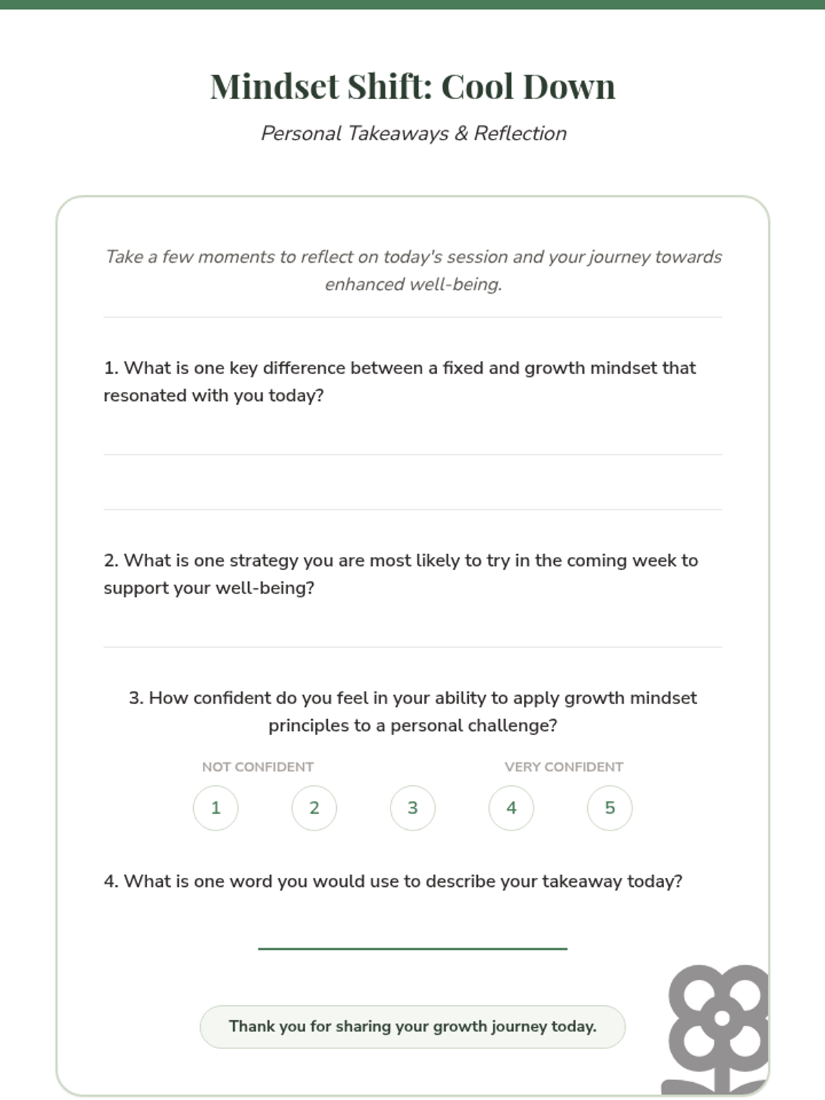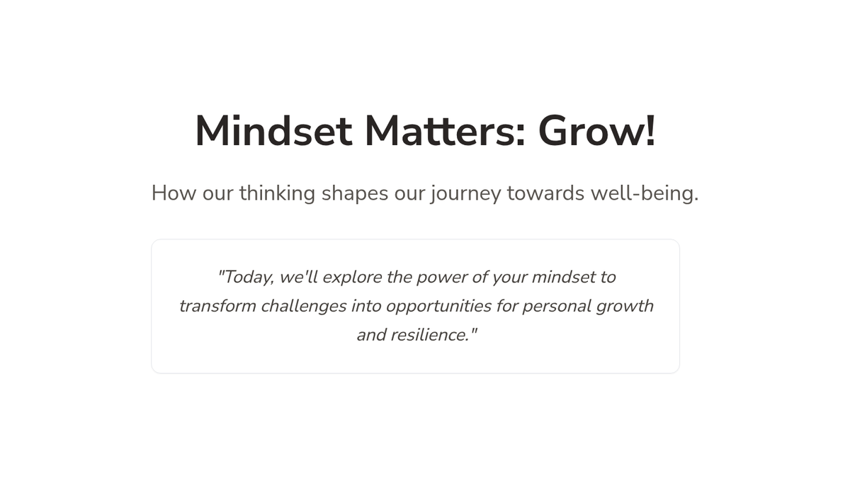 This lesson helps adults understand the difference between growth and fixed mindsets, recognize their own mindset patterns, and develop strategies for fostering a growth mindset within a mental health and recovery context.