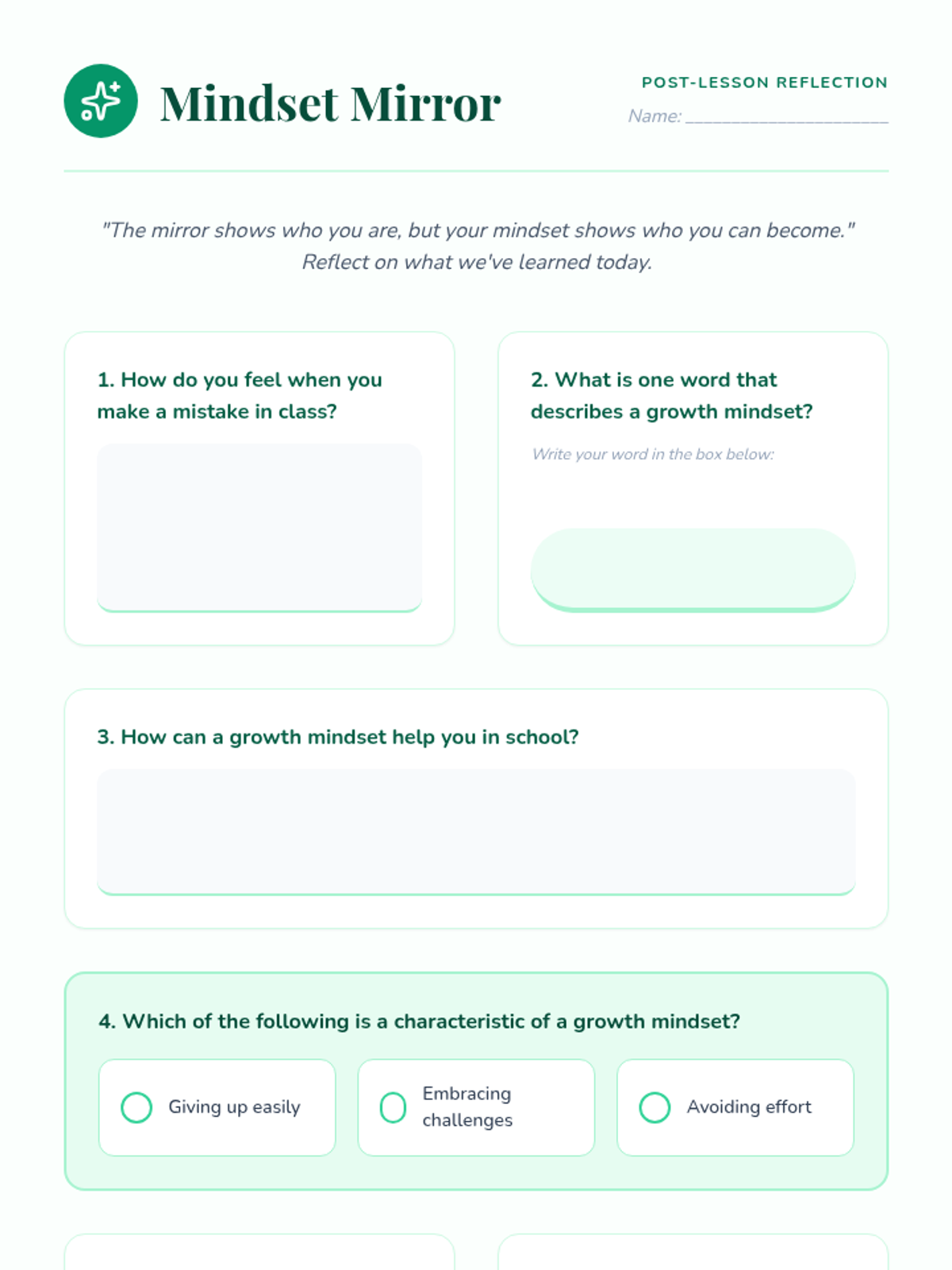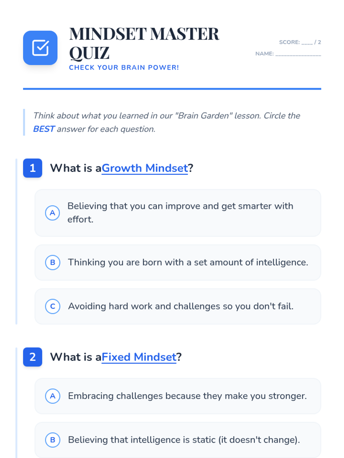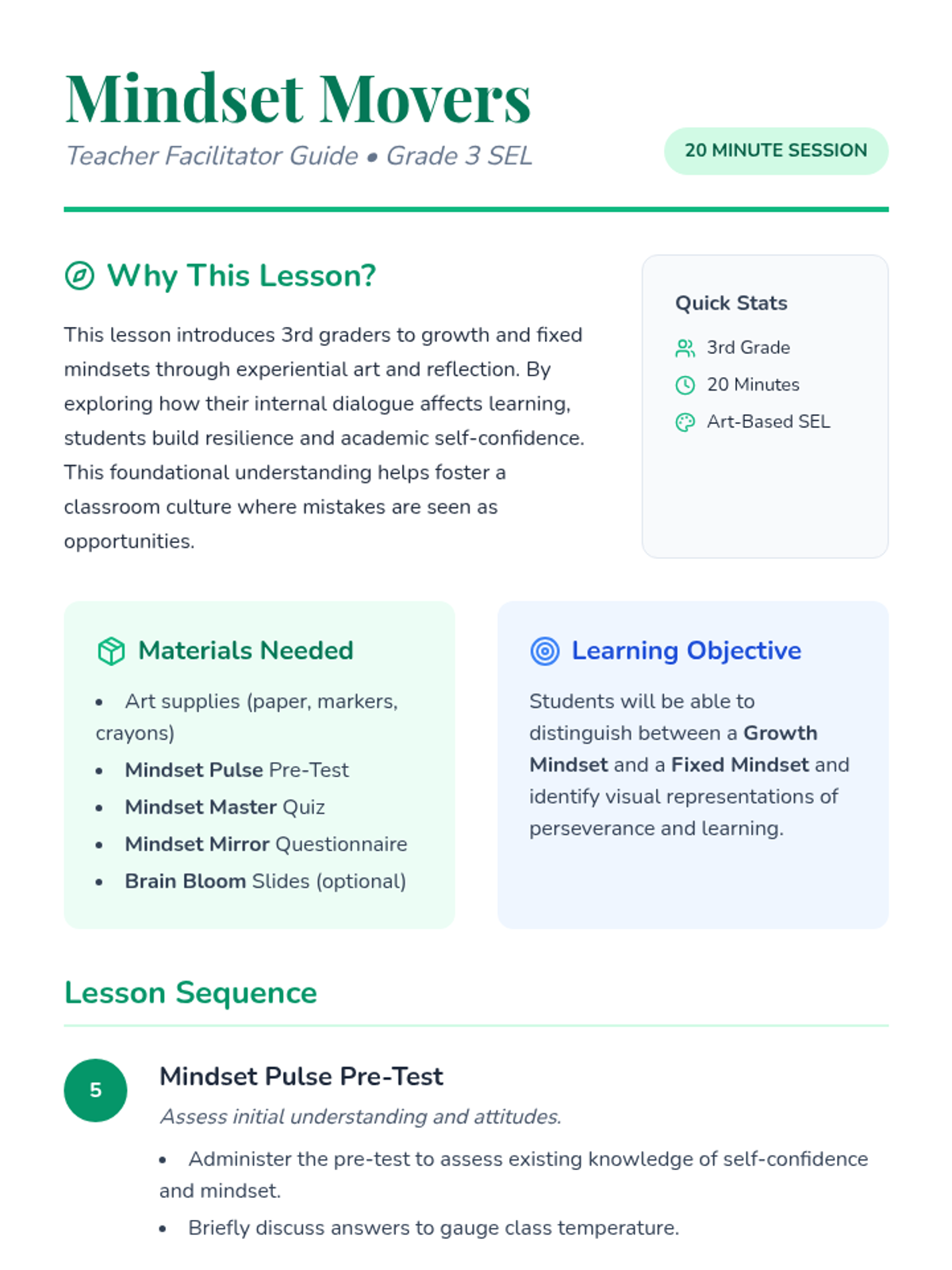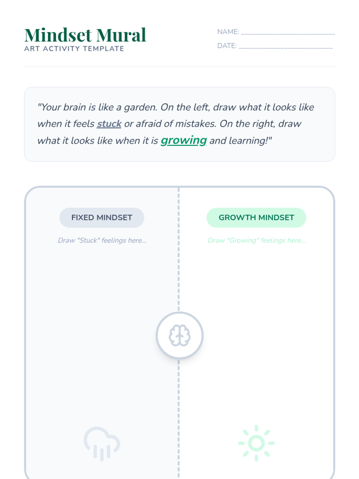 This lesson introduces 3rd graders to growth and fixed mindsets through experiential art and reflection, helping them build resilience and academic self-confidence.
