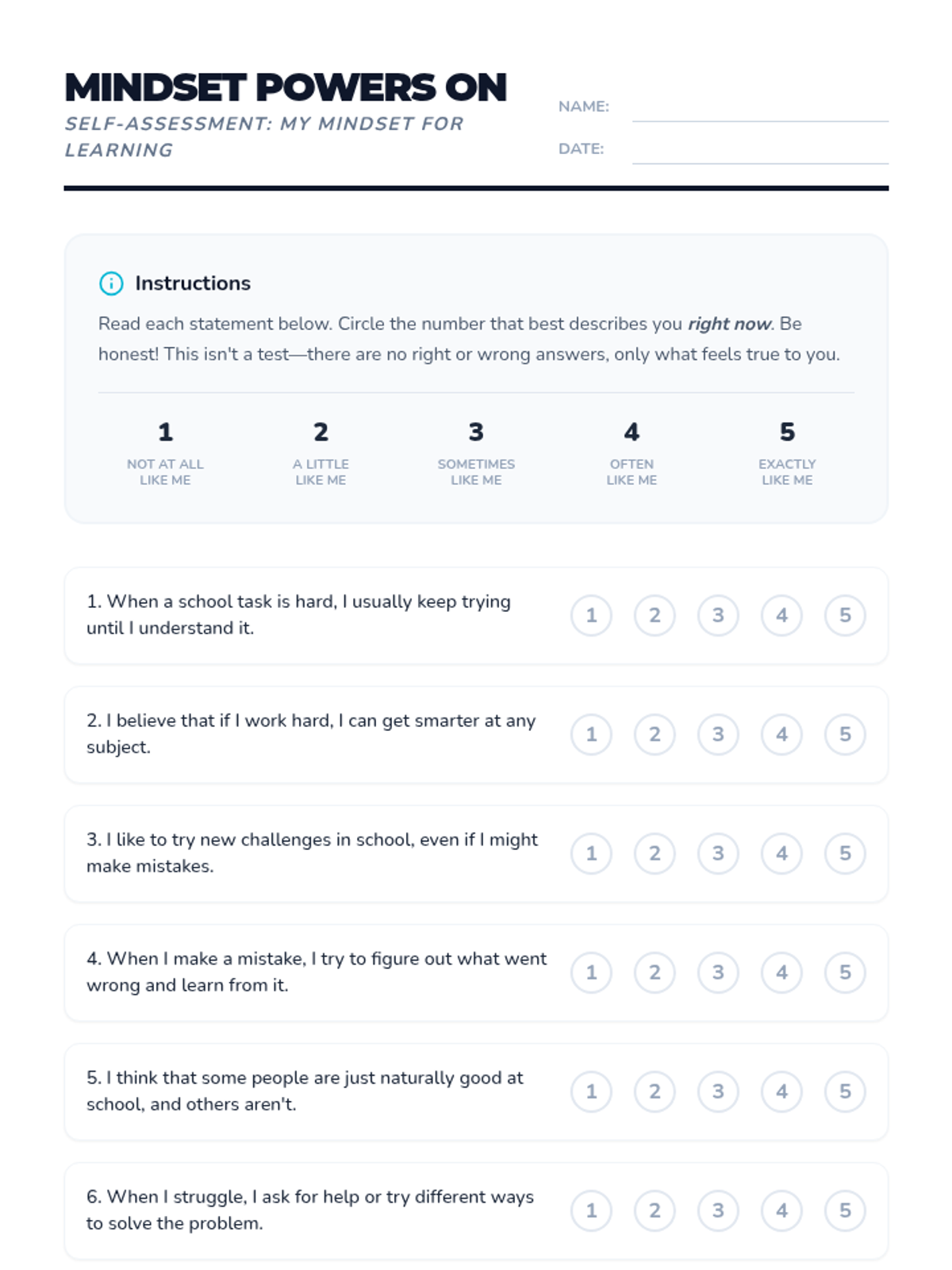 Introduction to the growth mindset. Focus on the 'Power of Yet' and building resilience when facing initial failure.