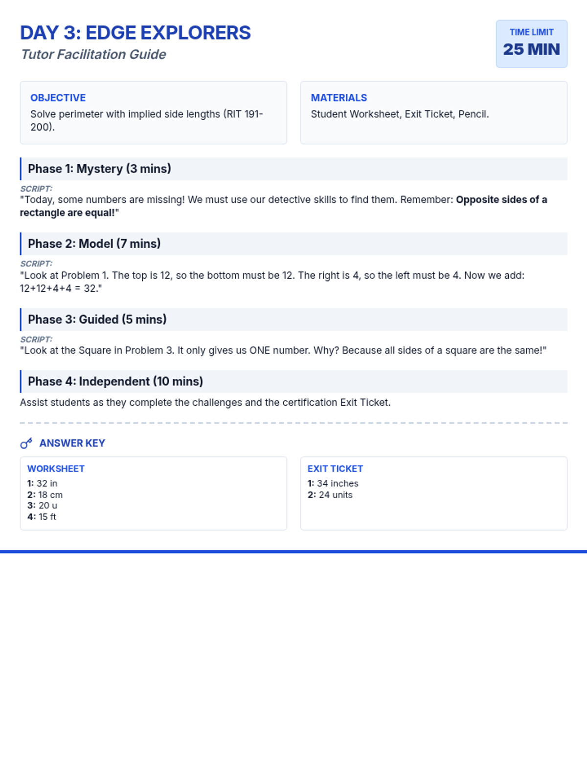 Students solve perimeter problems where some side lengths are implied or shapes are complex (191-200 focus).