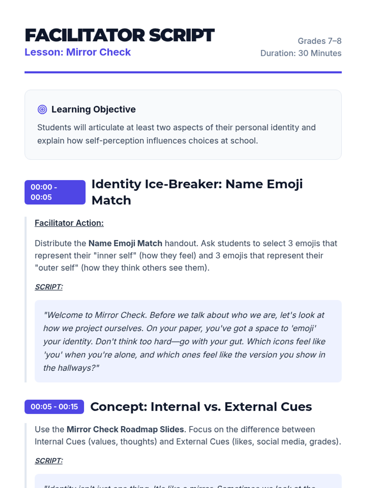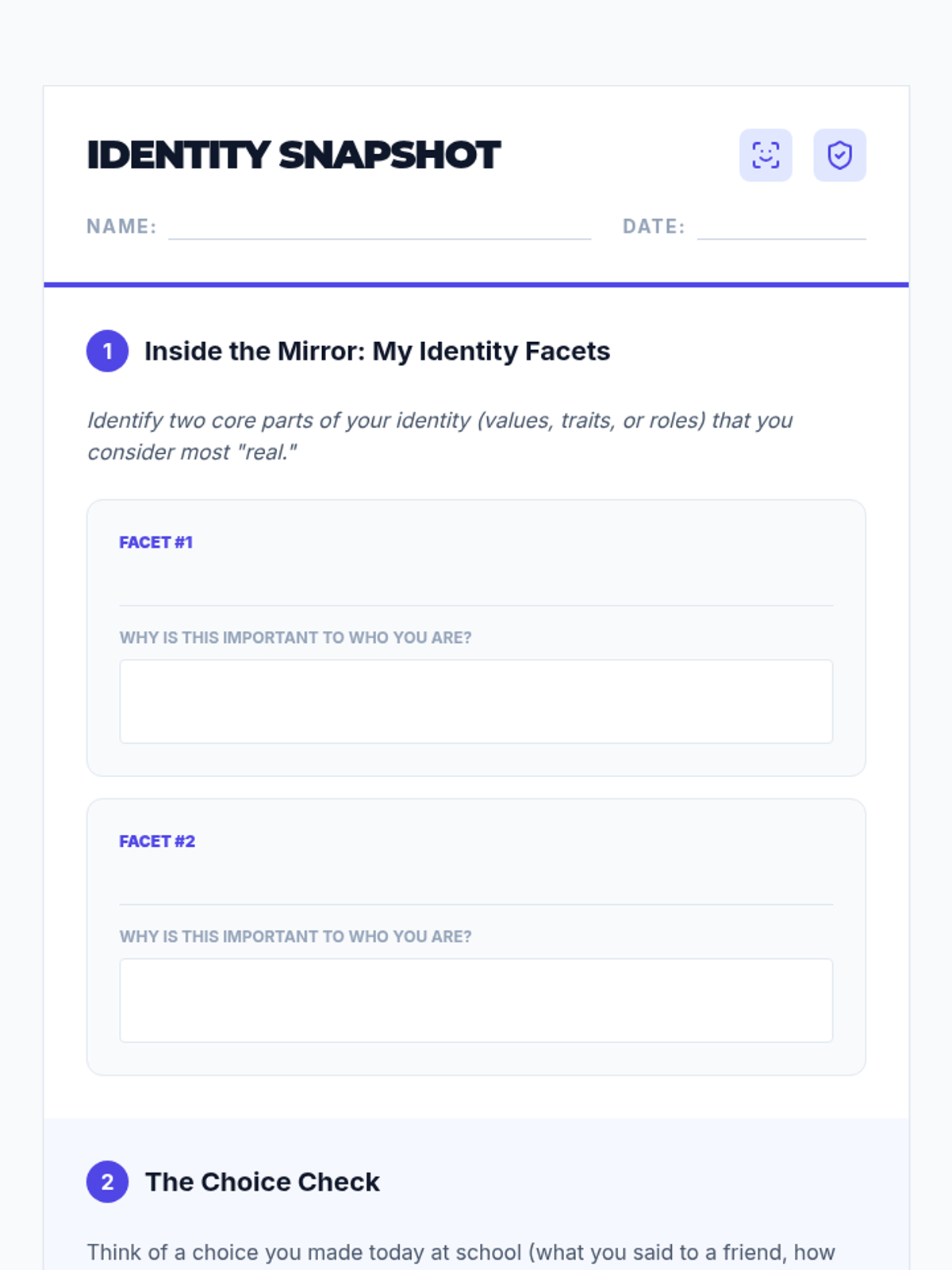 A 30-minute social-emotional learning lesson for middle schoolers to explore personal identity and its connection to daily choices and trustworthiness.