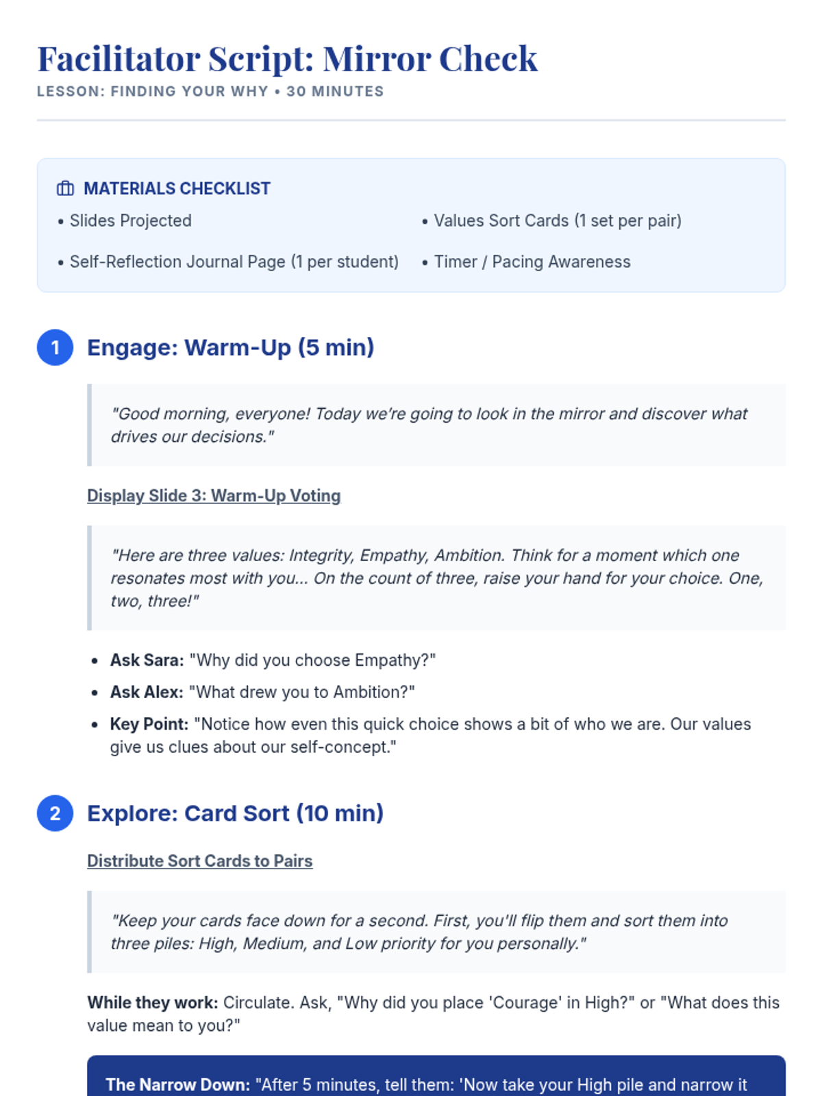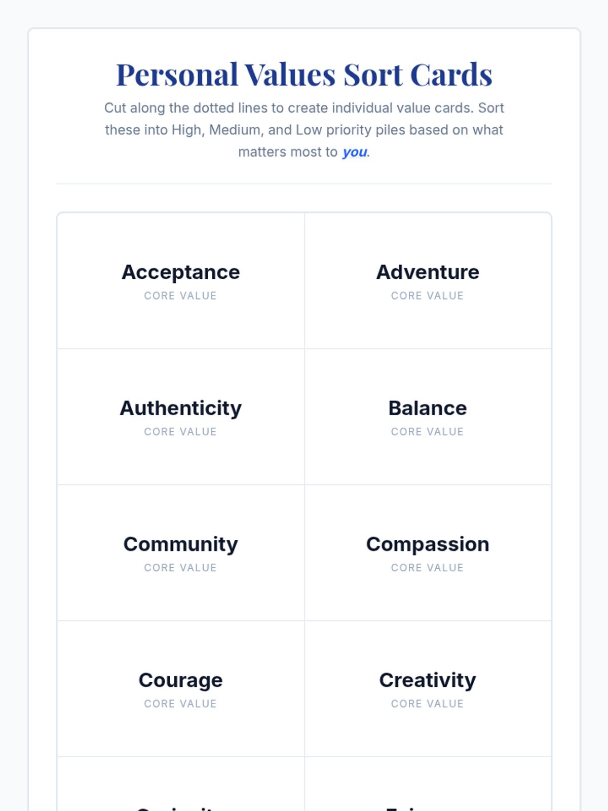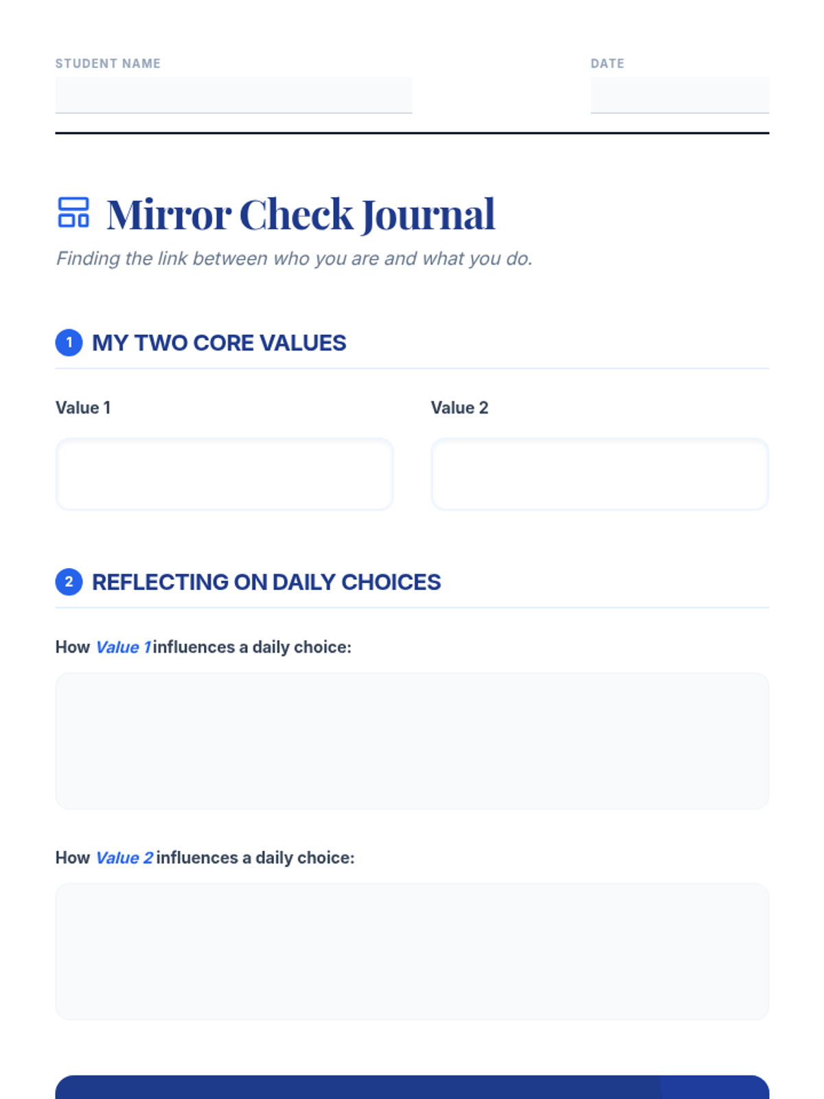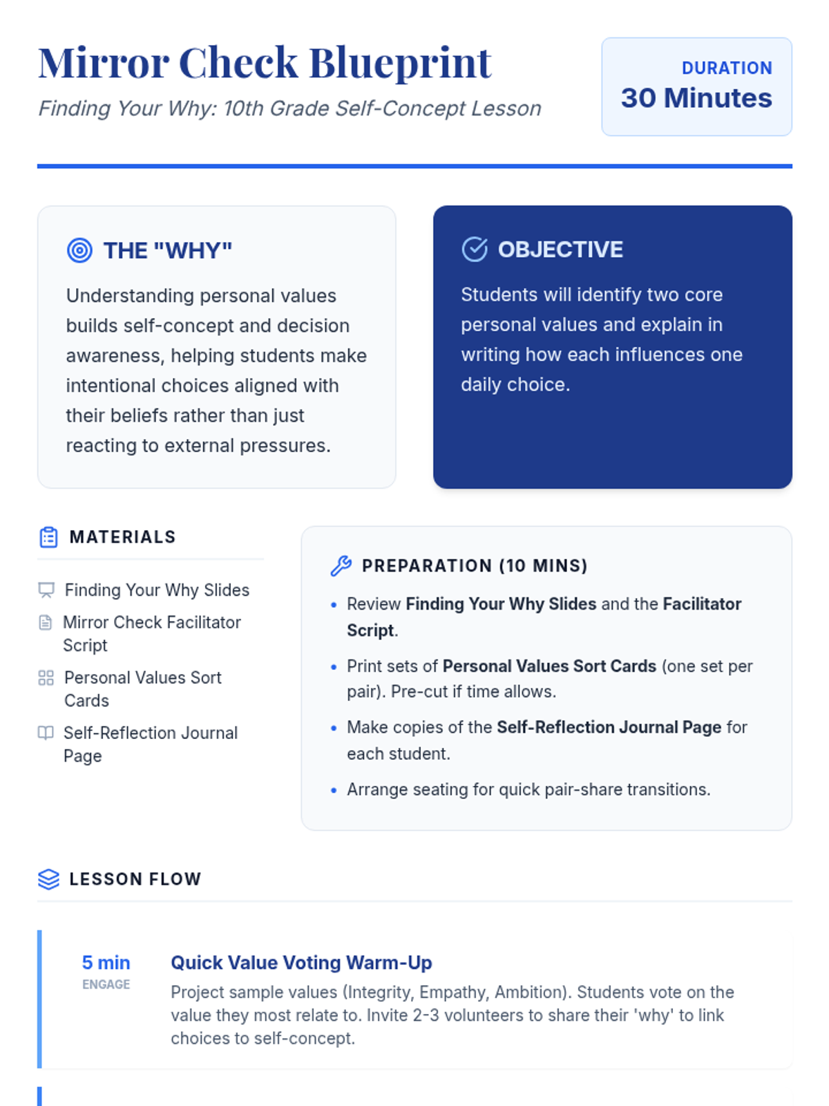 A 30-minute 10th grade lesson where students identify core personal values and reflect on how they influence daily decisions to build self-concept and decision awareness.