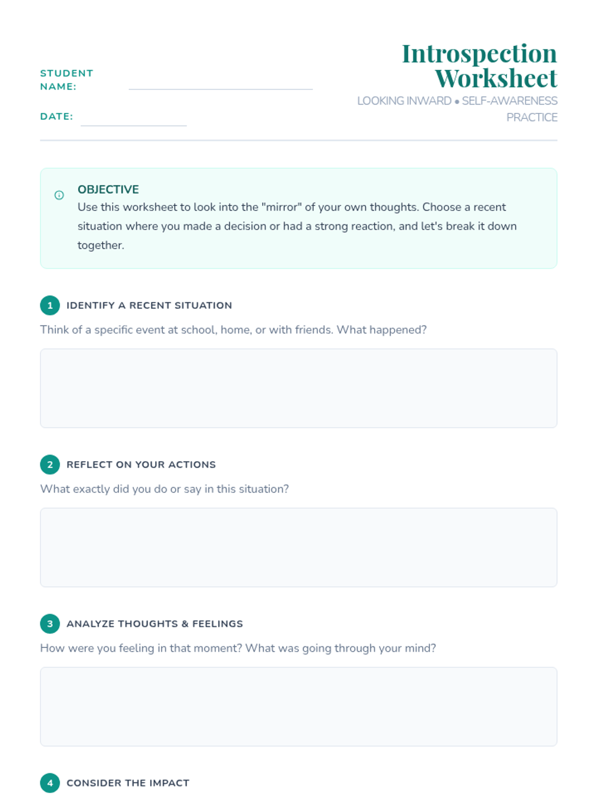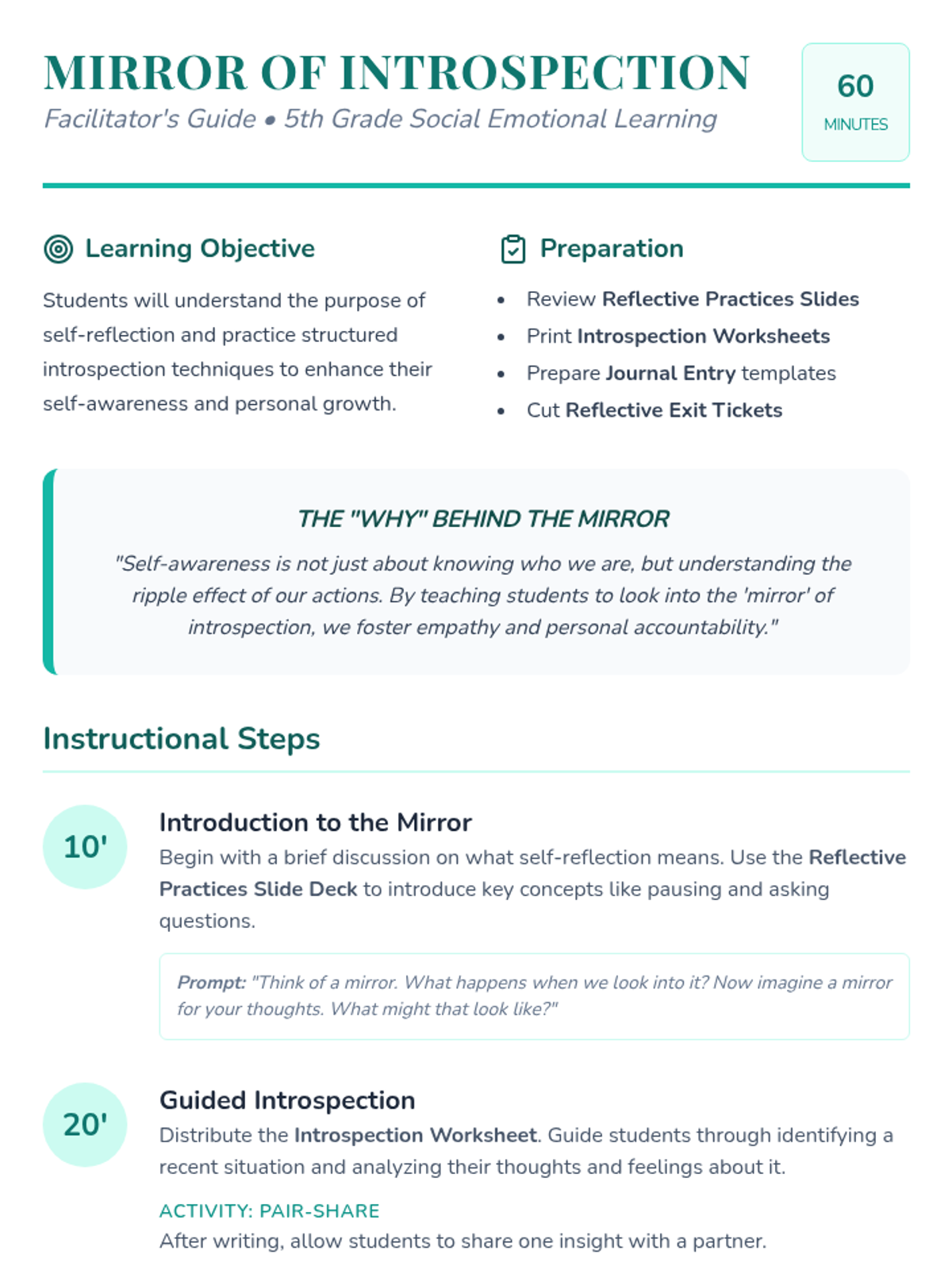 A lesson designed to empower 5th-grade students to practice self-reflection, understand the impact of their actions, and cultivate a habit of self-awareness.