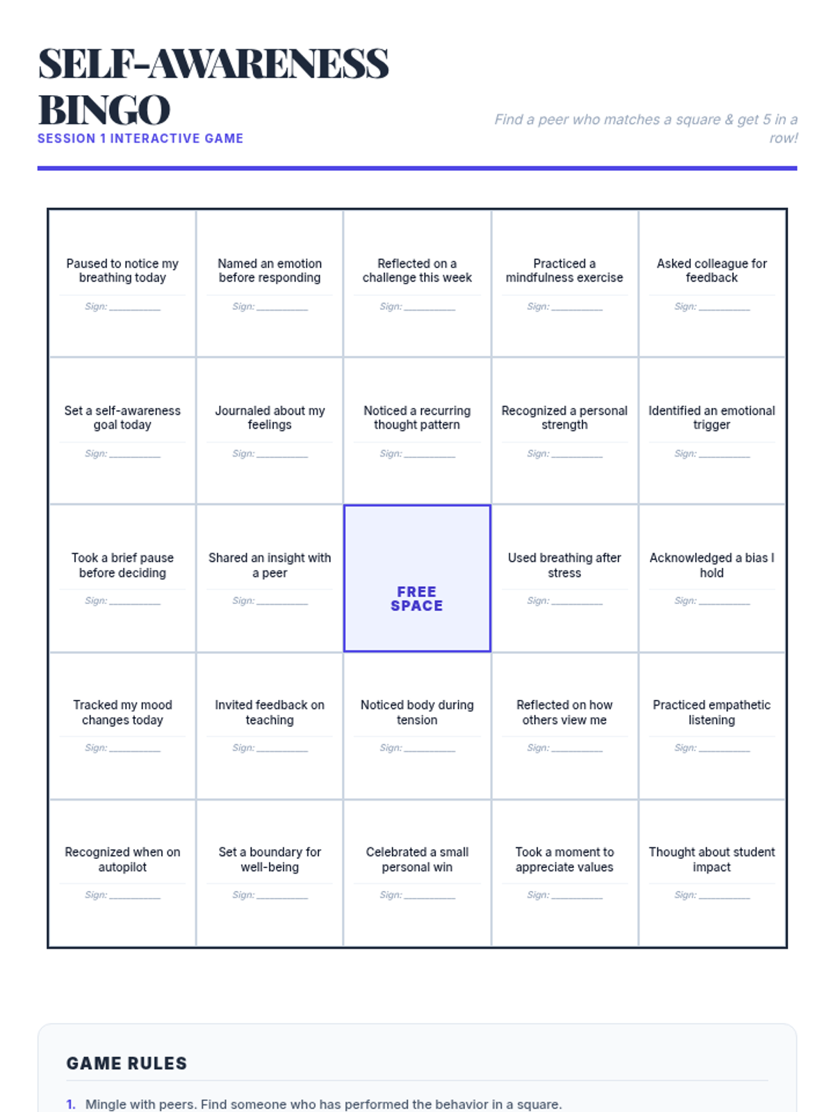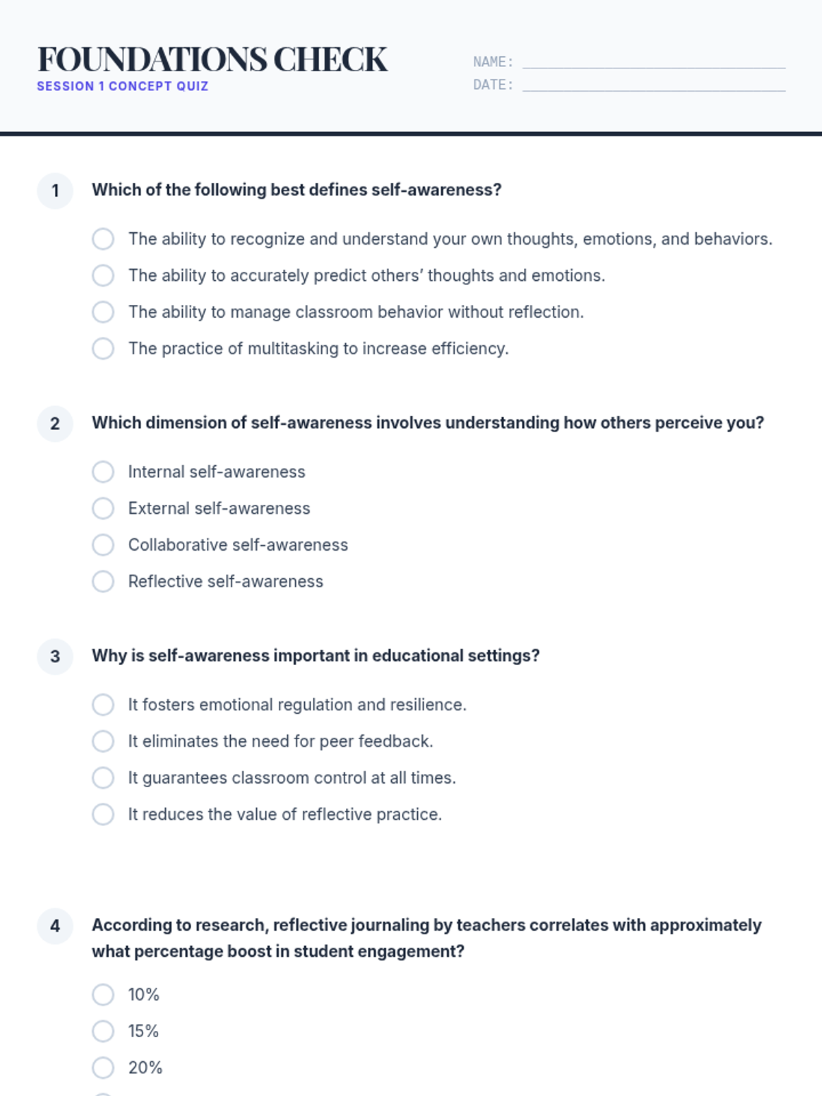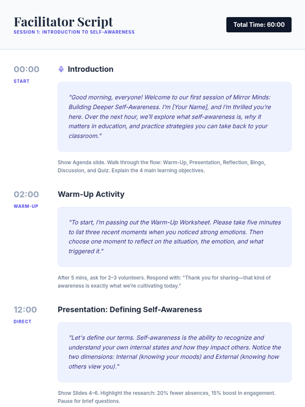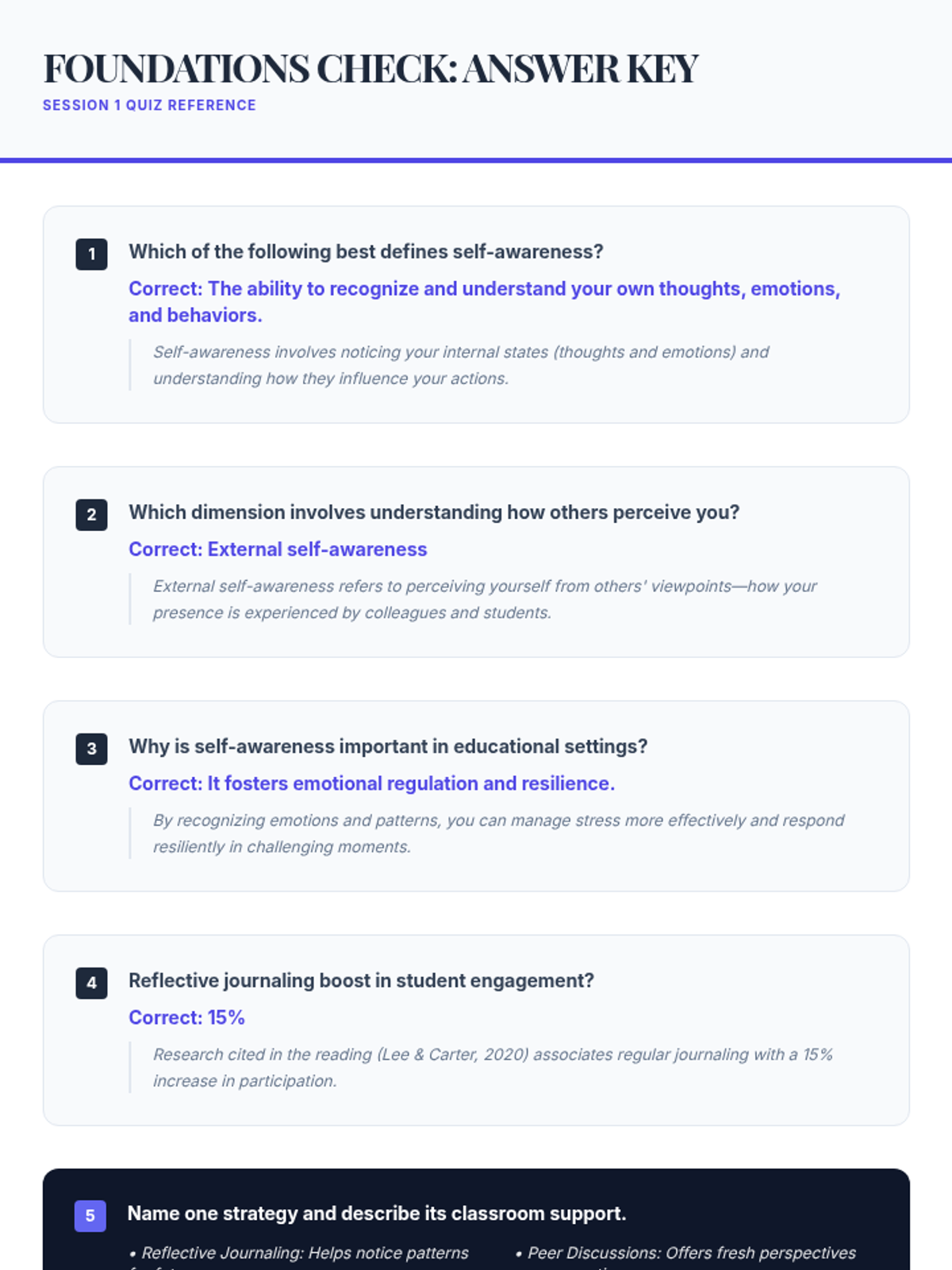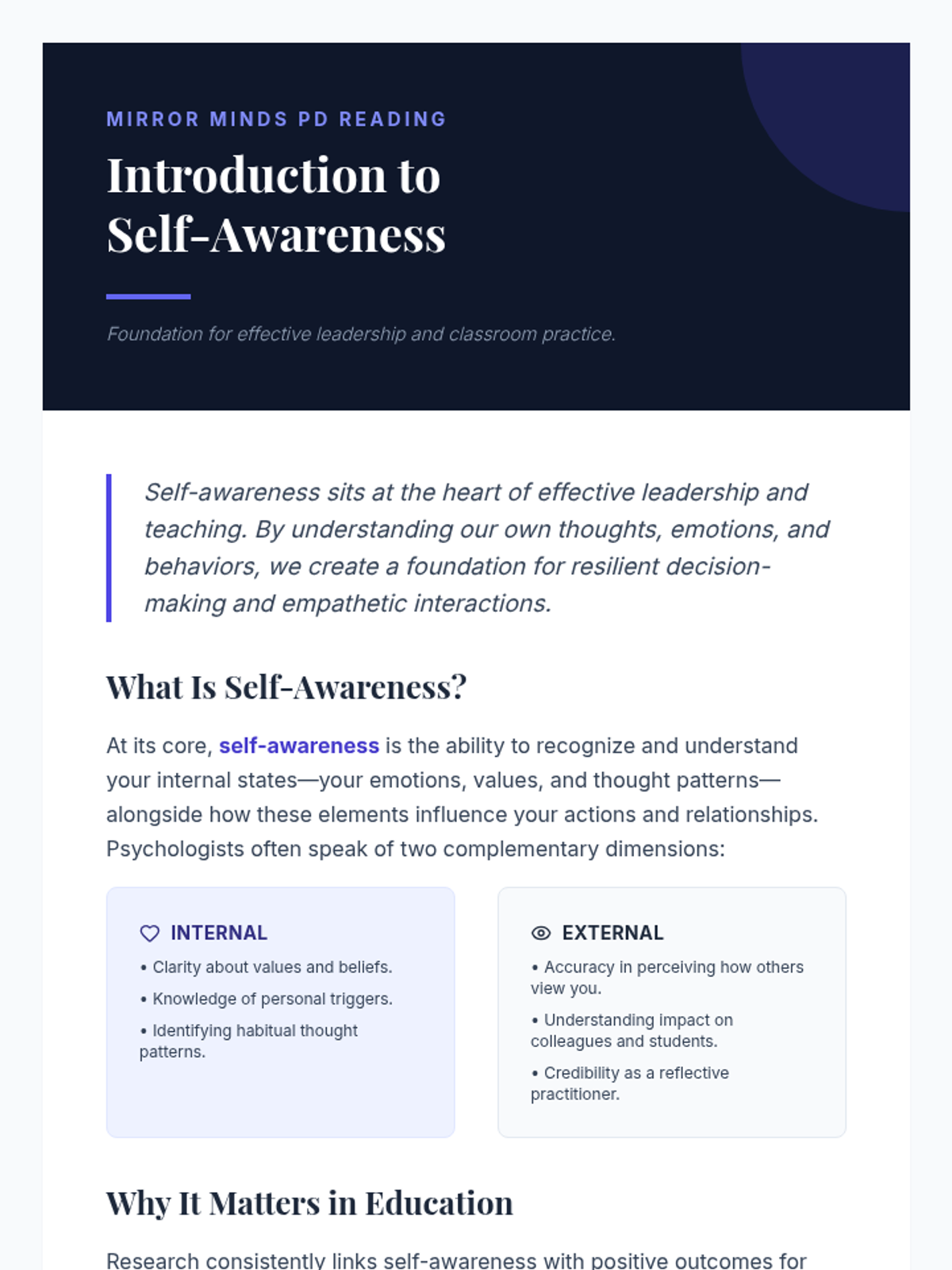 This professional development session introduces educators to the concept of self-awareness, exploring personal thoughts, emotions, and triggers through interactive reflections and group activities. it serves as the foundation for the Mirror Minds five-session series.