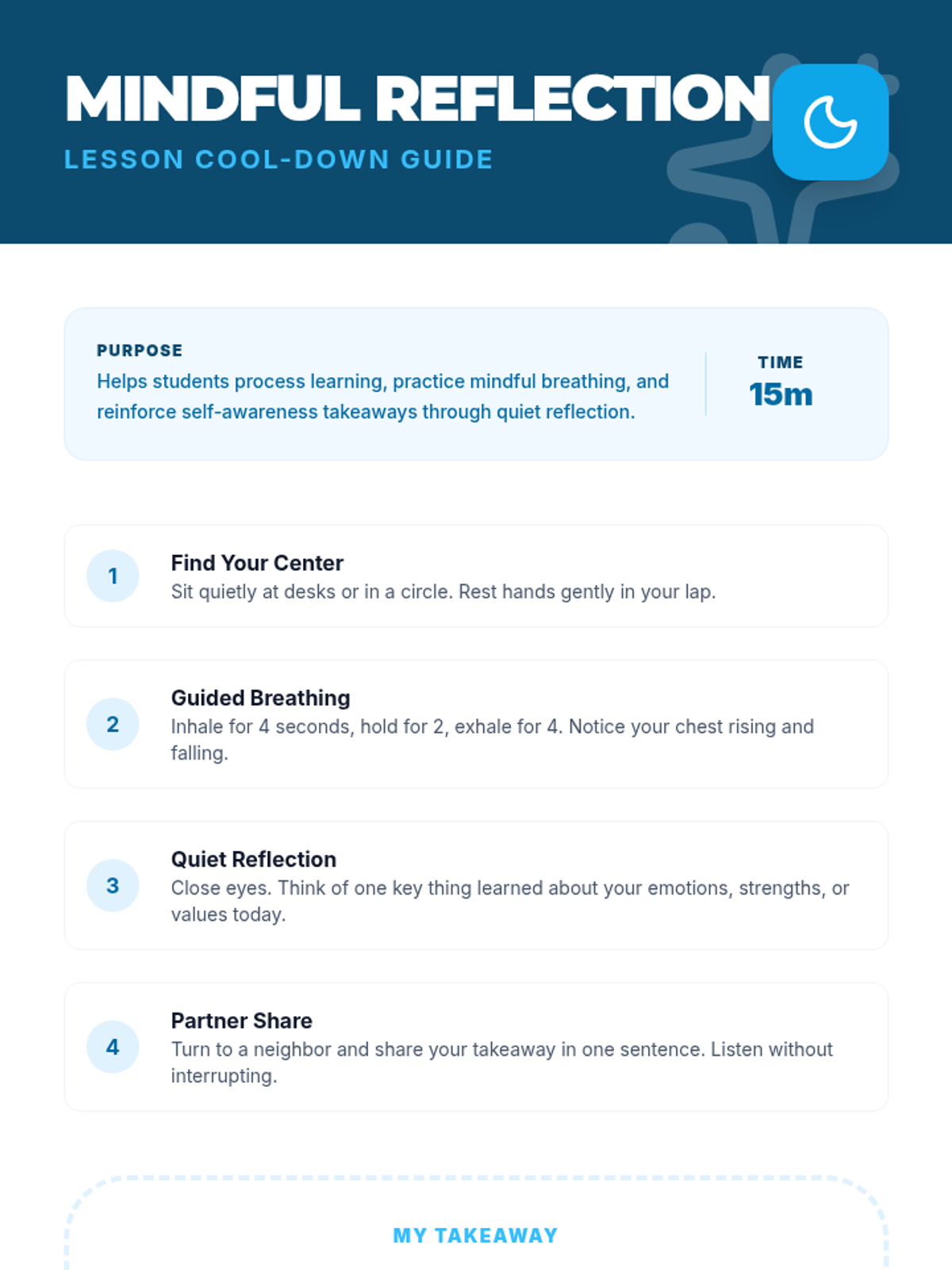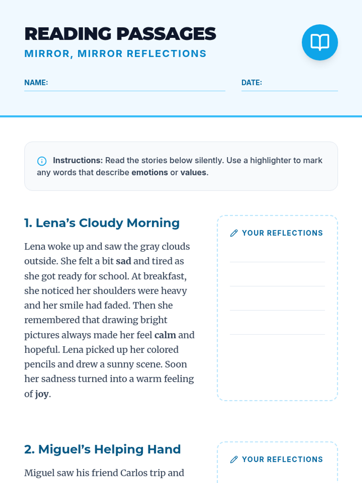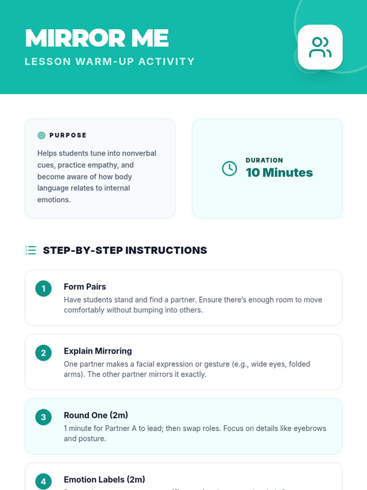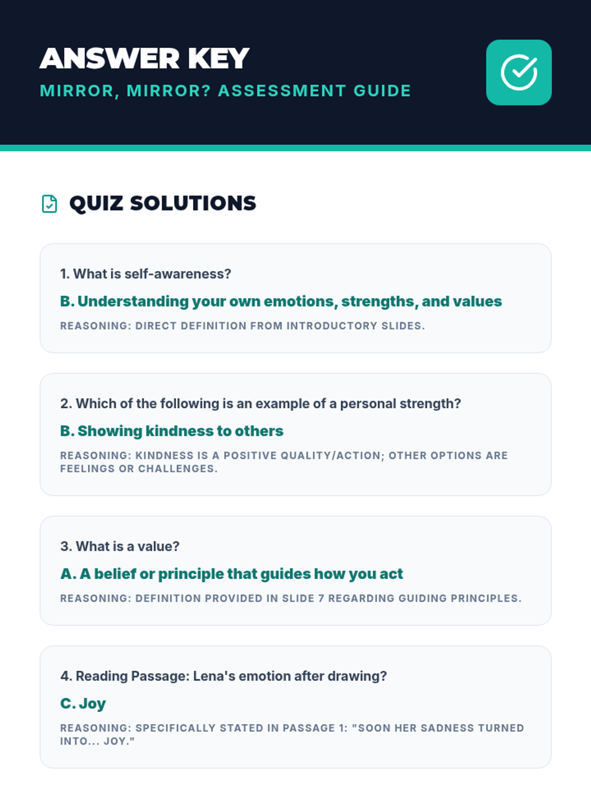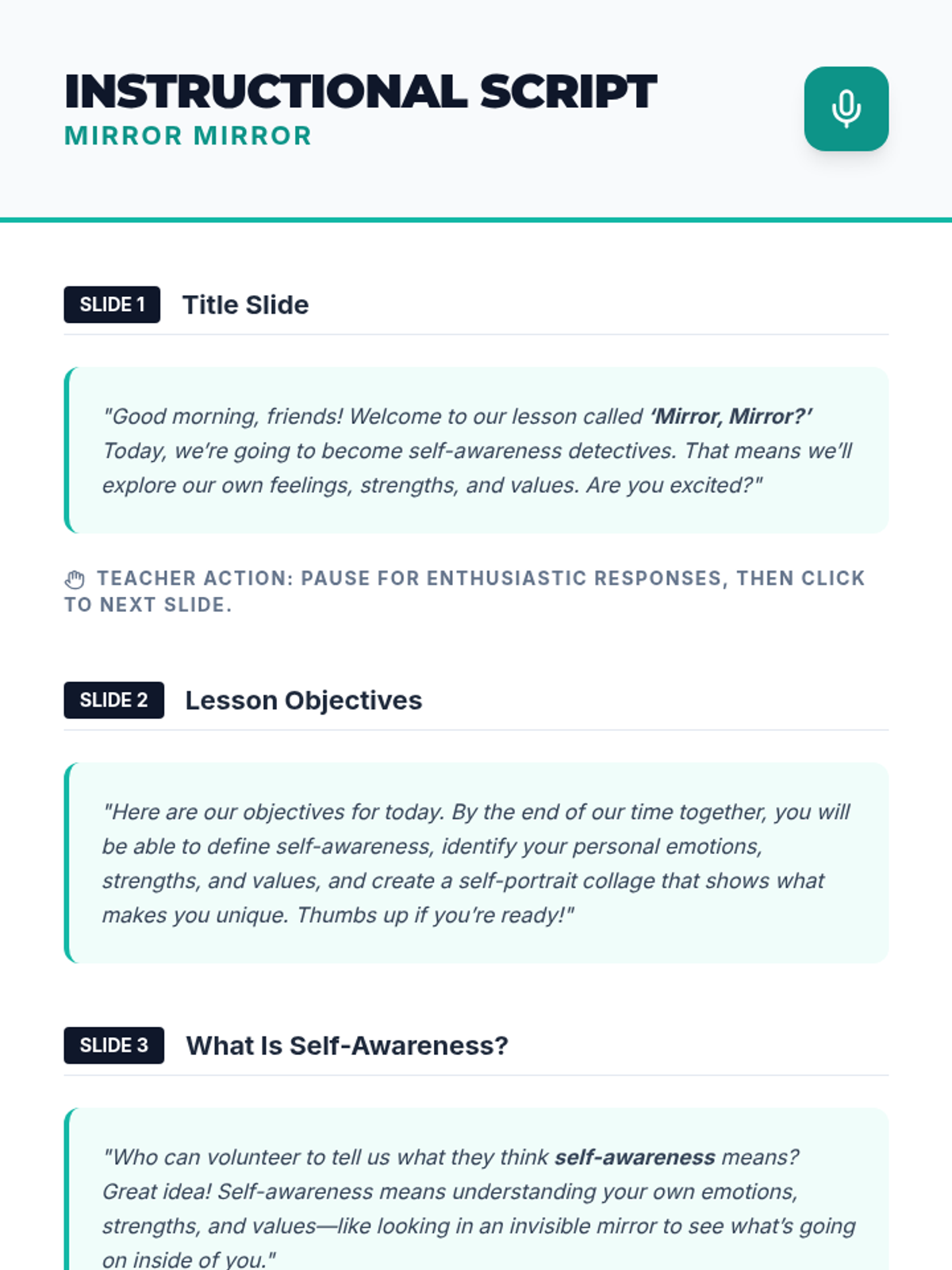 A 3-hour elementary lesson exploring self-awareness through interactive activities, reflections, and a creative collage project. Students will identify their emotions, strengths, and values to build emotional intelligence.
