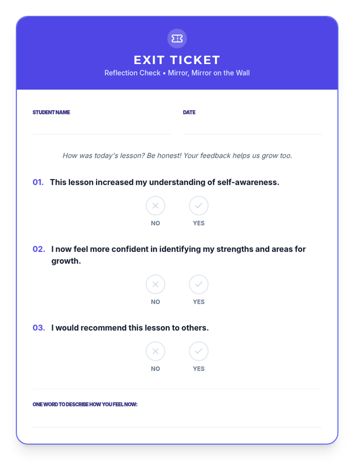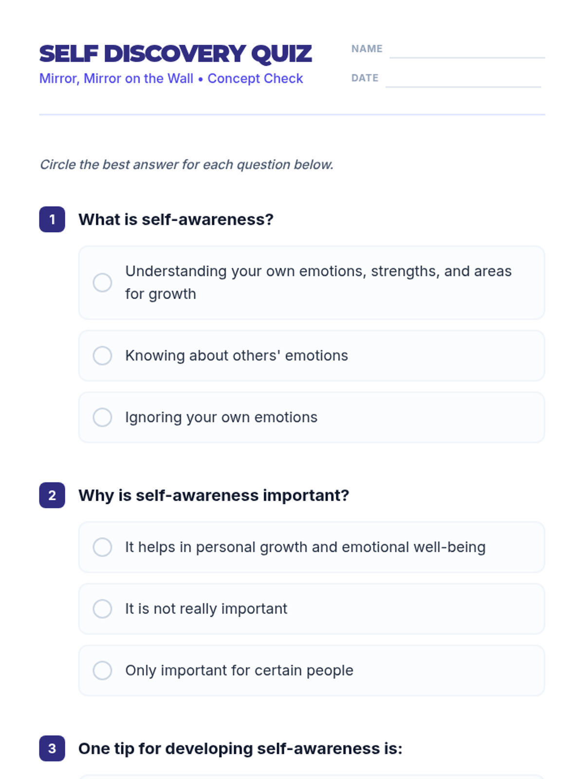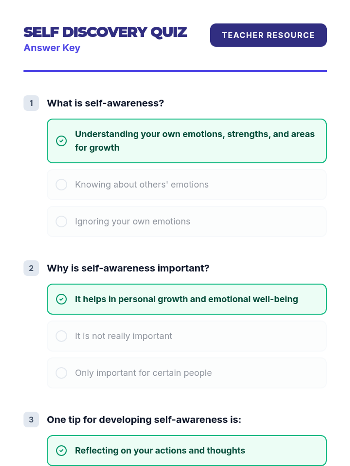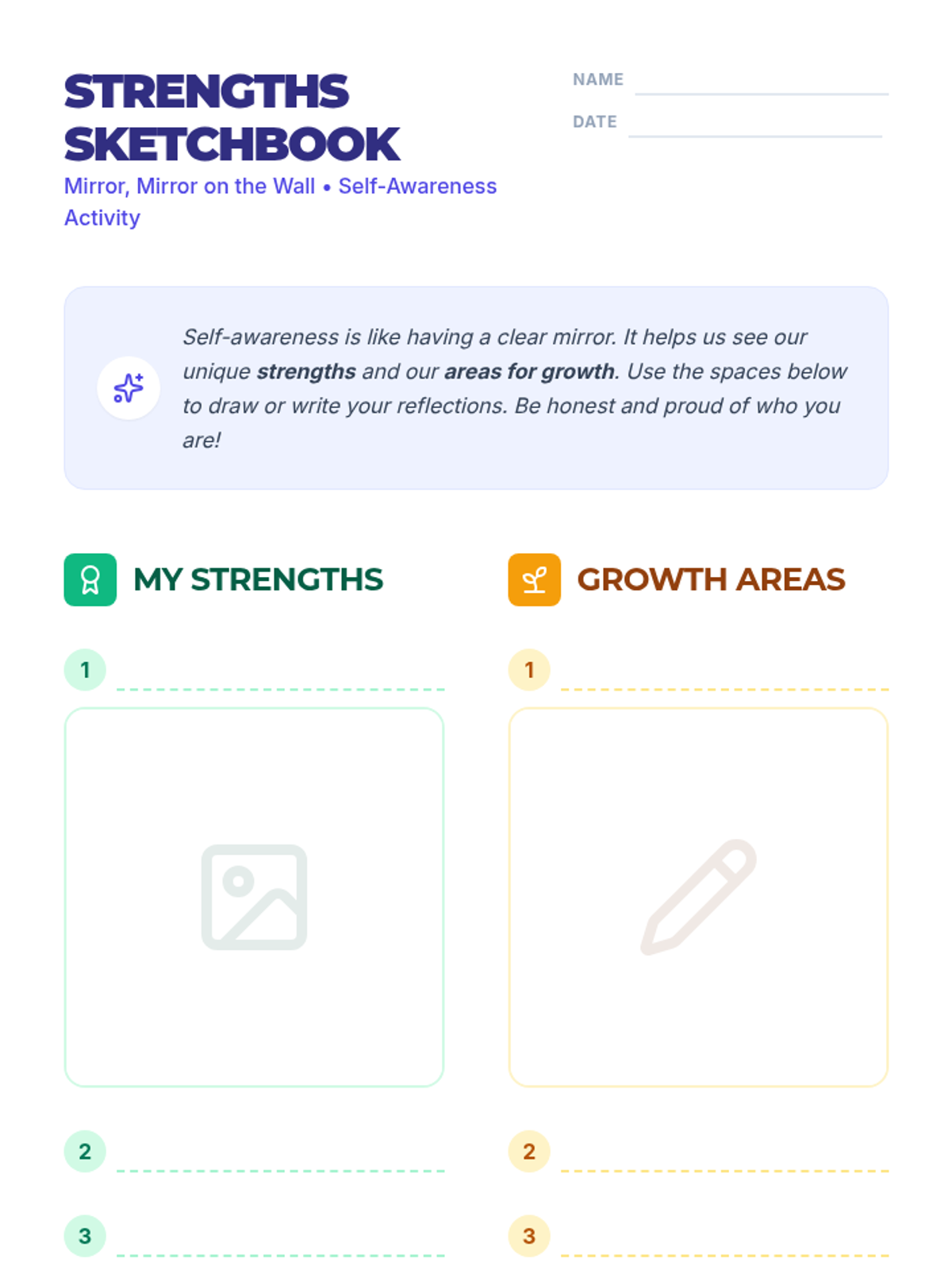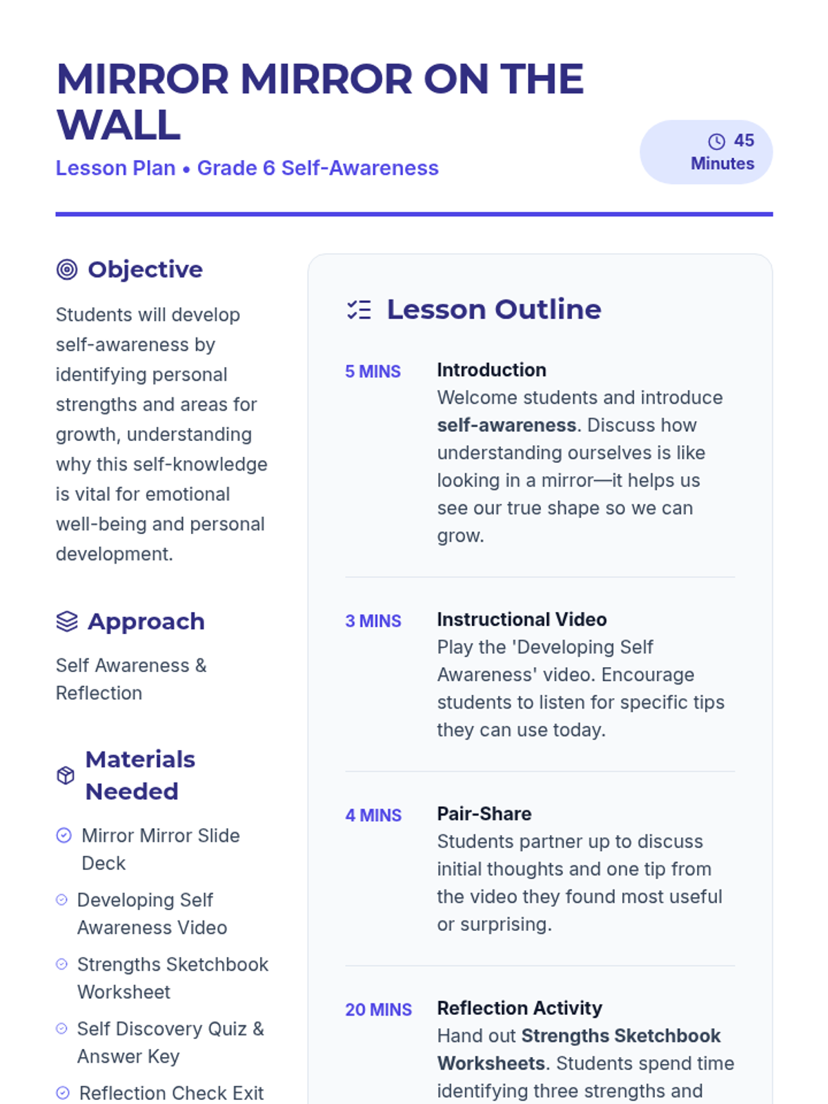 A 45-minute lesson for Grade 6 students to develop self-awareness by identifying personal strengths and areas for growth through video, reflection, and discussion.