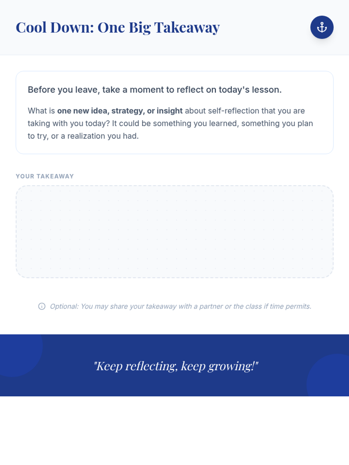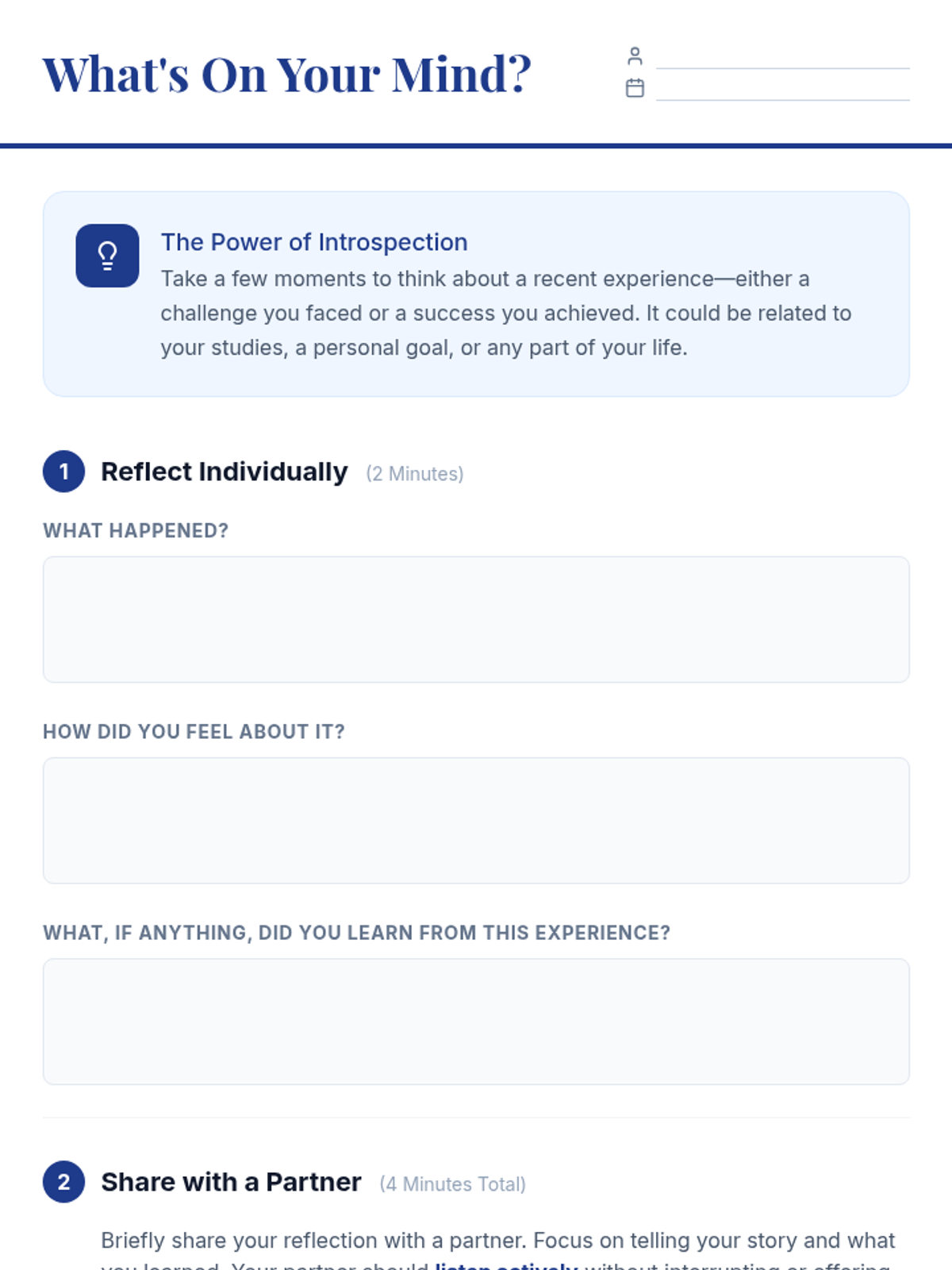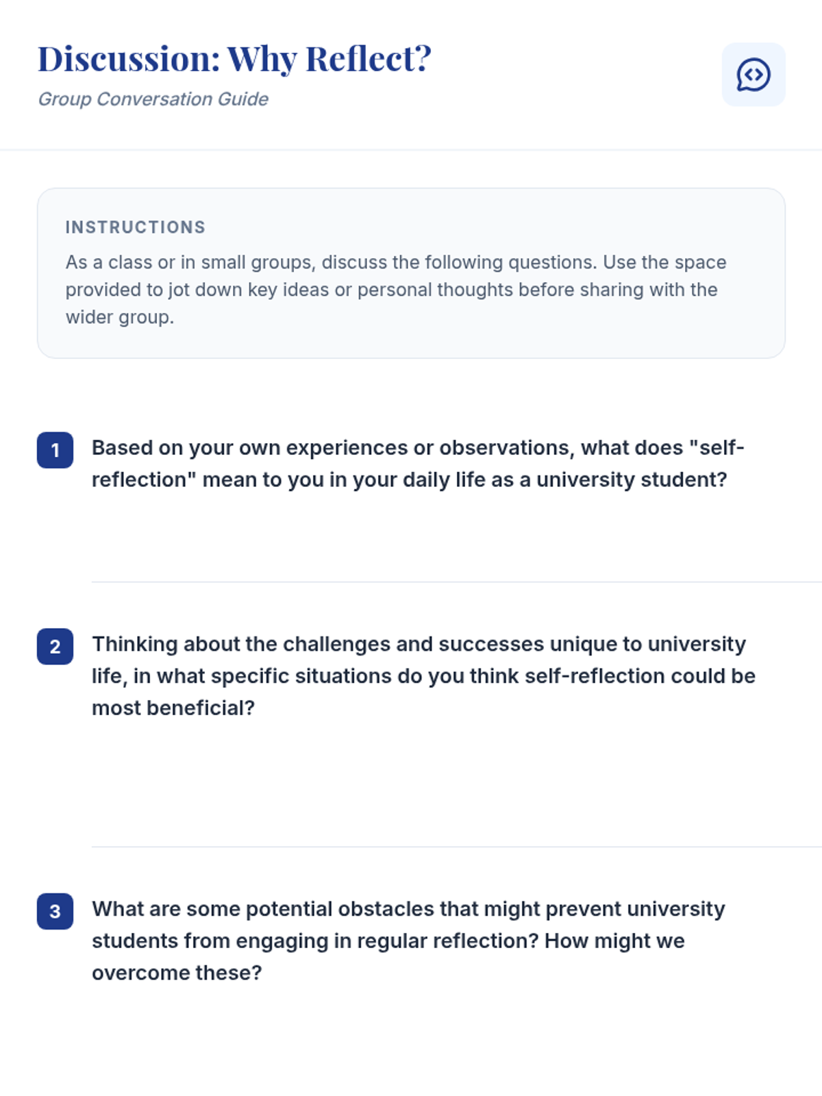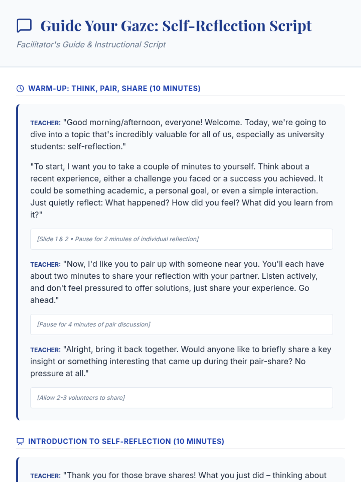A 60-minute lesson for university students focusing on the definition, benefits, and practical application of self-reflection for academic and personal growth.