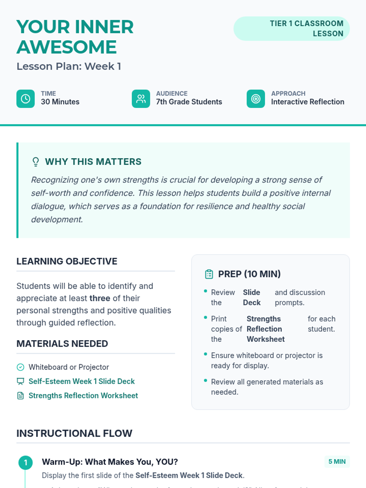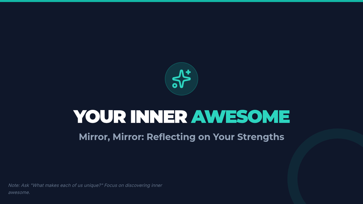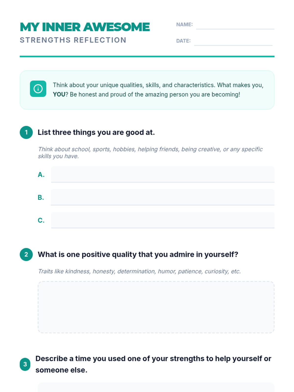 Students identify and appreciate their personal strengths and positive qualities to build a positive internal dialogue and self-worth.