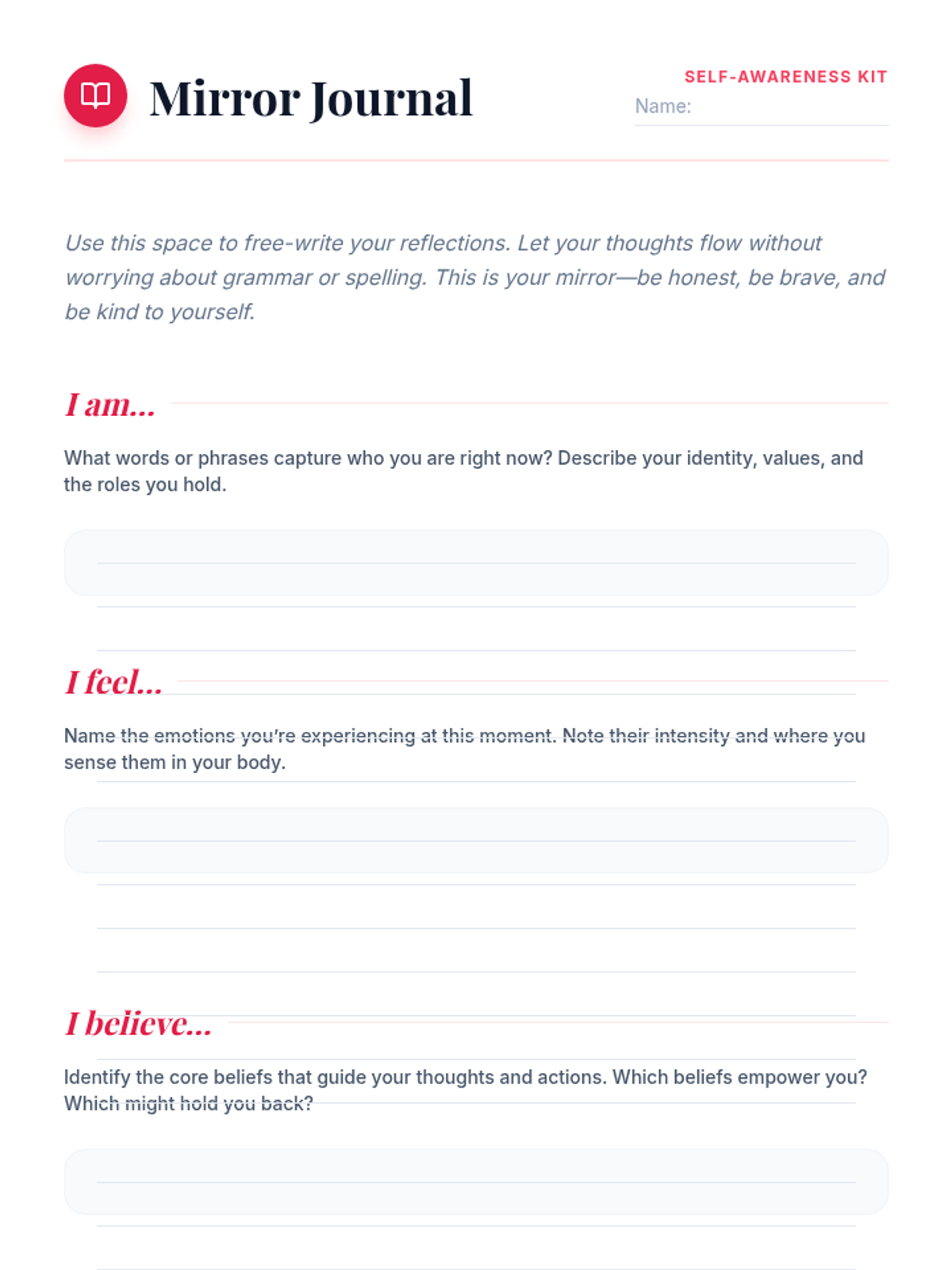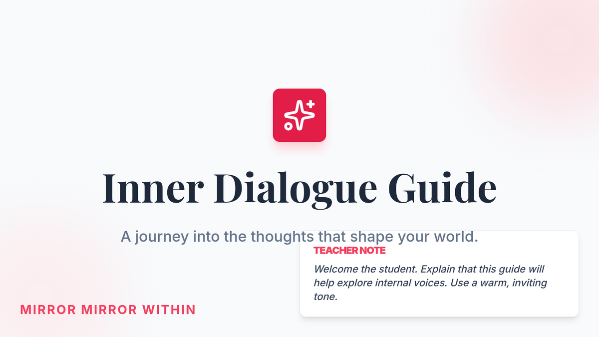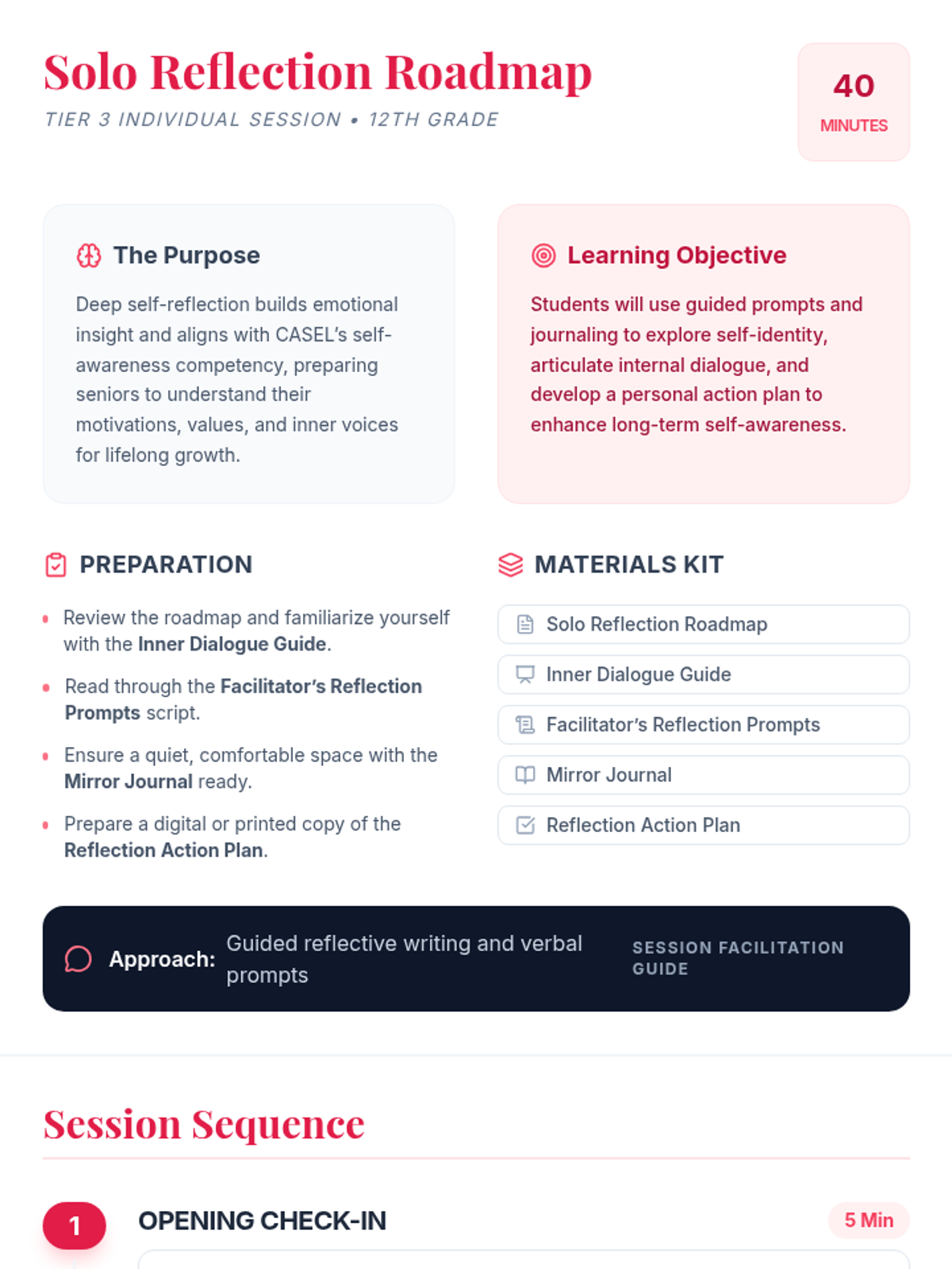 A personalized Tier 3 session for 12th-grade students focusing on self-identity and internal dialogue. This session uses guided journaling and reflective prompts to foster deep self-awareness and emotional insight.