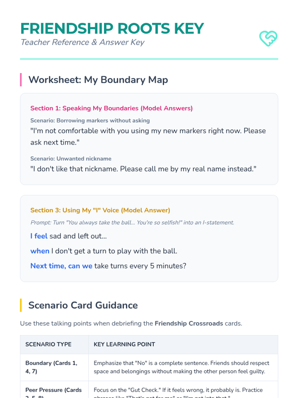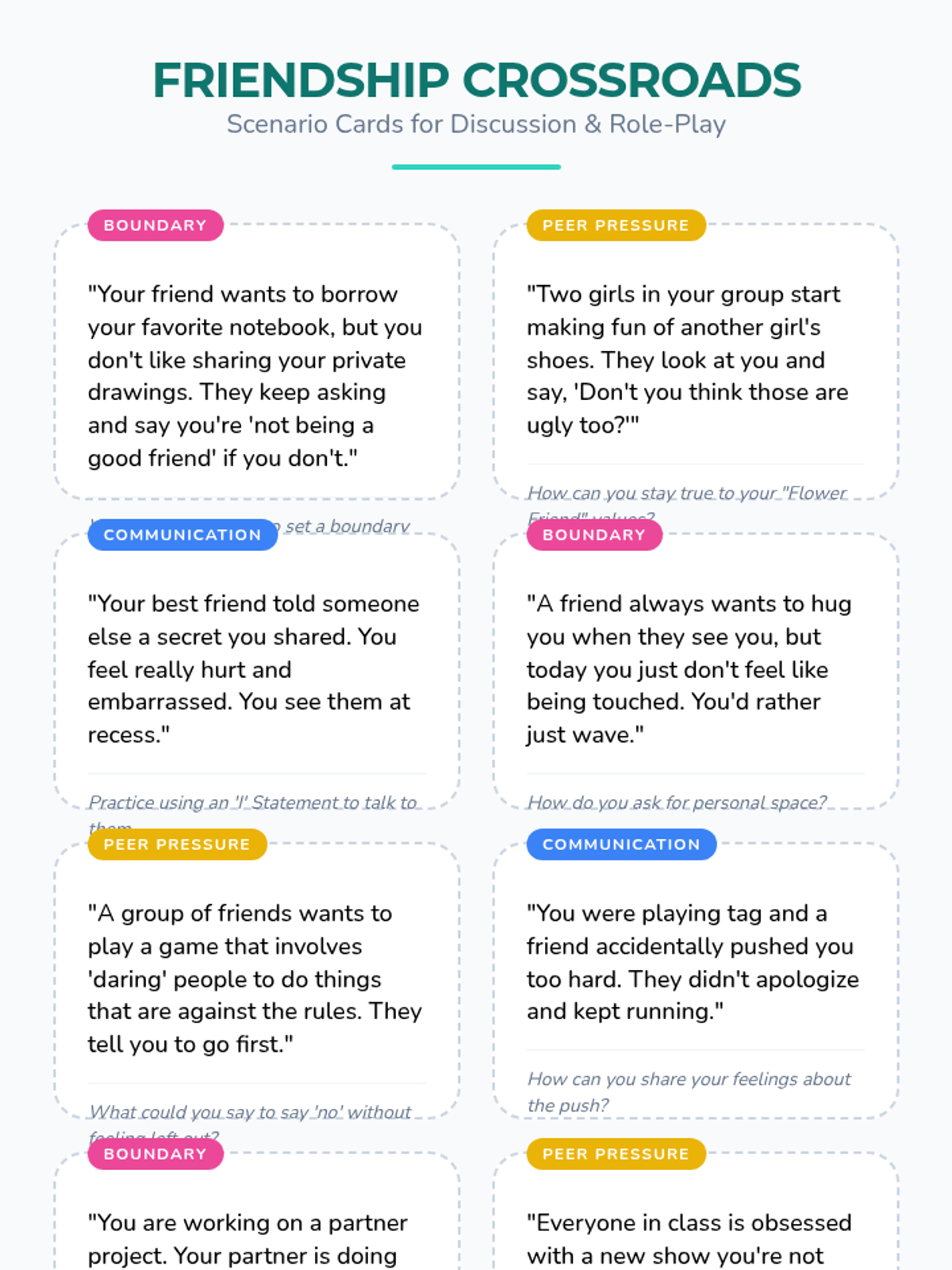 Explores empathy and kindness as the 'glue' of friendship, with activities centered on perspective-taking and supportive actions.