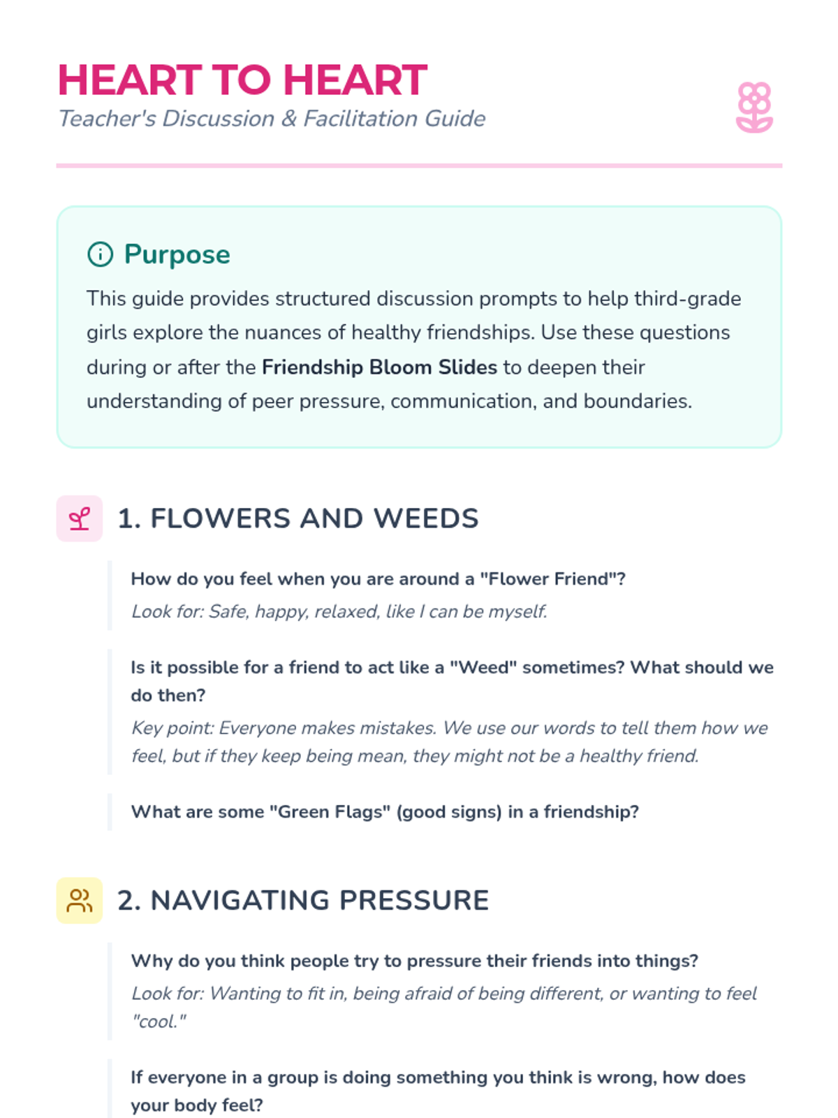 A lesson focused on helping third-grade girls identify healthy and unhealthy friendship traits, with a specific focus on communication, peer pressure, and boundaries.