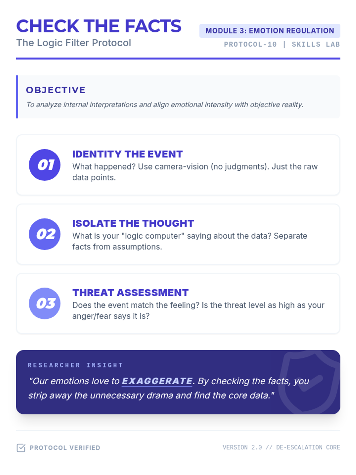 A lesson for grades 3-5 to teach the 'Check the Facts' skill. Students learn to use a 'Facts Filter' to determine if their emotional reaction matches the reality of a situation.