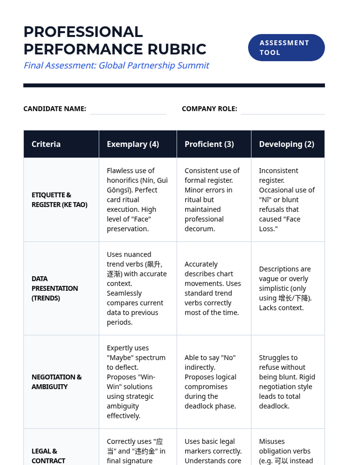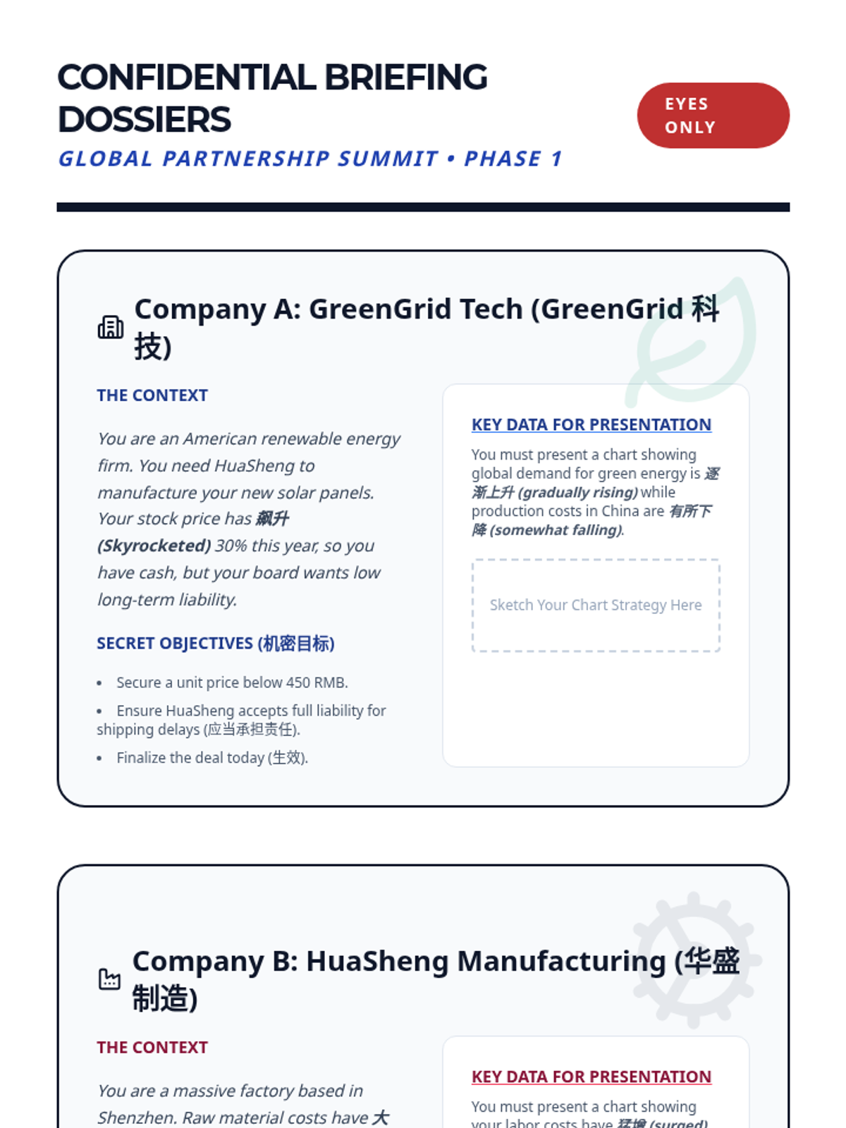 As a final assessment, students participate in a multi-stage negotiation simulation involving competing companies. They must utilize all learned vocabulary—from greetings to contract terms—to finalize a partnership.
