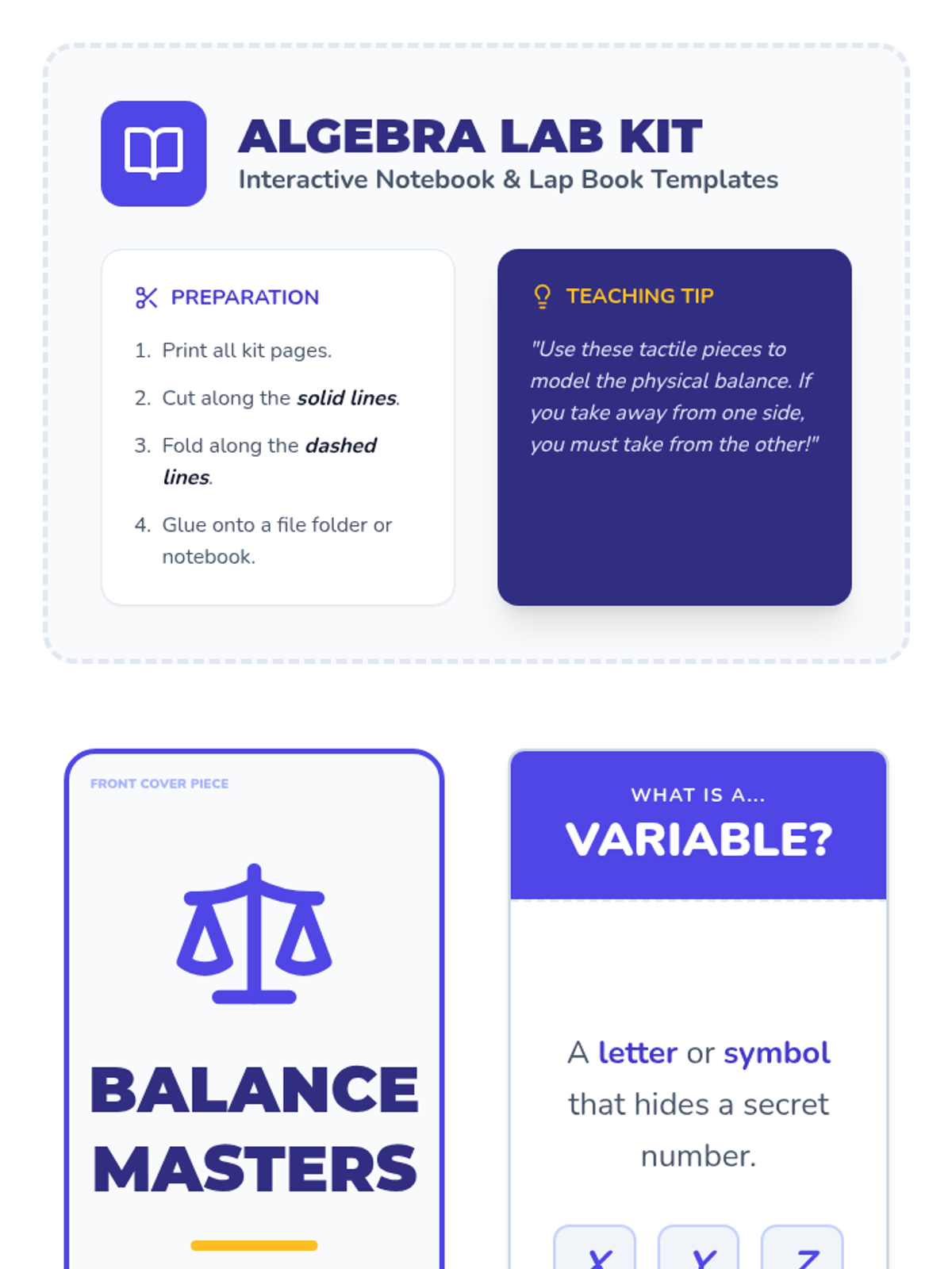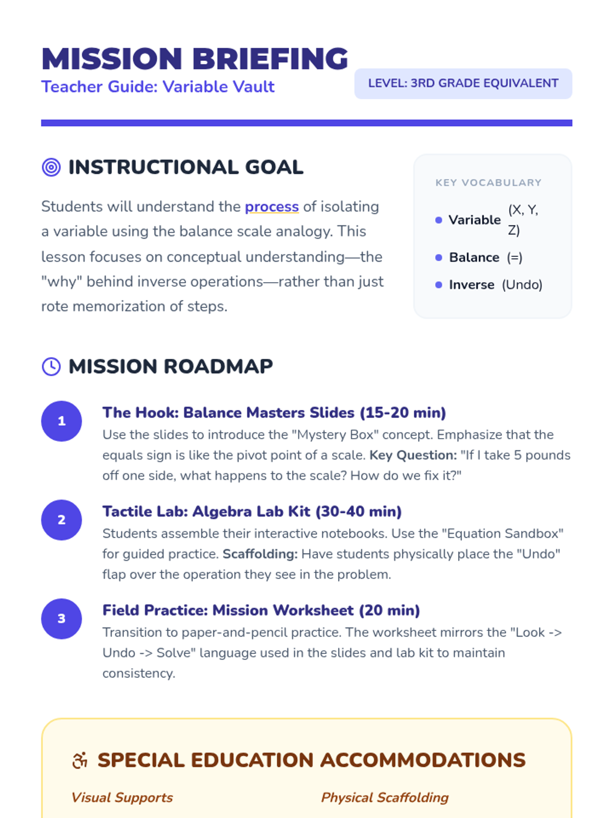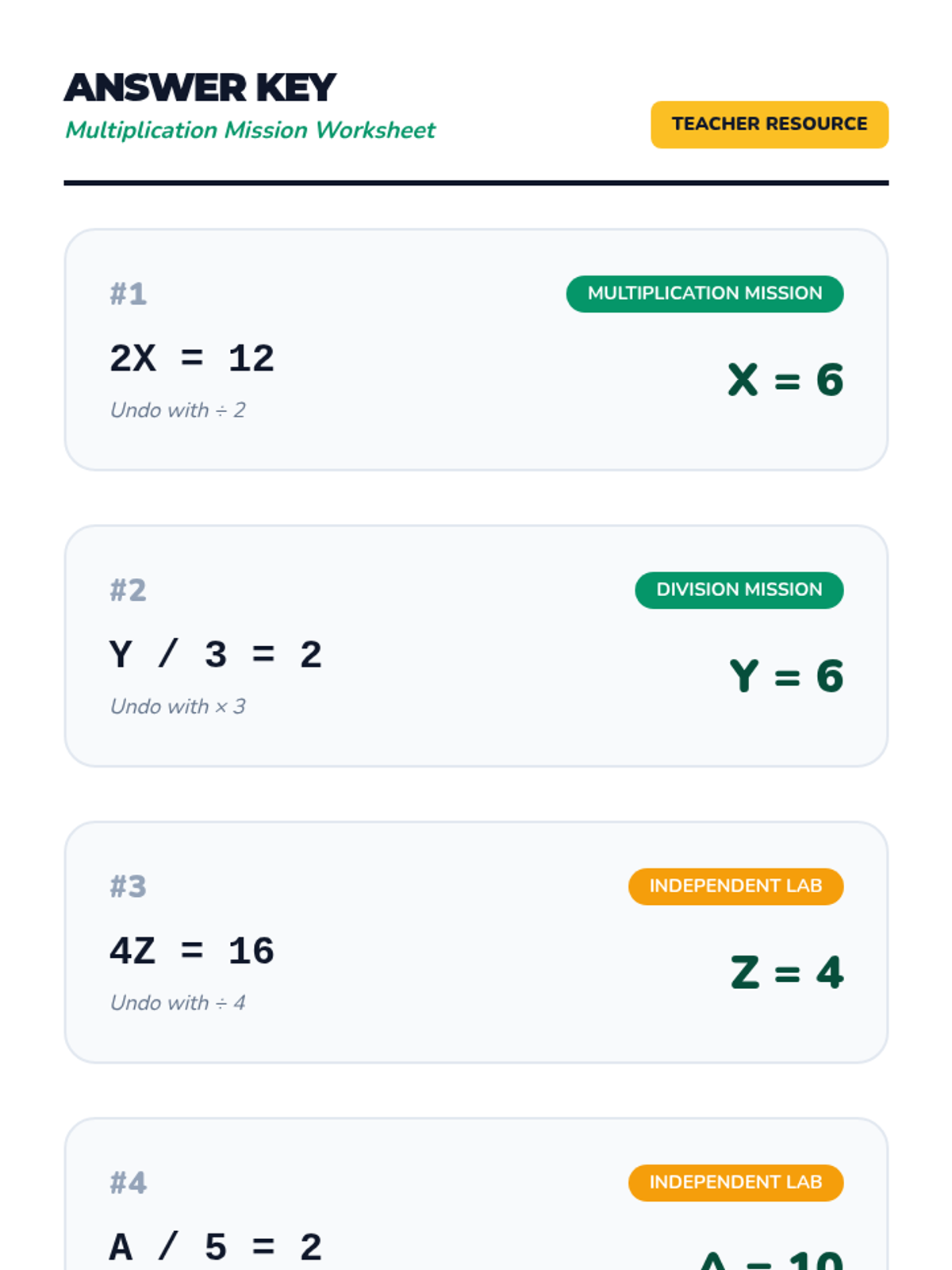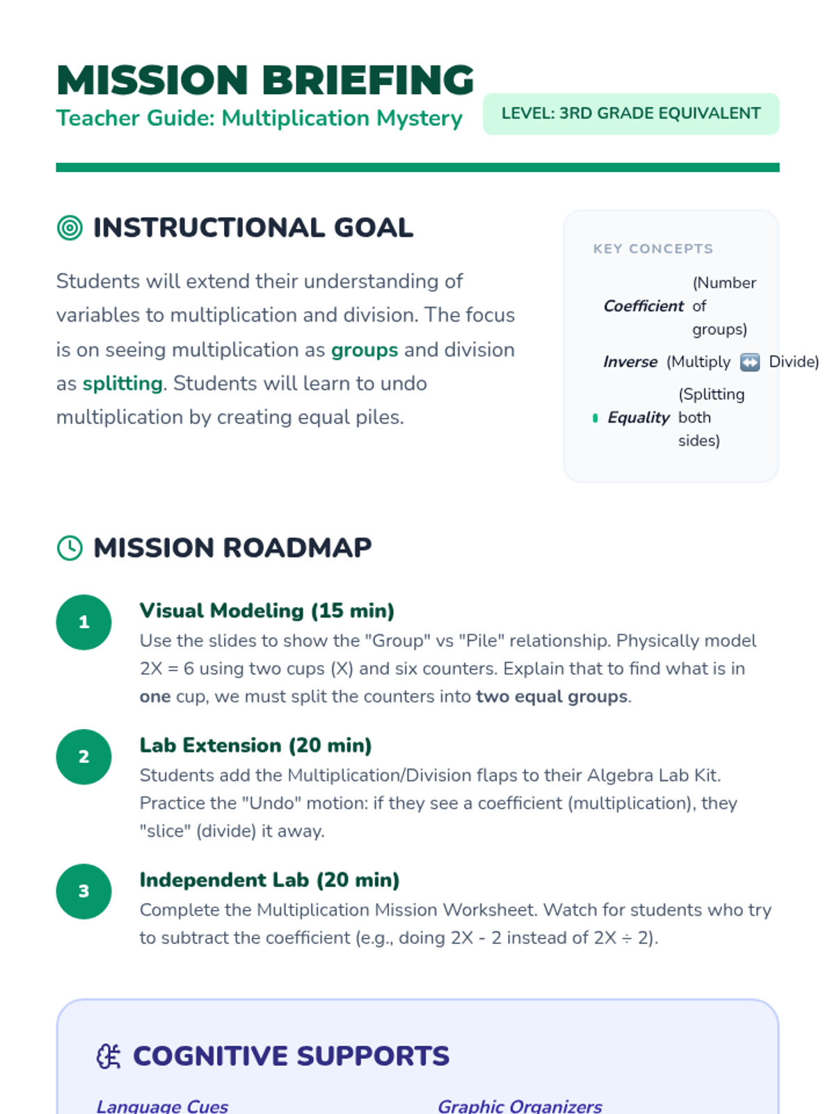 A foundational introduction to basic algebra using the balance scale analogy, specifically designed for students working at a 3rd-grade level. Students will learn about variables and the concept of inverse operations to 'undo' addition and subtraction.
