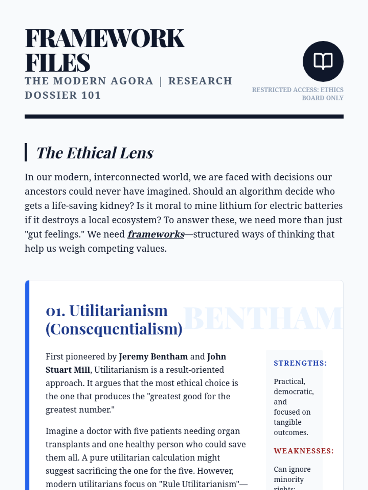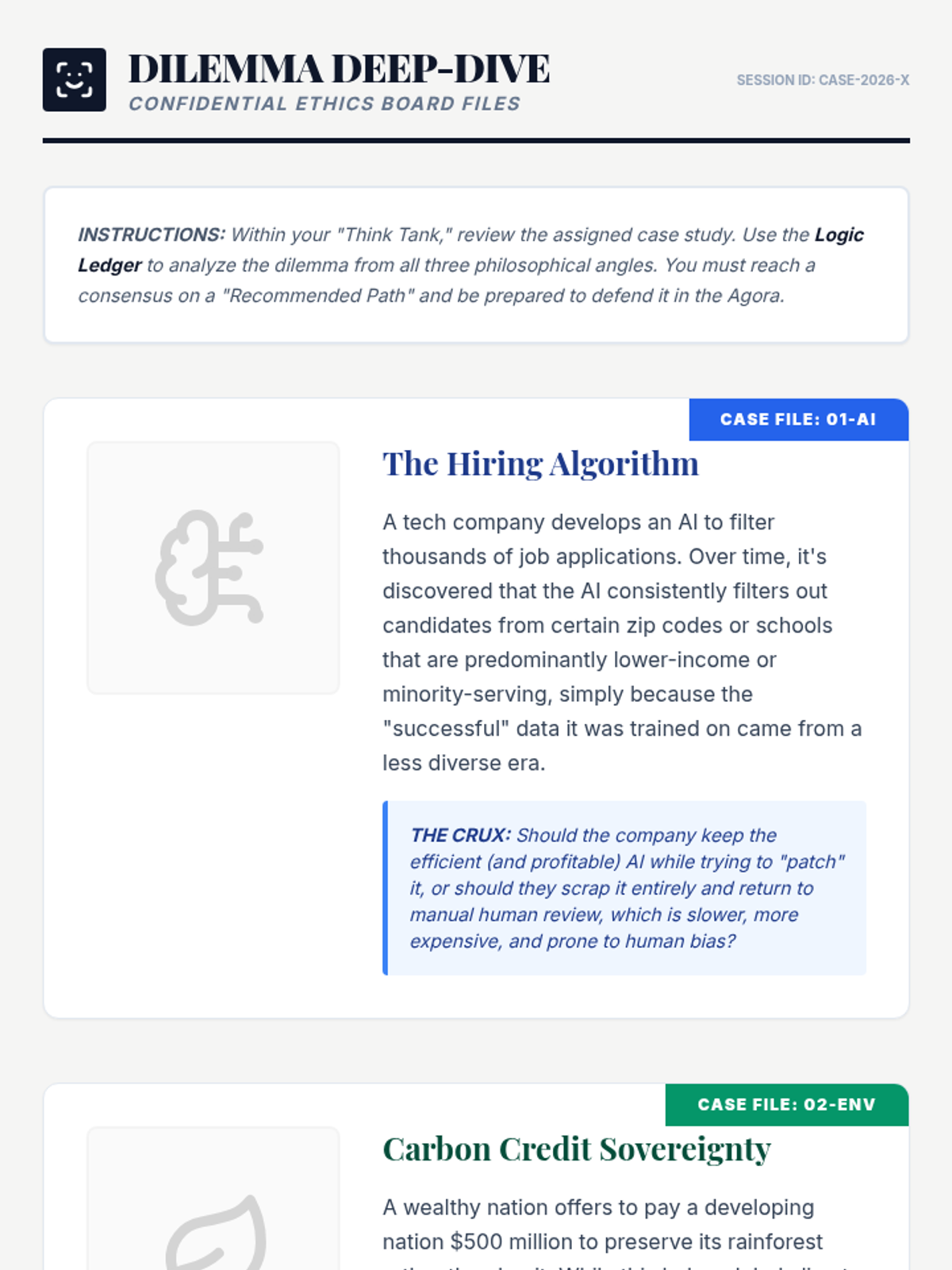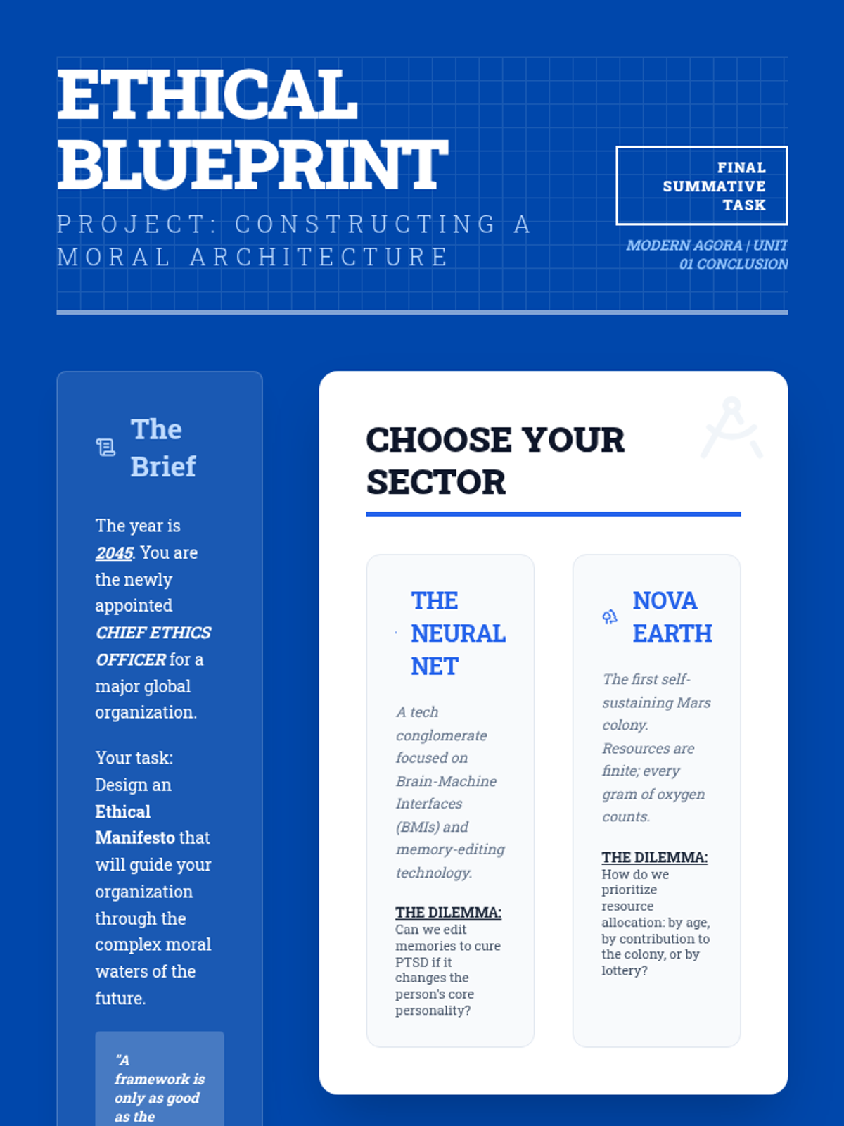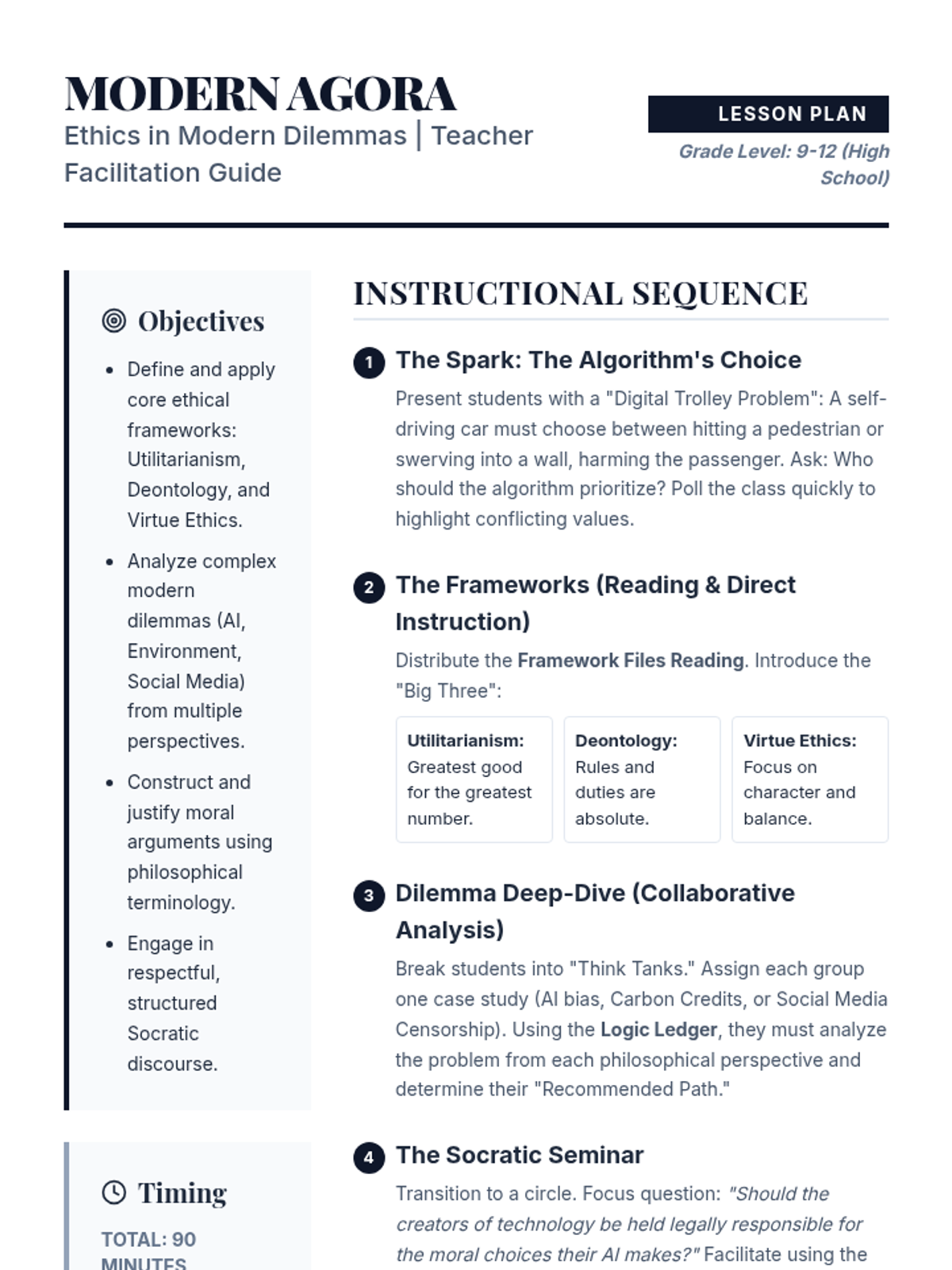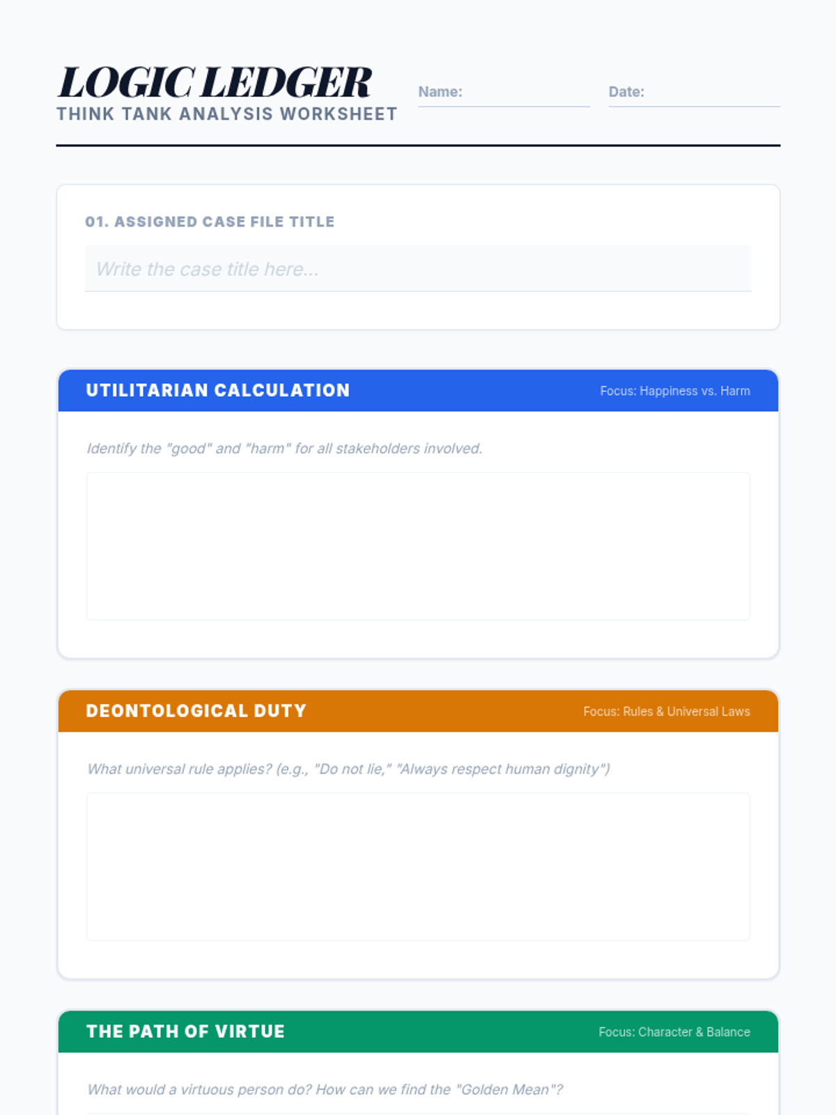 Students explore contemporary ethical dilemmas through the lens of classical and modern philosophical frameworks, developing critical thinking and moral reasoning skills.