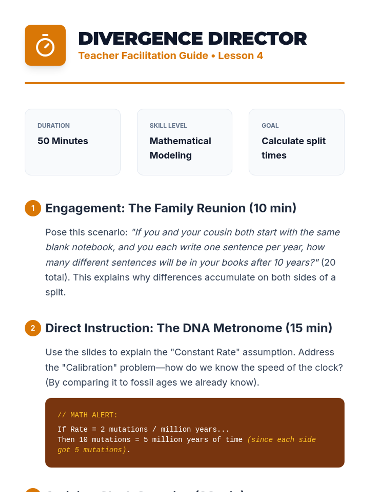 An analysis of mutation rates to estimate when species diverged from common ancestors, adding a chronological dimension to evolutionary trees.