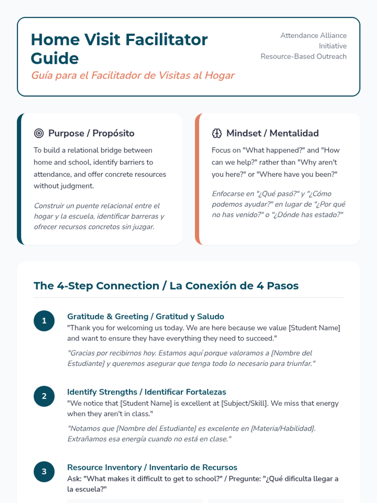 A comprehensive initiative designed to boost middle school attendance through parent partnership, bilingual communication, and clear intervention protocols. This lesson focuses on bridge-building between home and school to address chronic absenteeism.