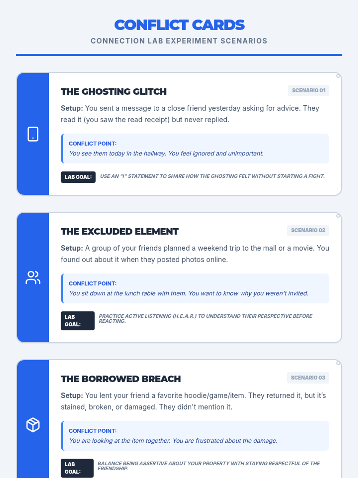 Students learn to navigate interpersonal challenges by distinguishing between communication styles, practicing active listening, and applying de-escalation techniques in realistic high school and workplace scenarios.