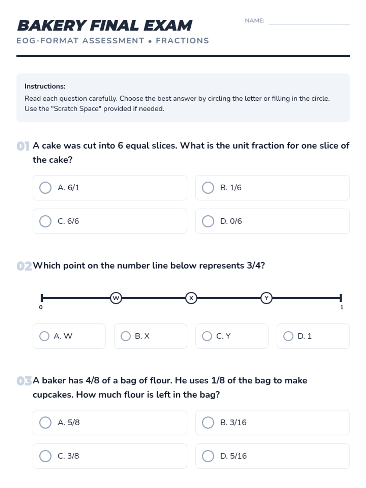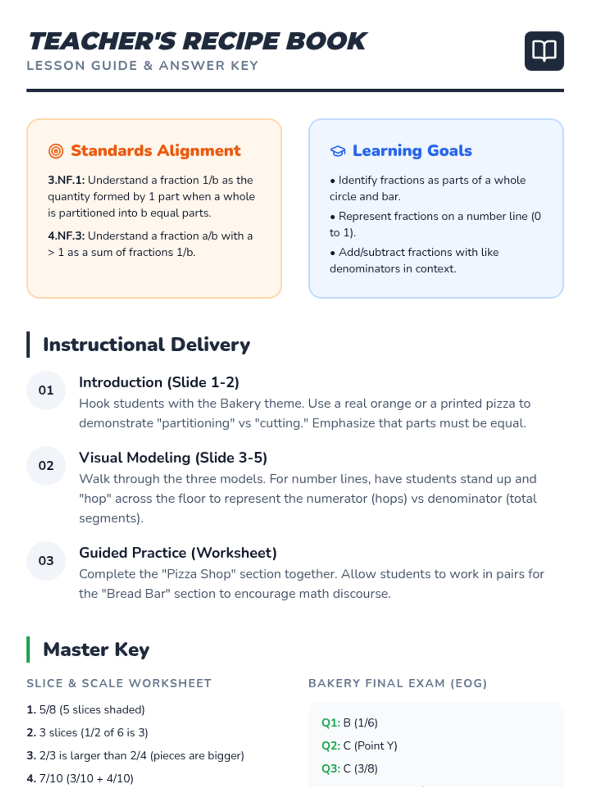 This lesson focuses on mastering fractions through visual models, number lines, and comparison strategies, specifically aligned with NC Grade 3 standards. Students will progress from highly scaffolded identification to independent problem-solving using EOG-style questions.