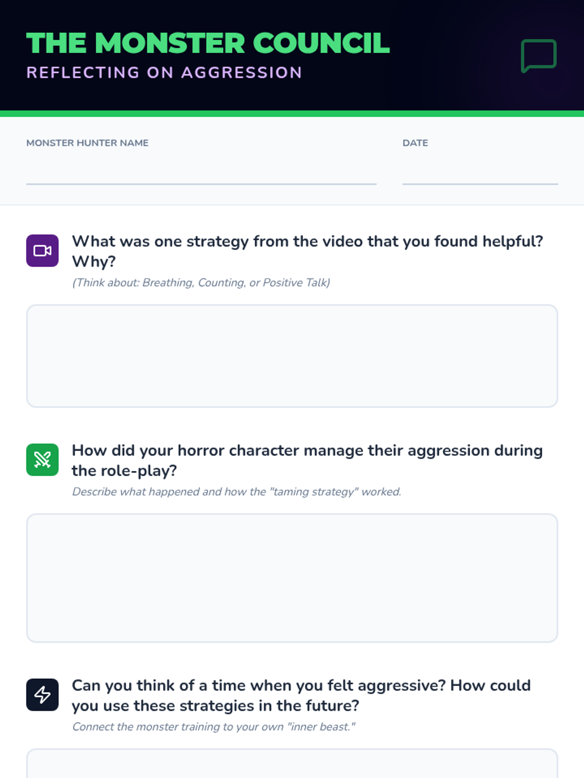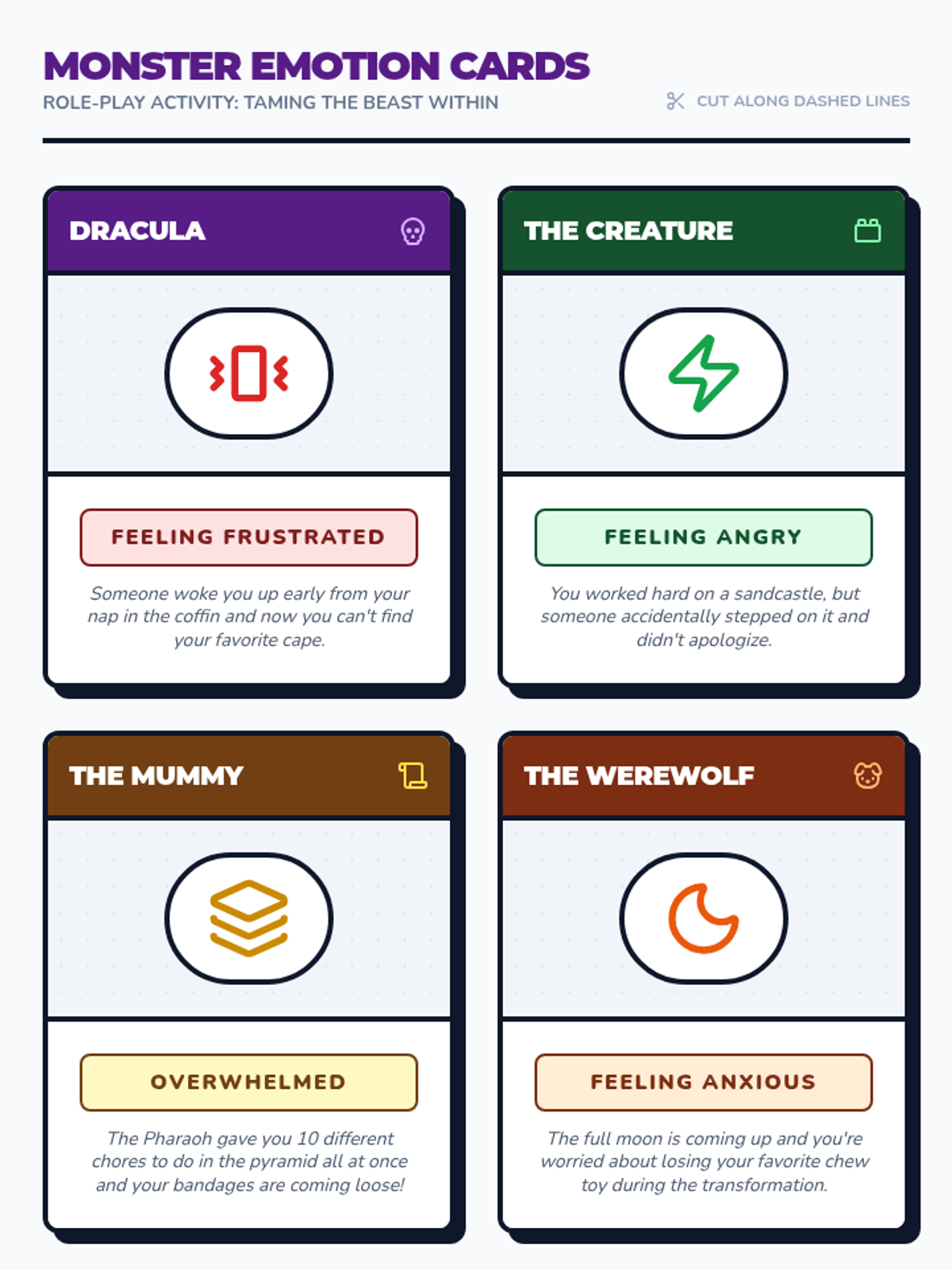 A fun, horror-themed lesson for 5th graders to learn anger management and emotional regulation strategies using character role-play and restorative discussion.