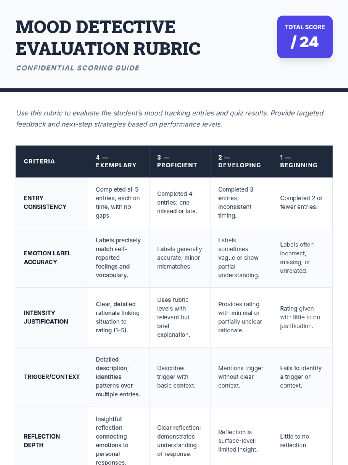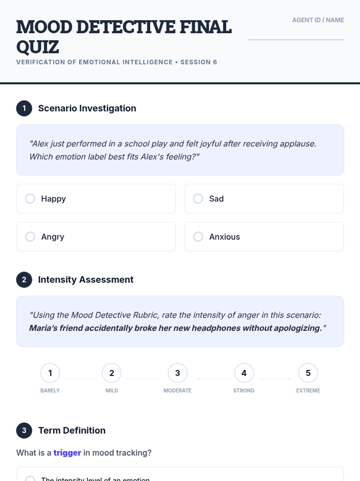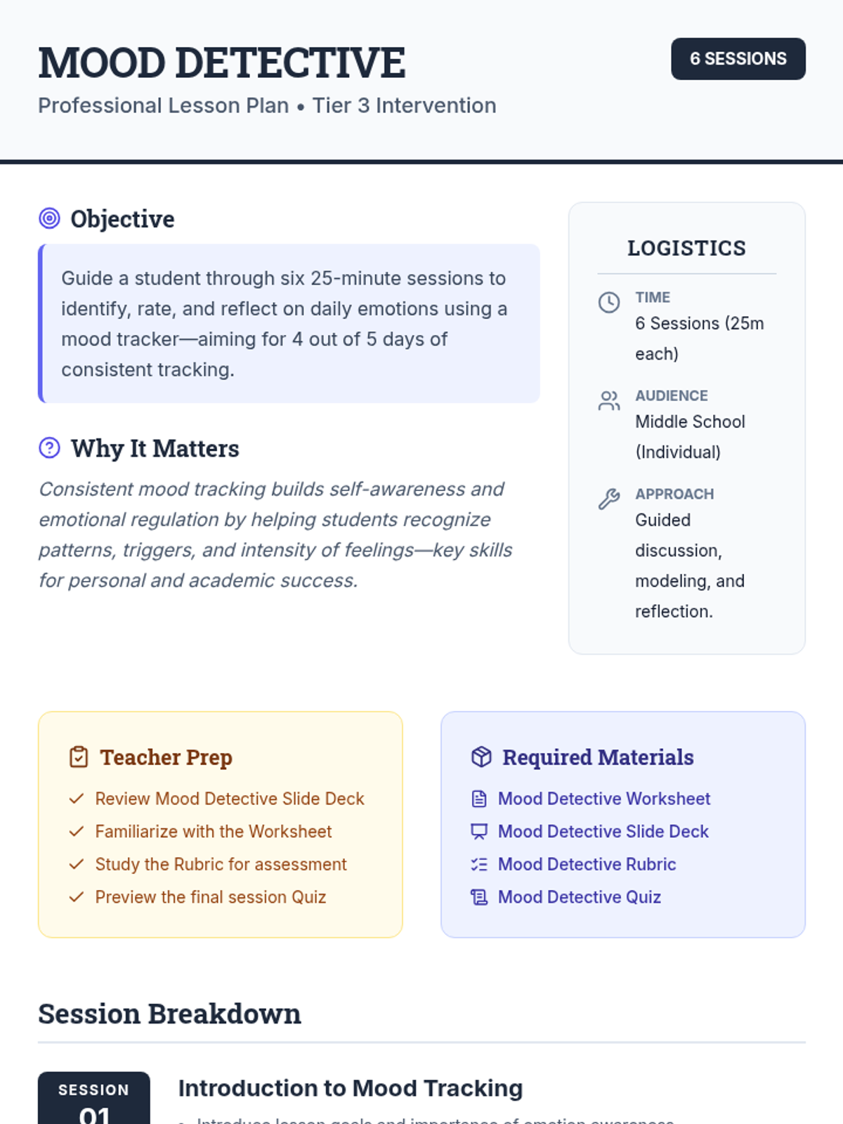 A comprehensive 6-session series guiding students to identify, rate, and reflect on daily emotions to build self-awareness and regulation skills.