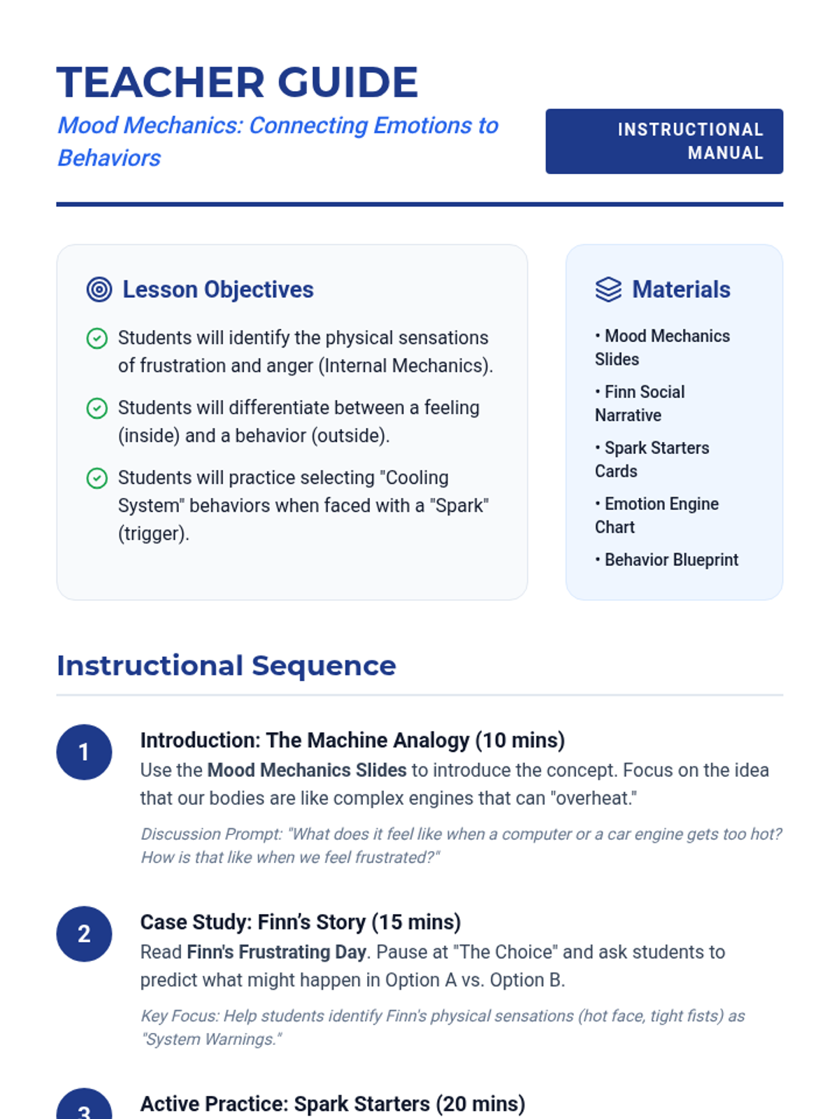 A lesson designed to help students identify the connection between internal feelings of frustration and anger and their external behaviors, providing tools for self-regulation and healthy expression.