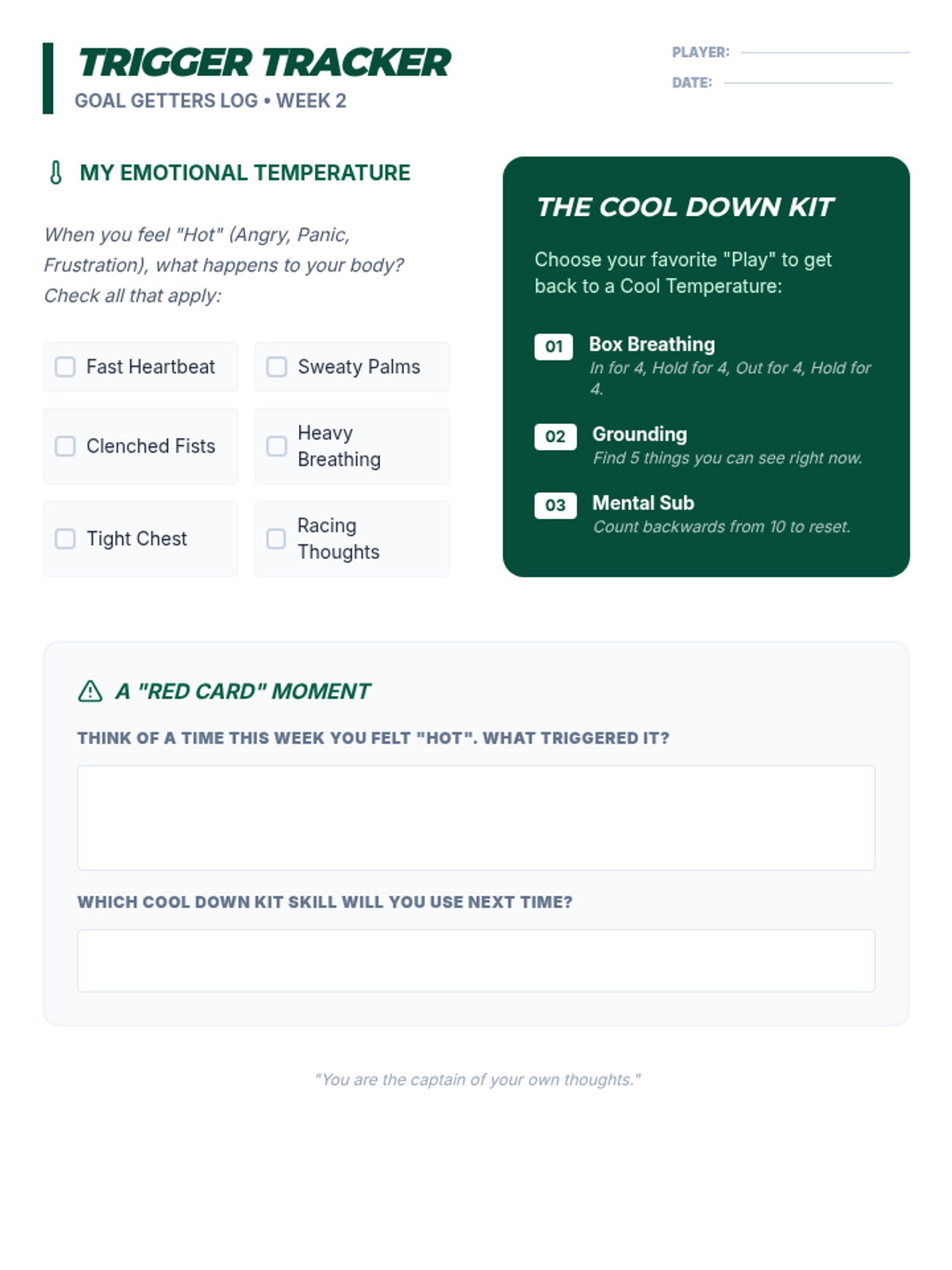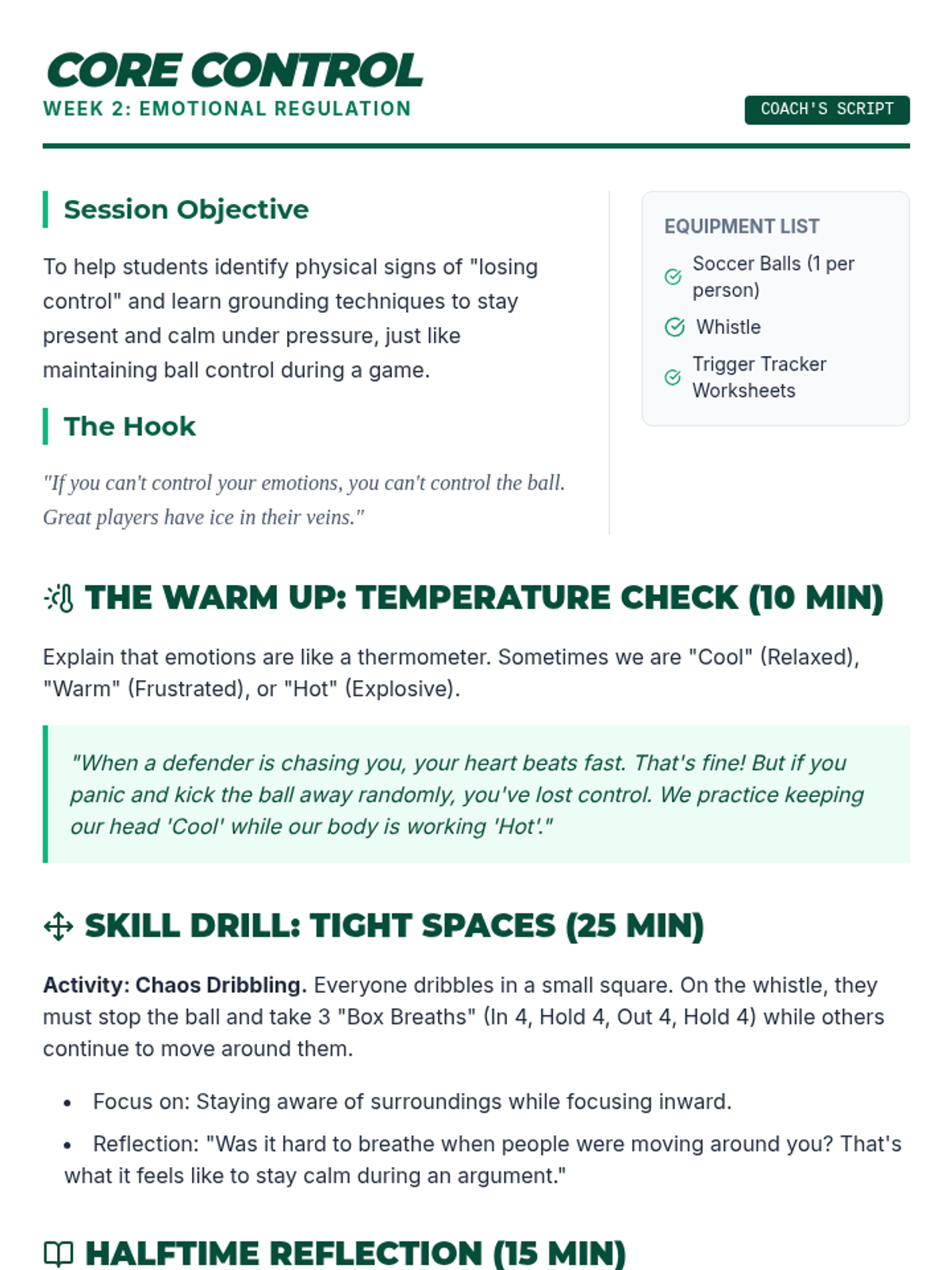 Focus on internal emotional regulation by comparing ball control skills to managing intense emotions.