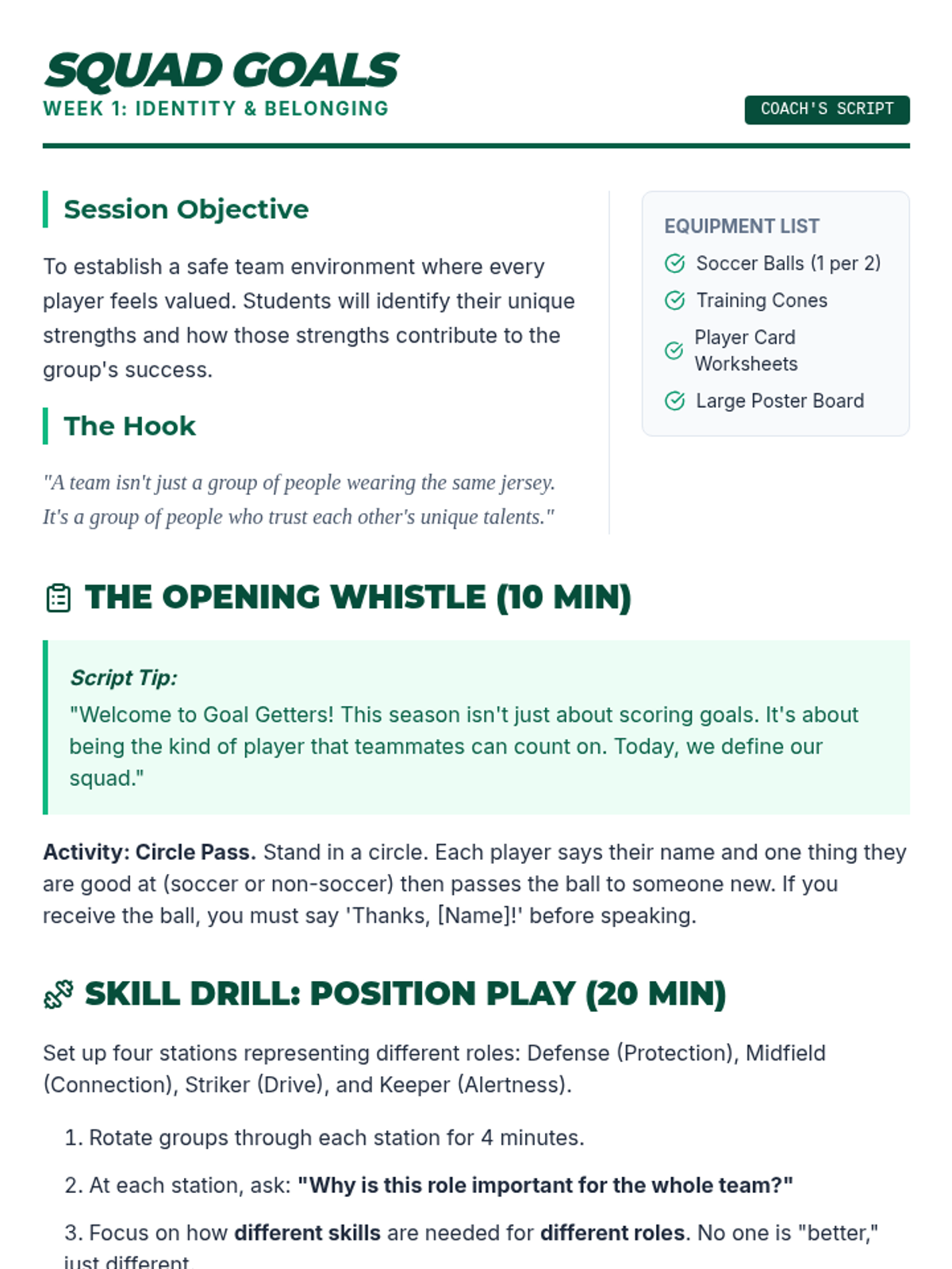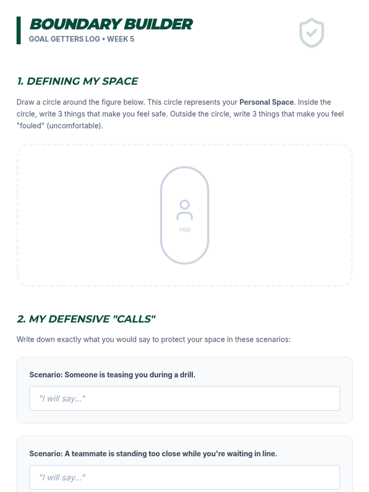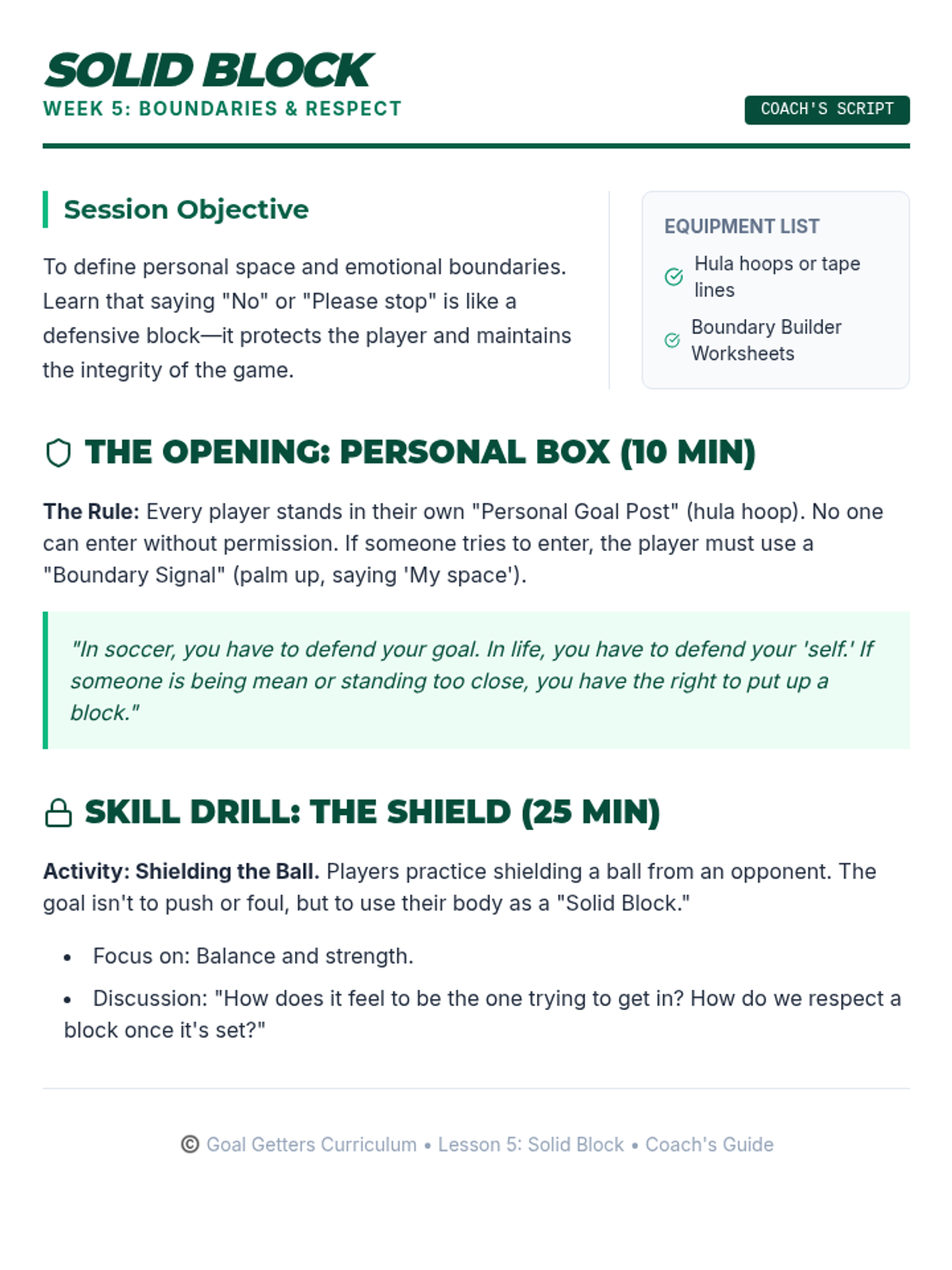 Practice setting and respecting personal boundaries through defensive soccer drills and social scenarios.