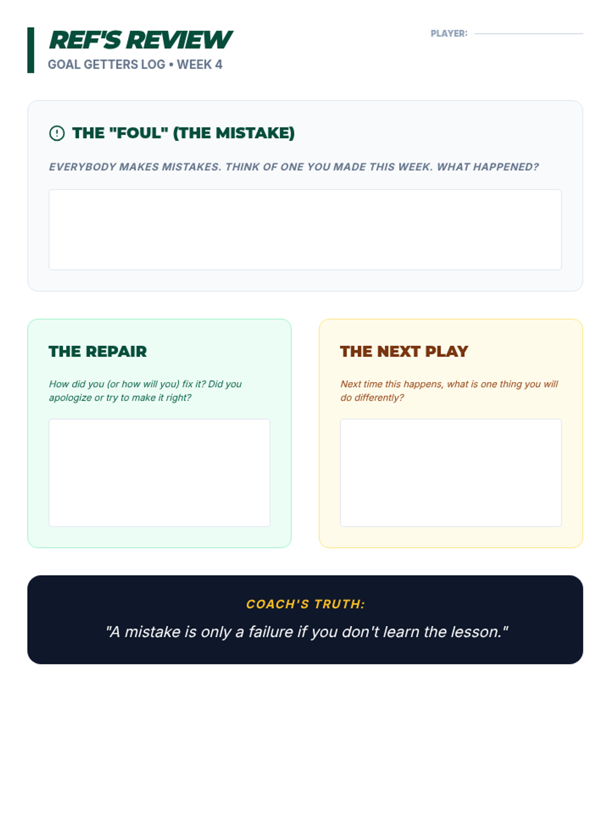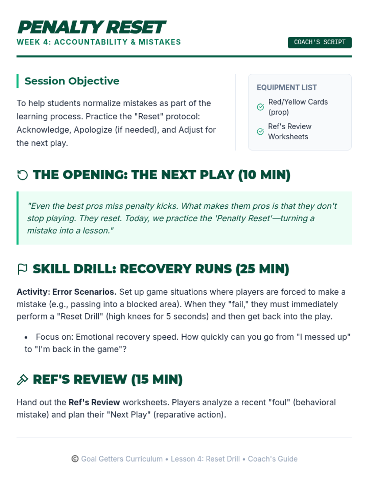Teach accountability and the importance of self-correction after mistakes using the 'penalty reset' framework.