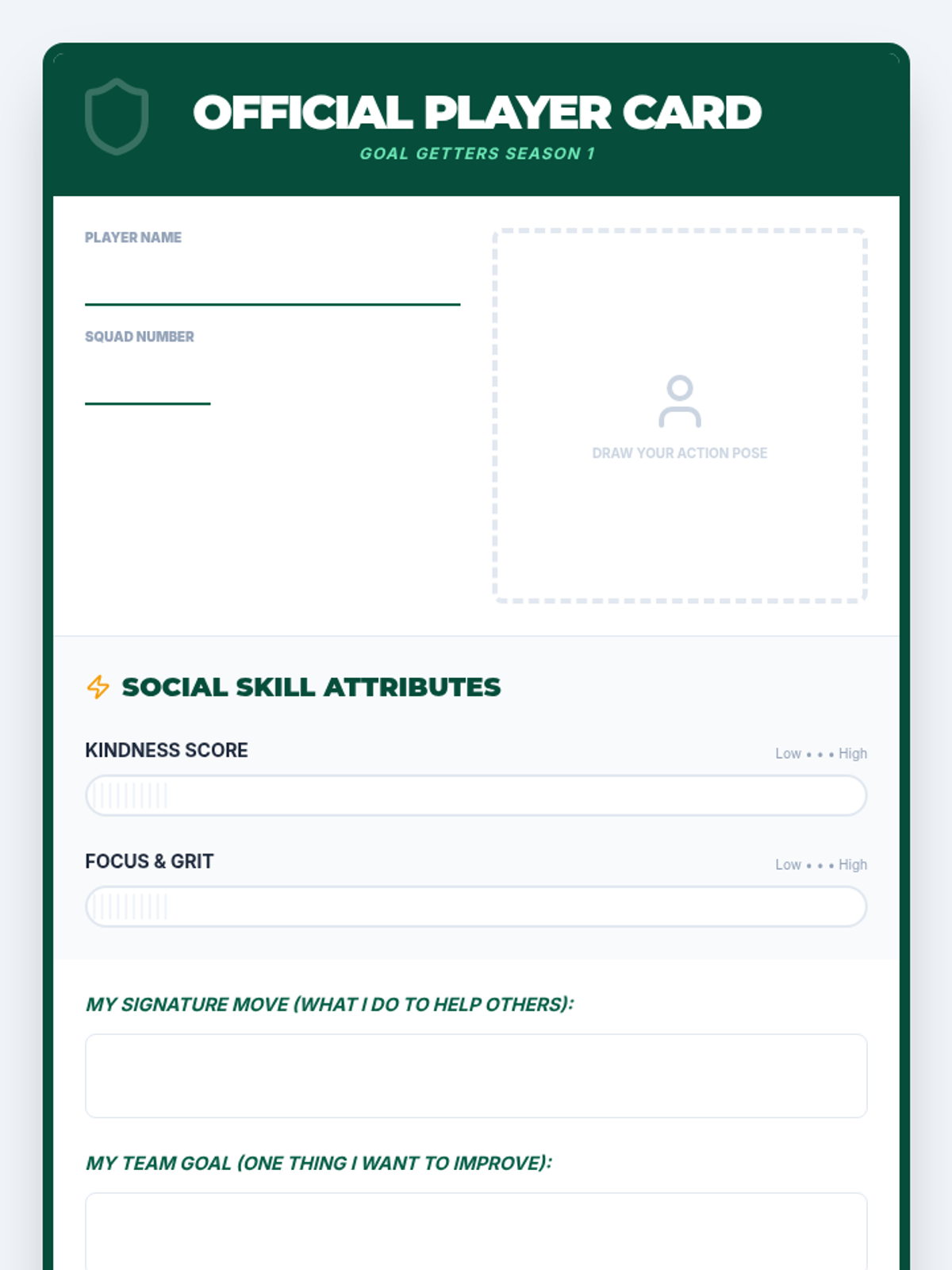 Establish a sense of belonging and individual identity within the team through the creation of personal player profiles and team norms.
