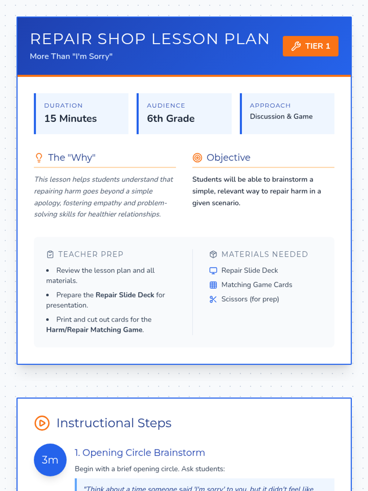 This 15-minute lesson helps 6th-grade students understand that repairing harm goes beyond a simple apology by brainstorming practical ways to restore relationships.