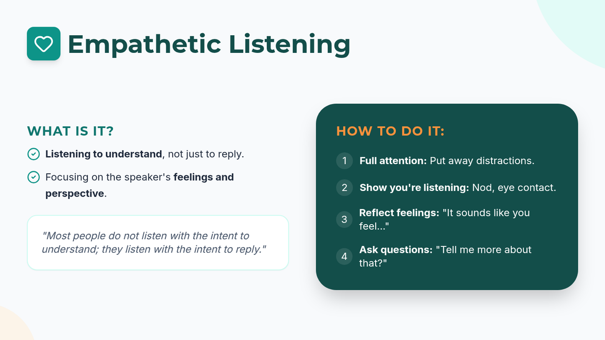 Developing advanced listening skills, including paraphrasing and validating others' perspectives in English.