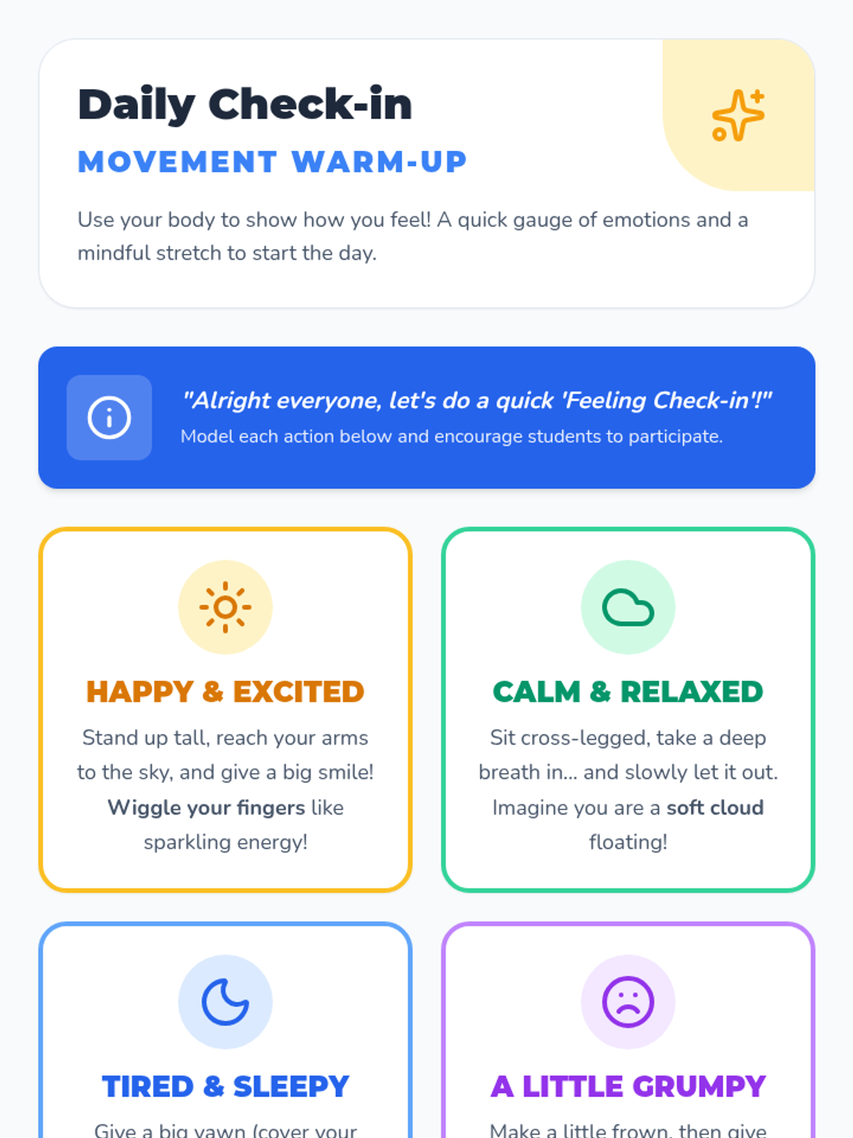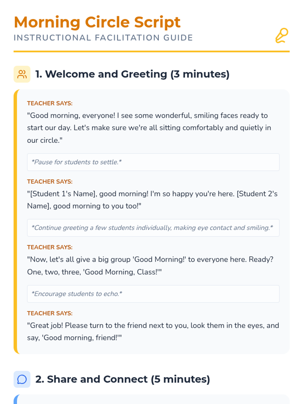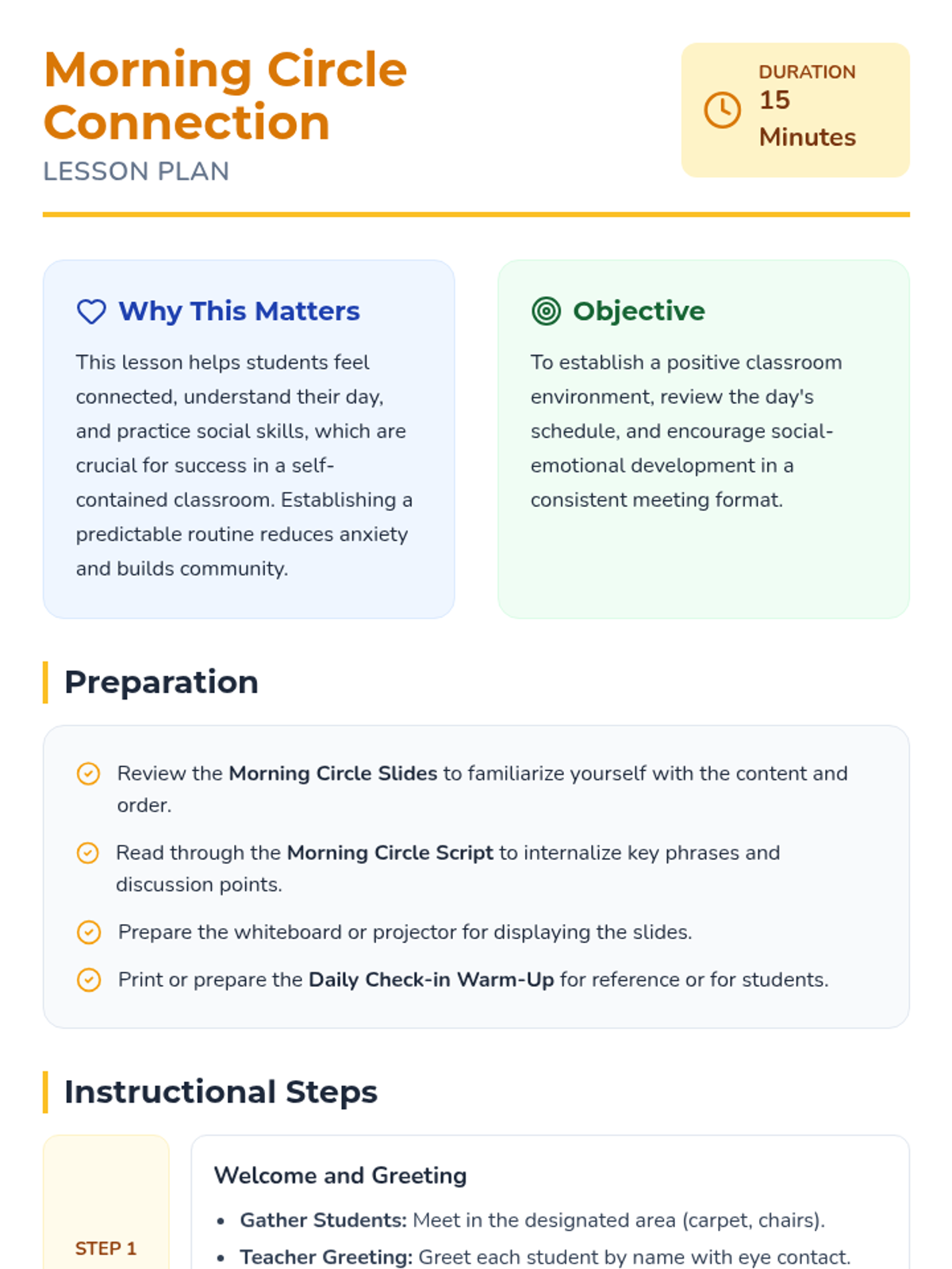 A 15-minute routine to foster community, review the daily schedule, and practice social-emotional skills in a self-contained elementary classroom.