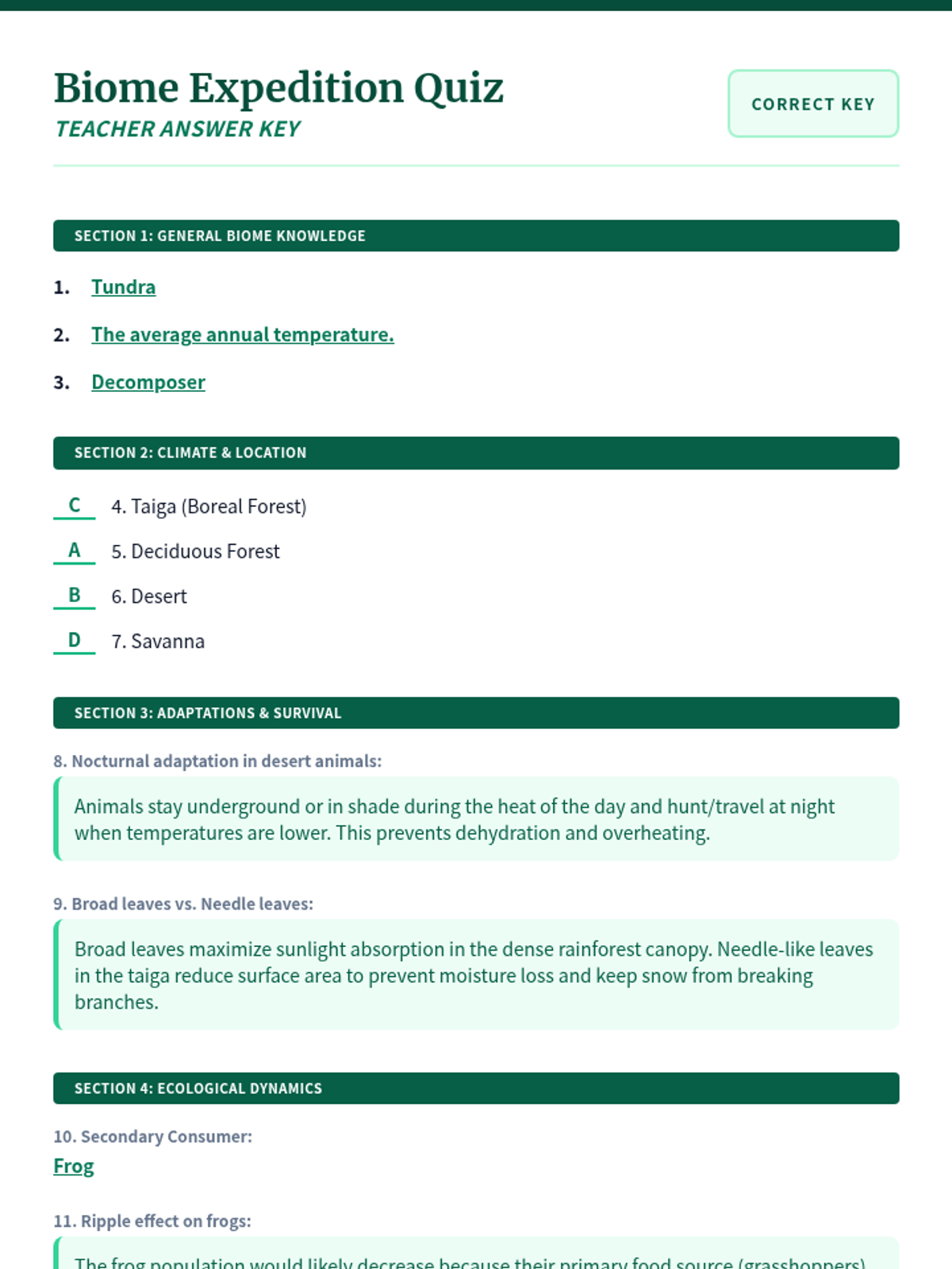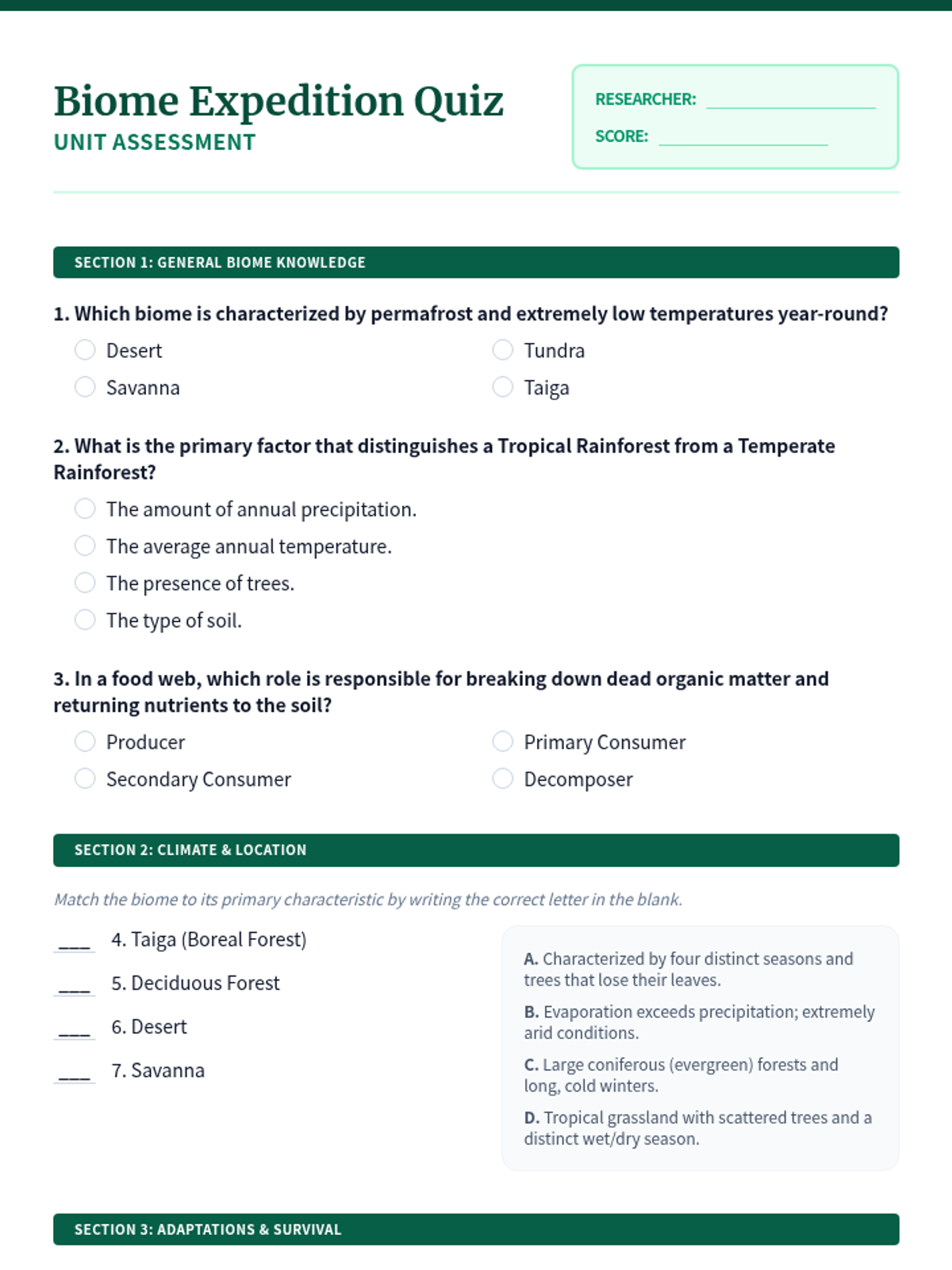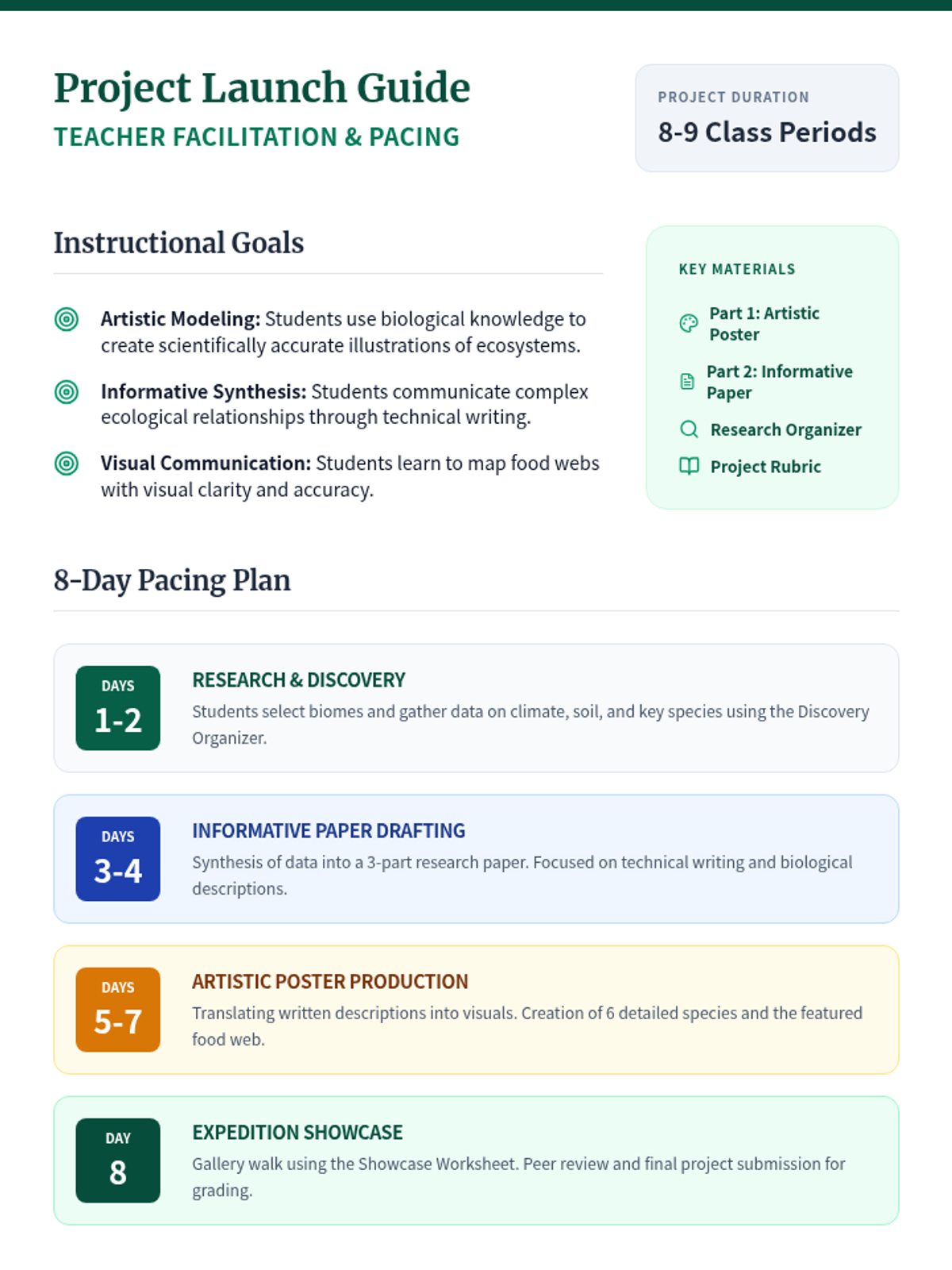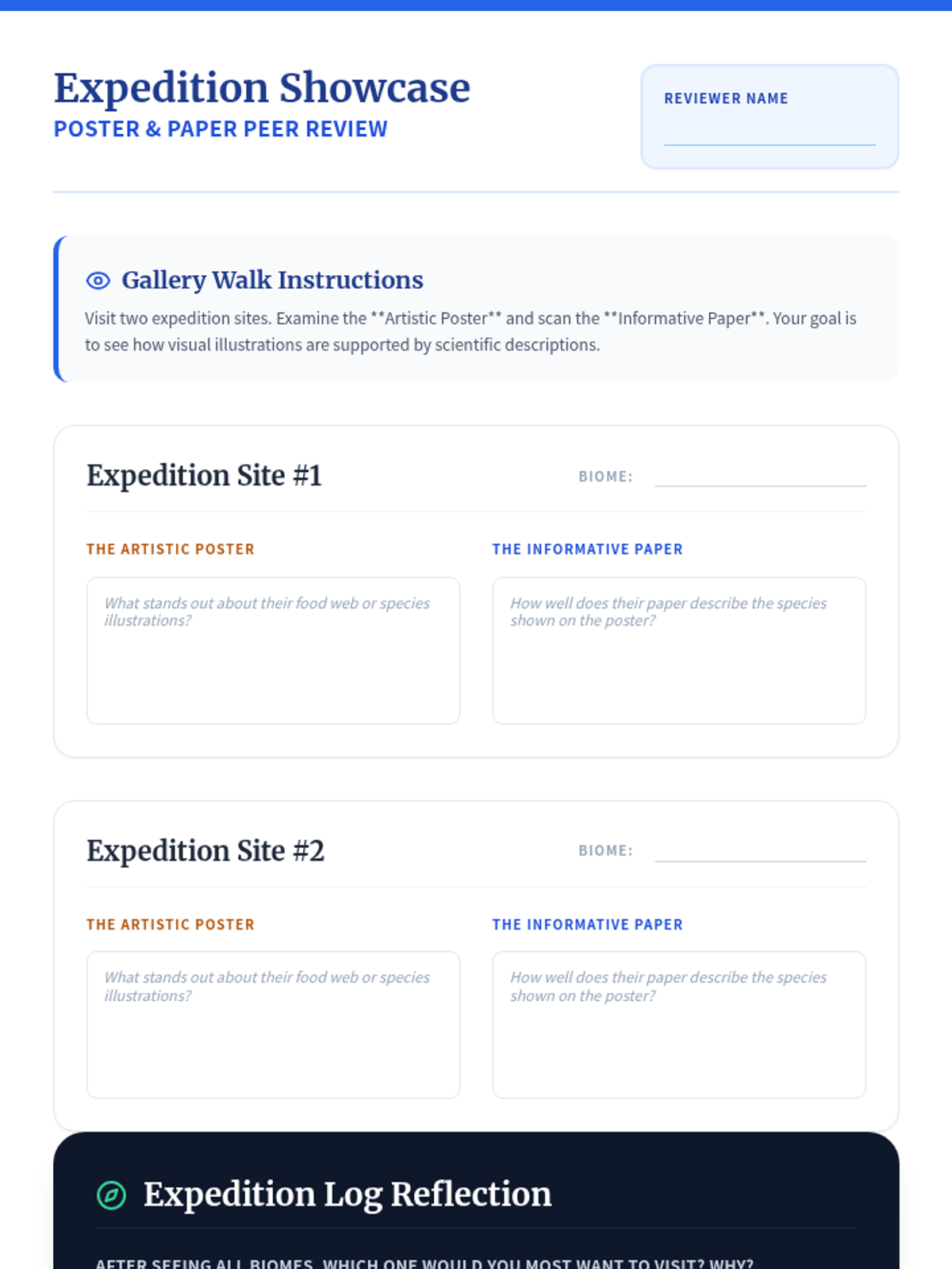 A creative project-based lesson where students research and design an educational poster about a specific global biome, focusing on adaptations, food webs, and conservation. Now expanded to include an informative research paper component.