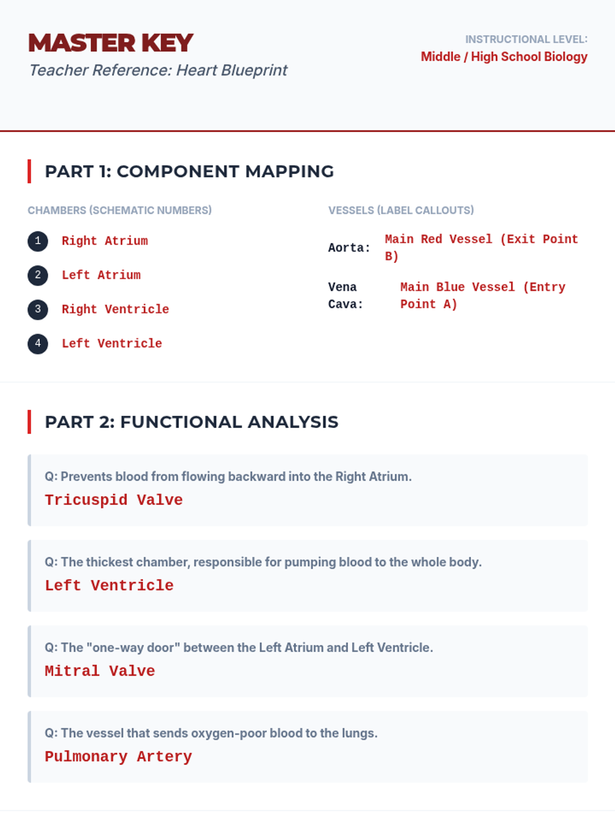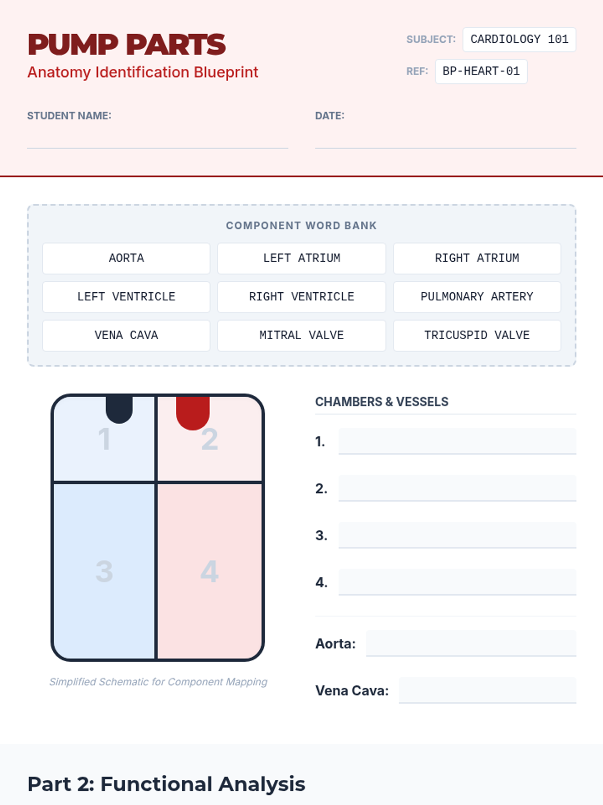 An exploration of the human heart's anatomy, focusing on identifying key structures and understanding the path of blood flow through chambers and valves.